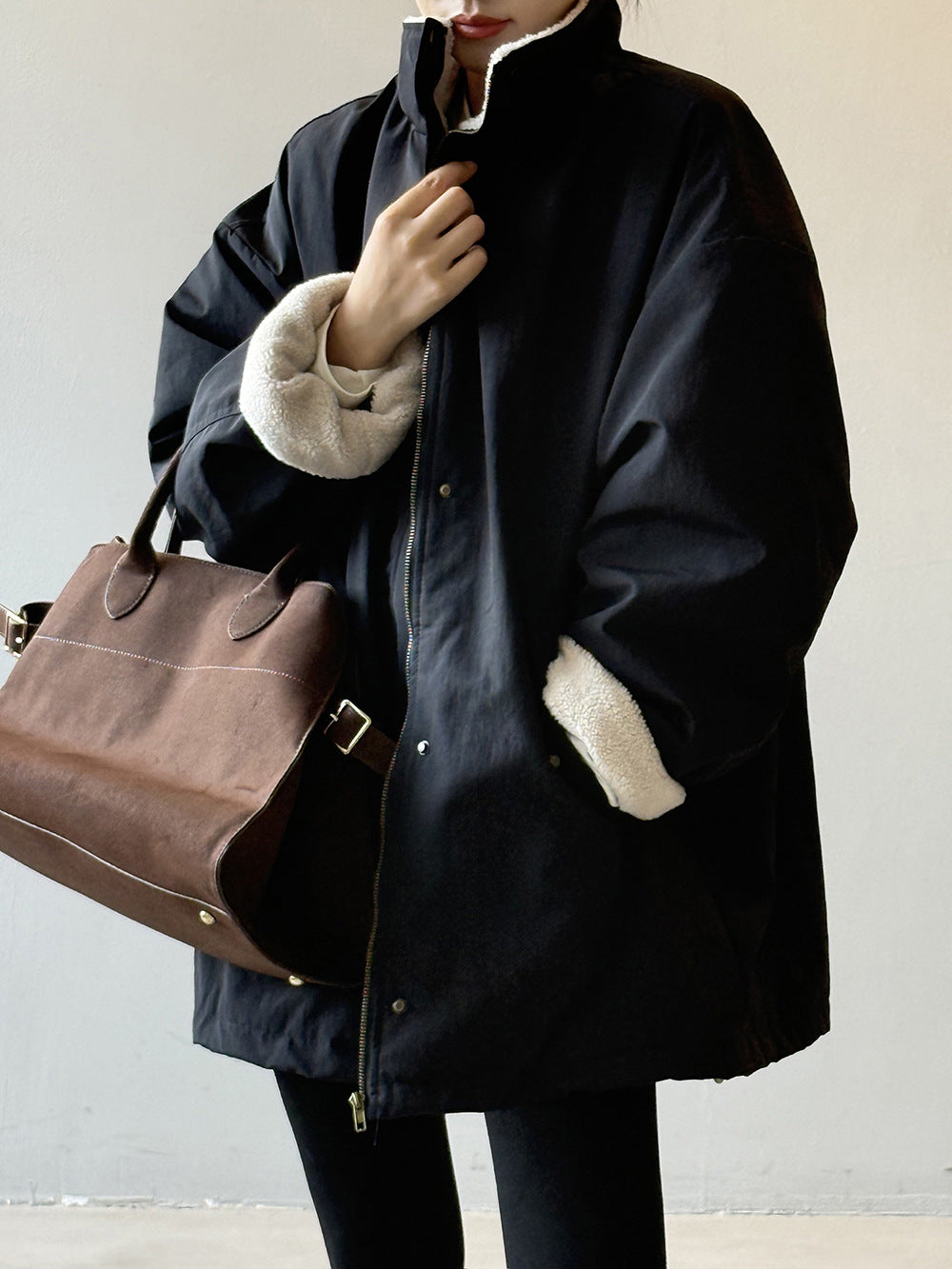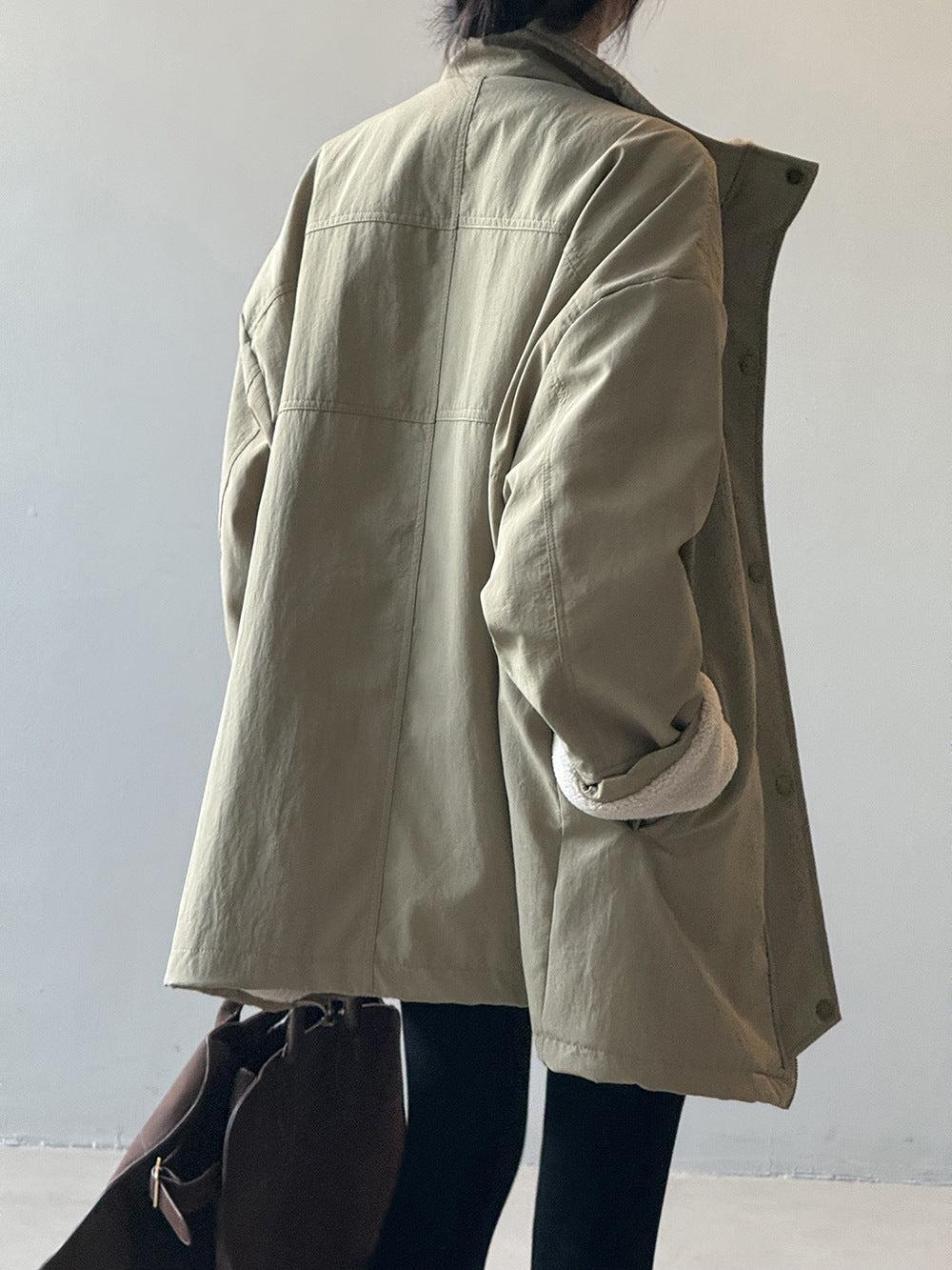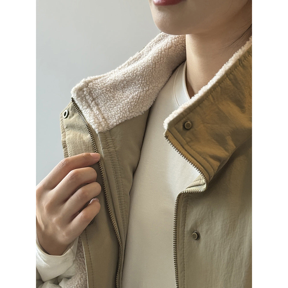 【Y82650】實拍立領帥氣內裡羊羔毛工裝外套251016