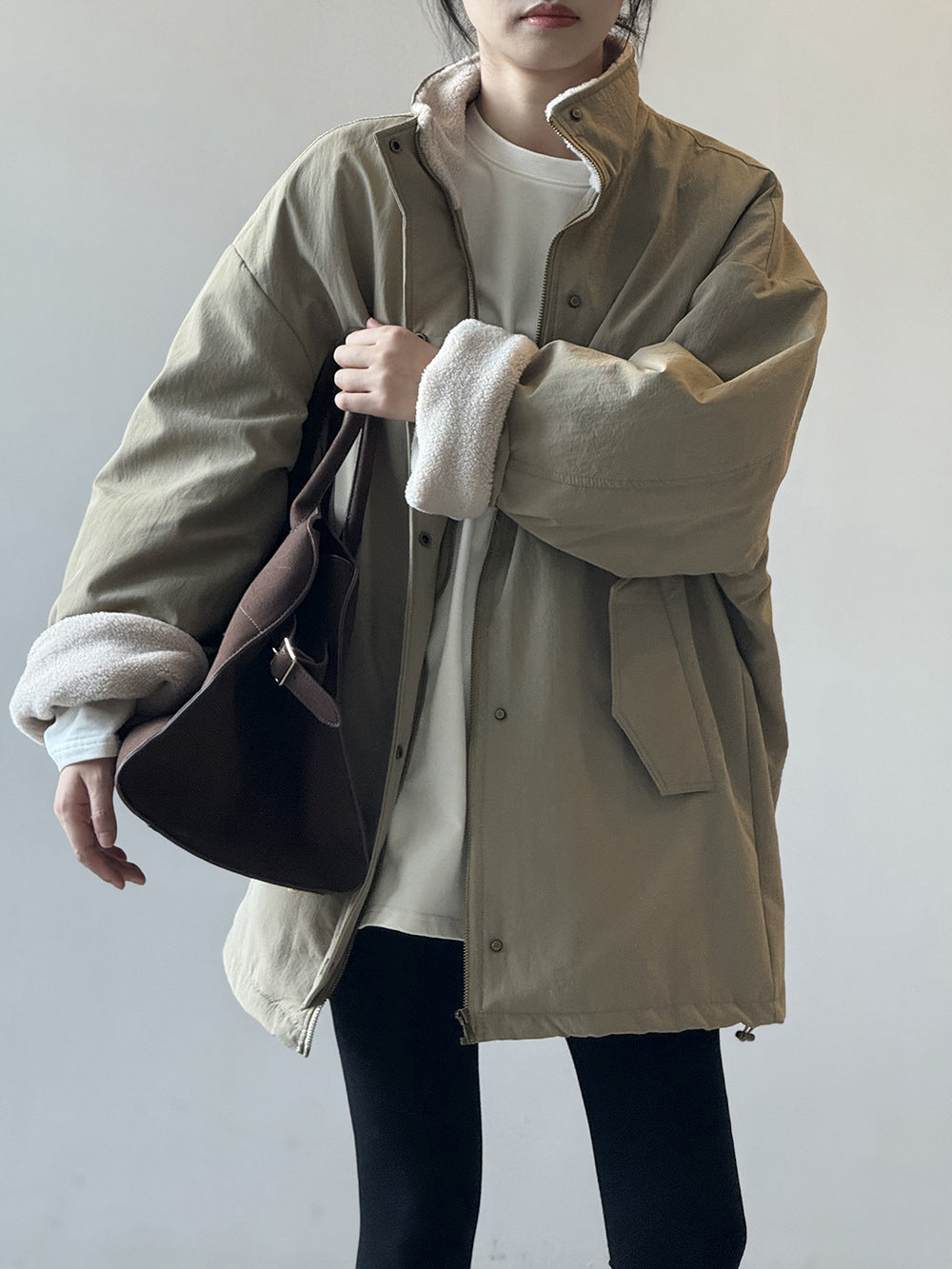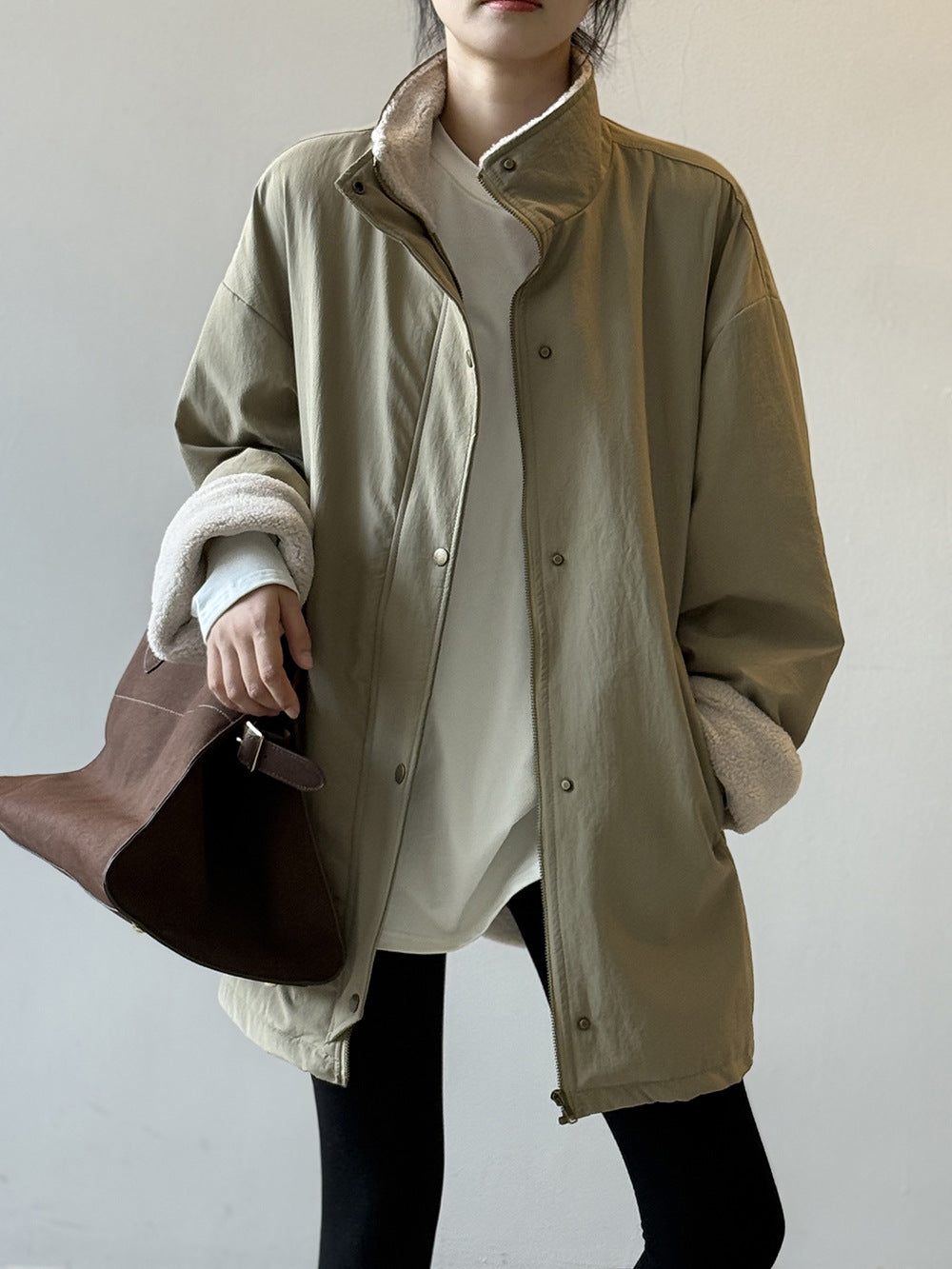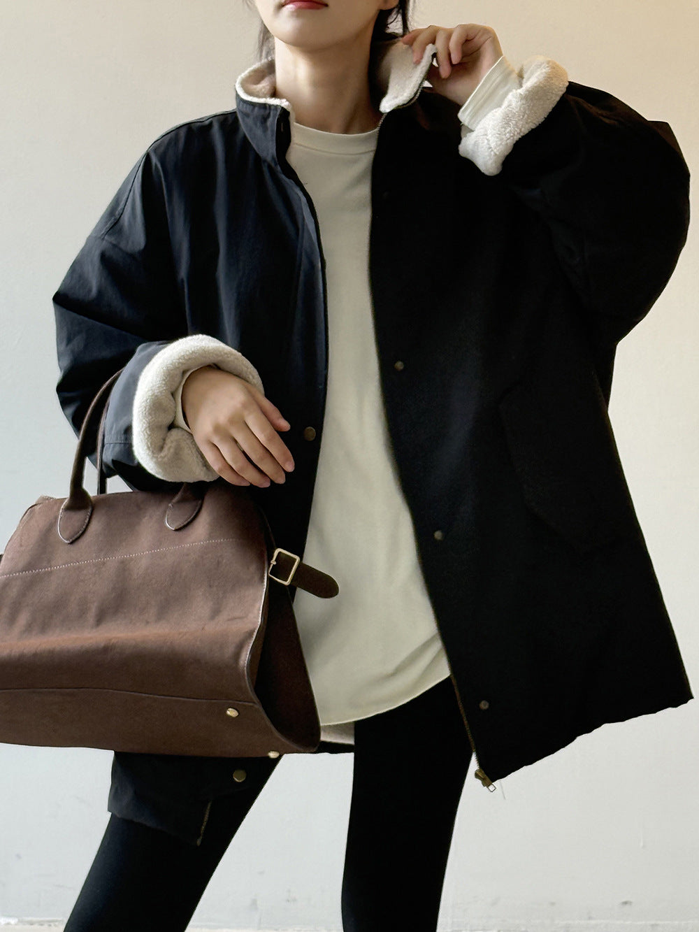 【Y82650】實拍立領帥氣內裡羊羔毛工裝外套251016