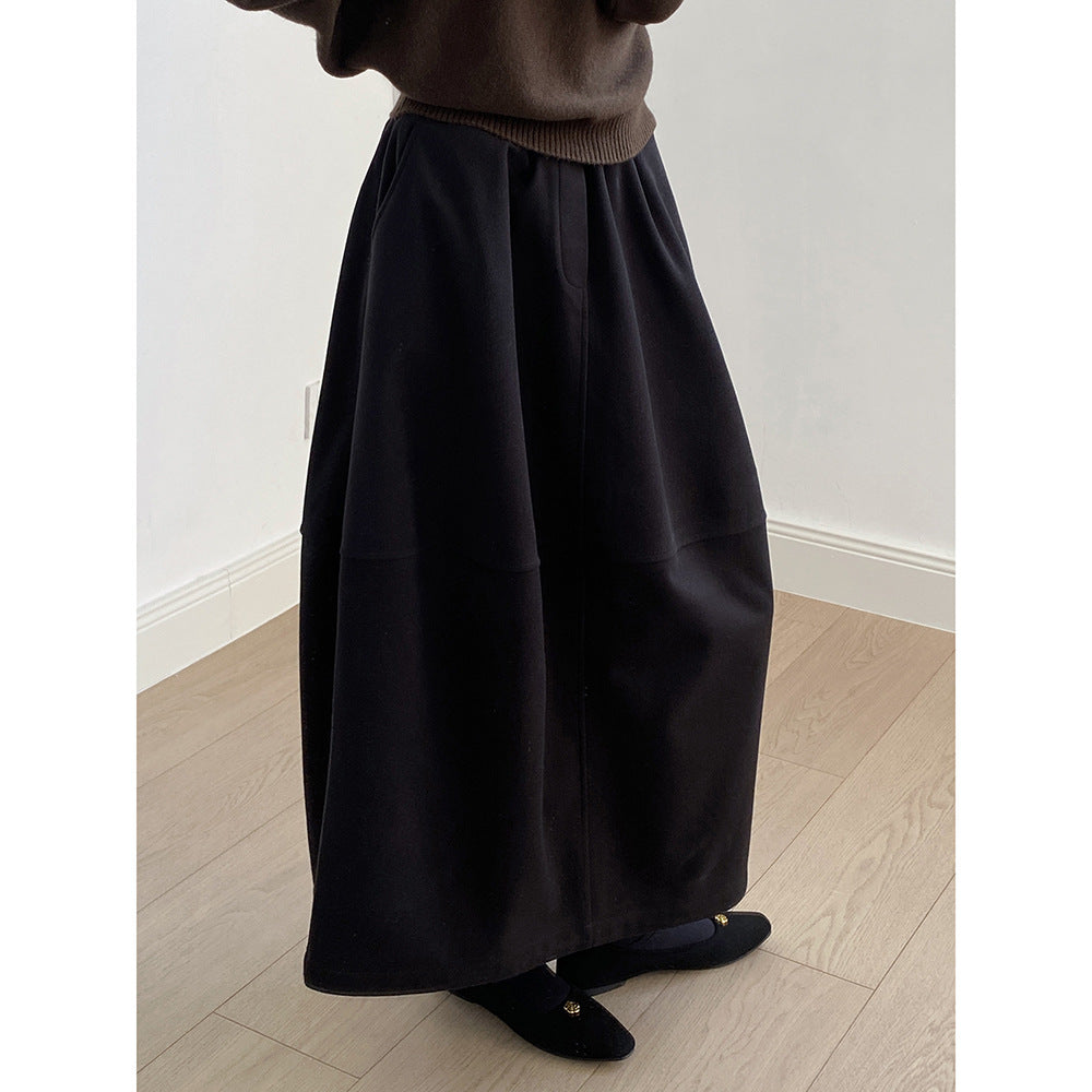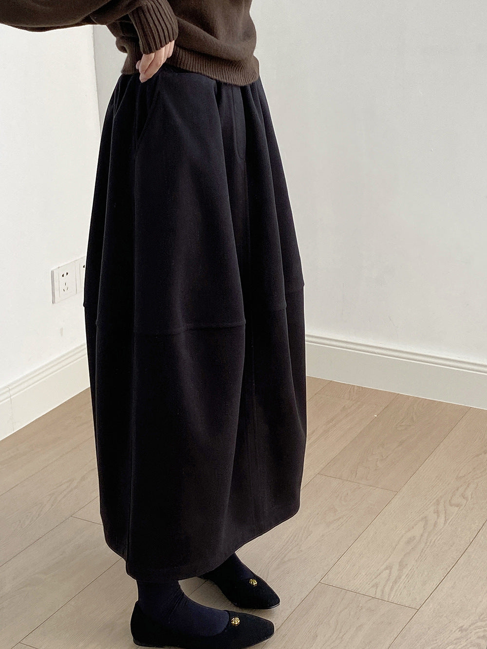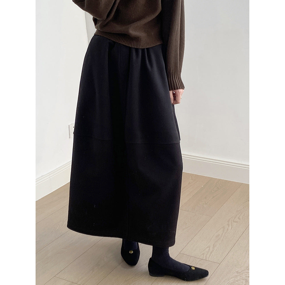 【Y82671】 實拍秋冬氣質花苞毛呢A字裙251023