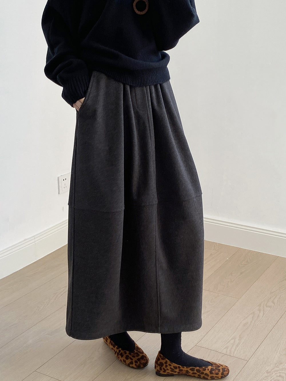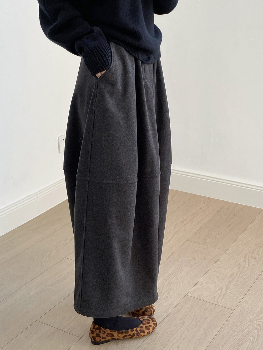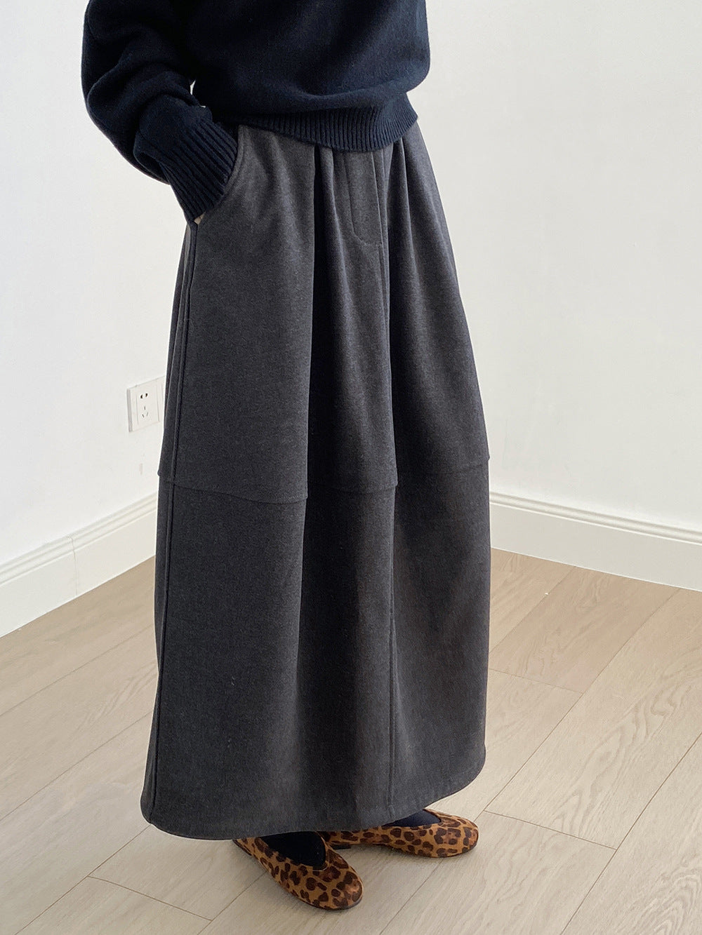 【Y82671】 實拍秋冬氣質花苞毛呢A字裙251023