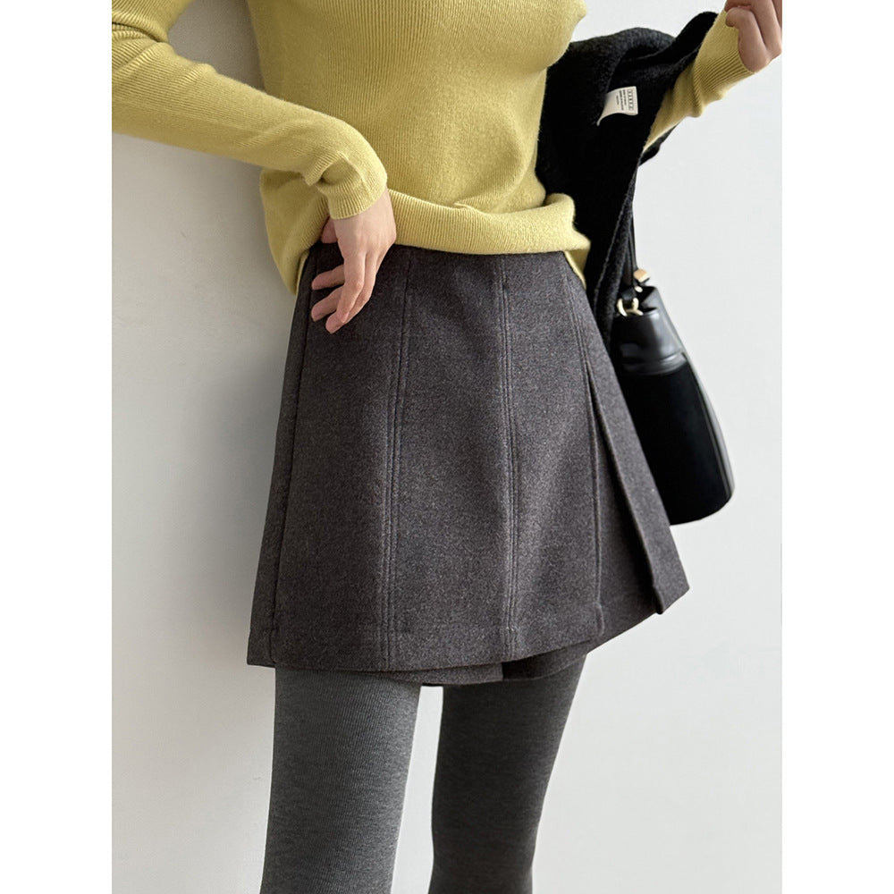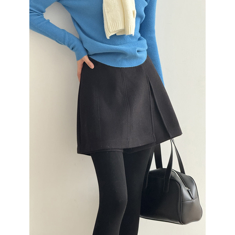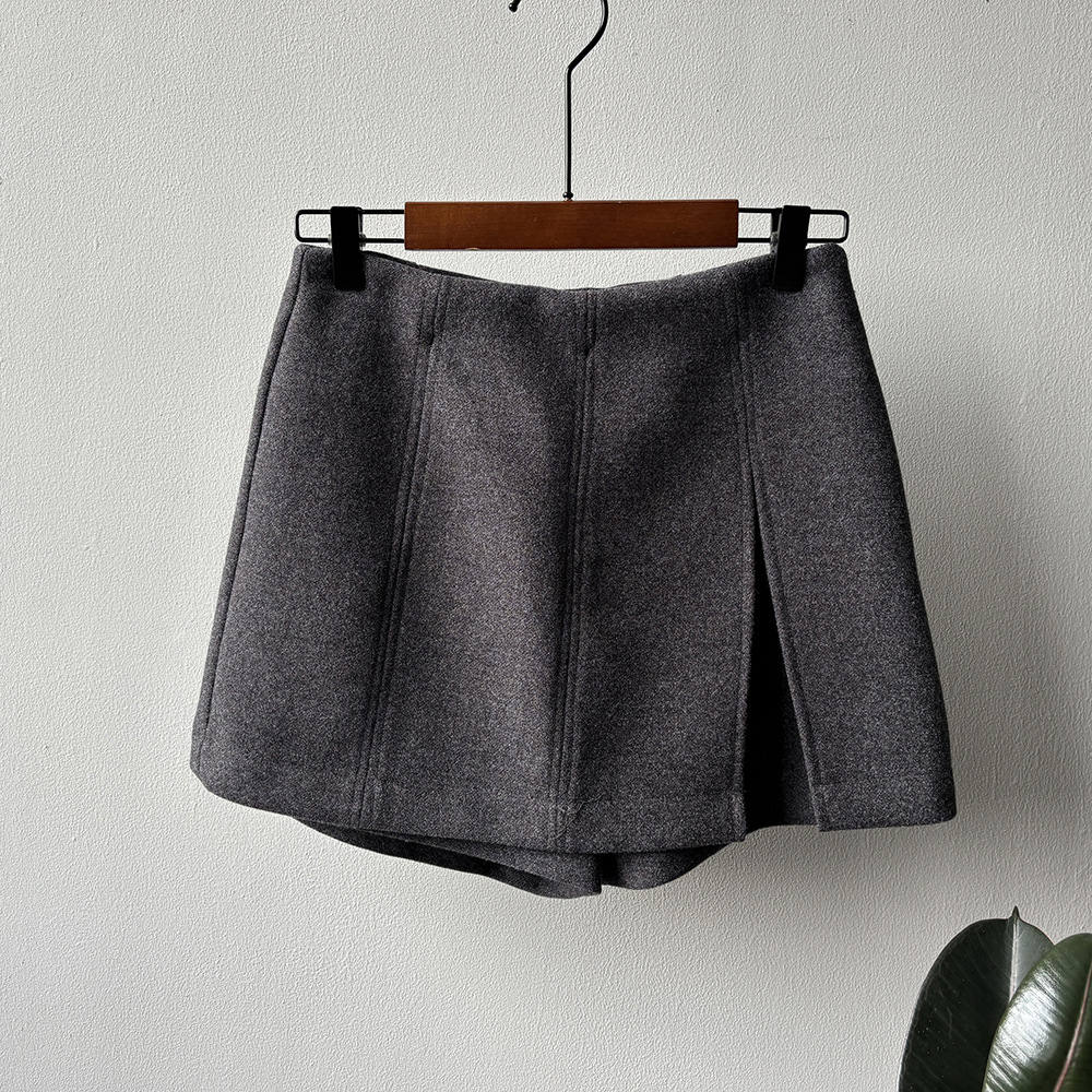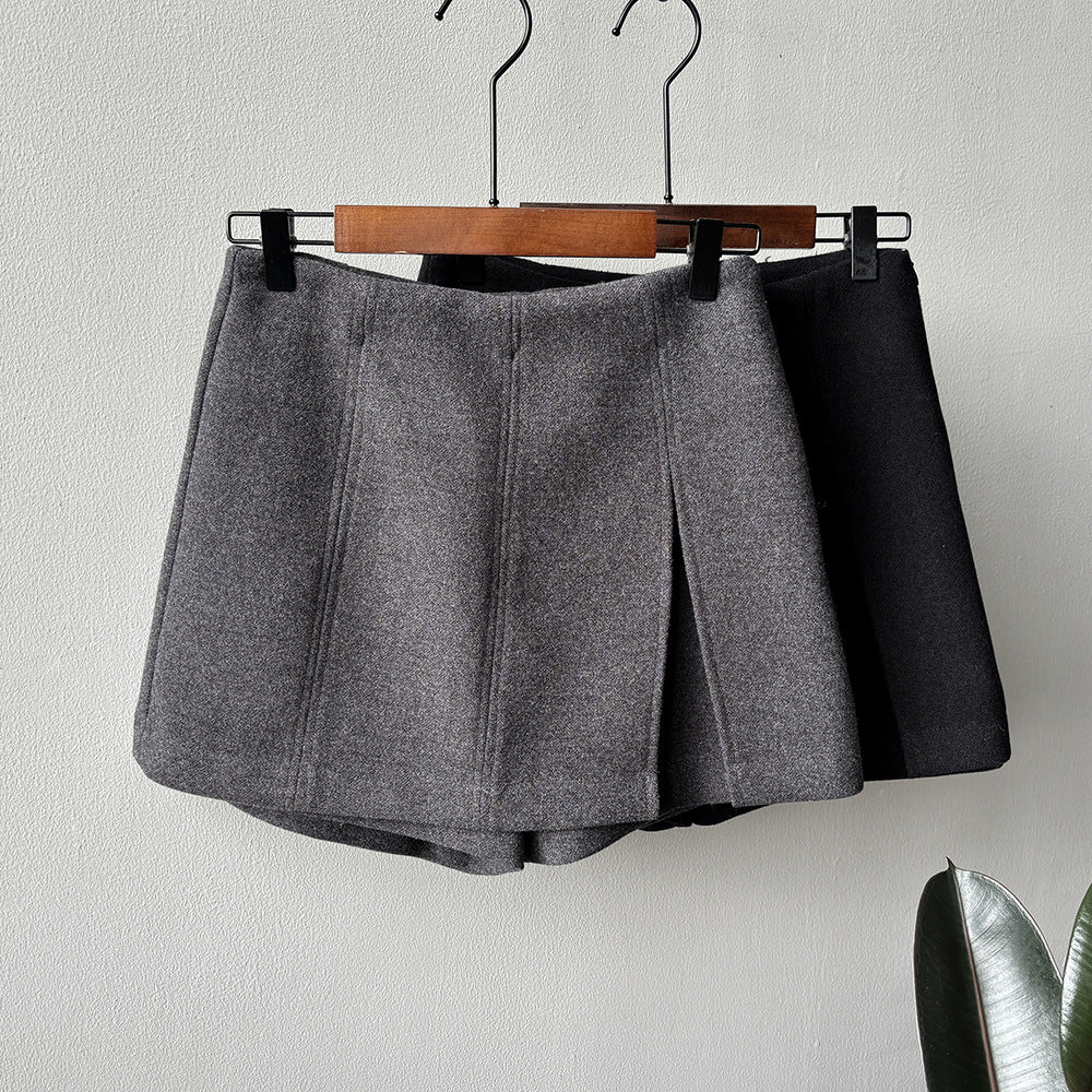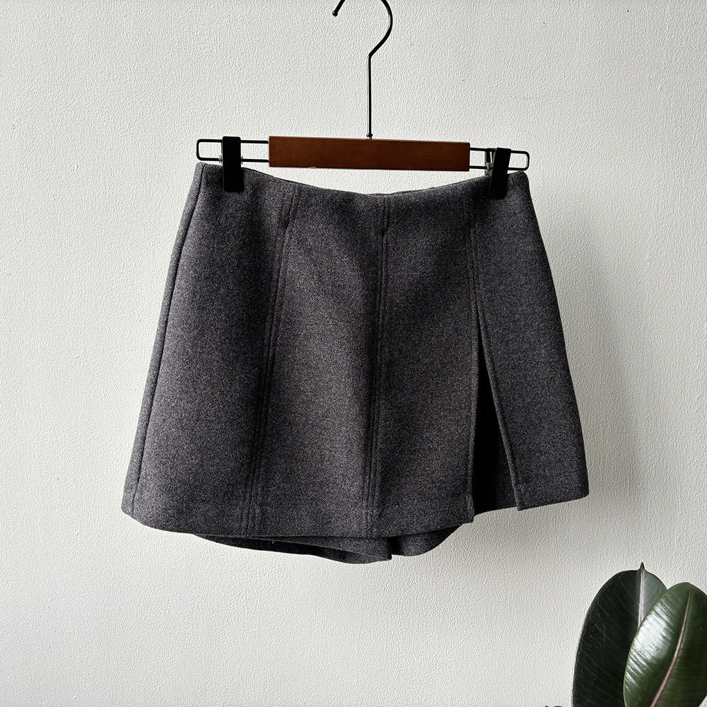 【Y82682】實拍冬季厚款毛呢高腰開叉裙褲 251106