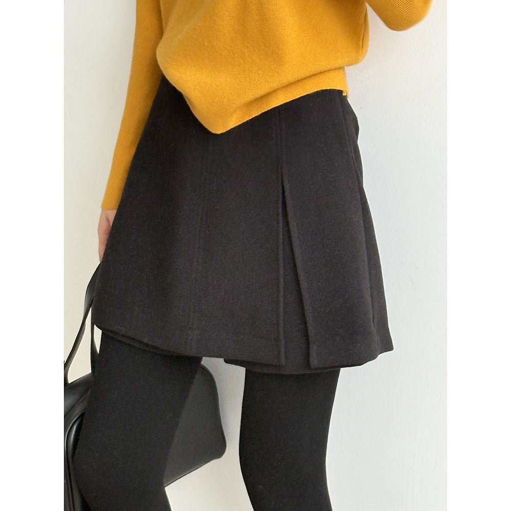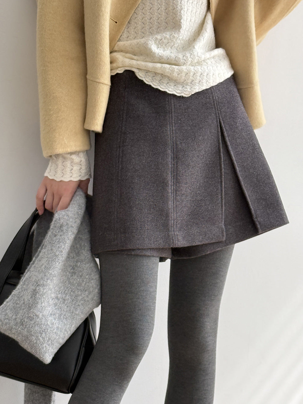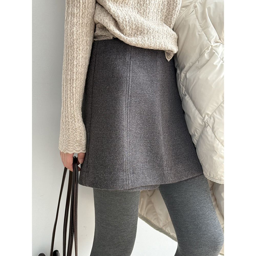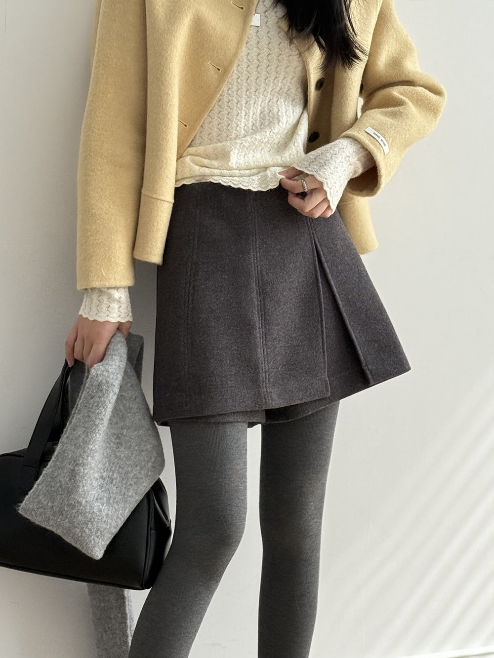 【Y82682】實拍冬季厚款毛呢高腰開叉裙褲 251106