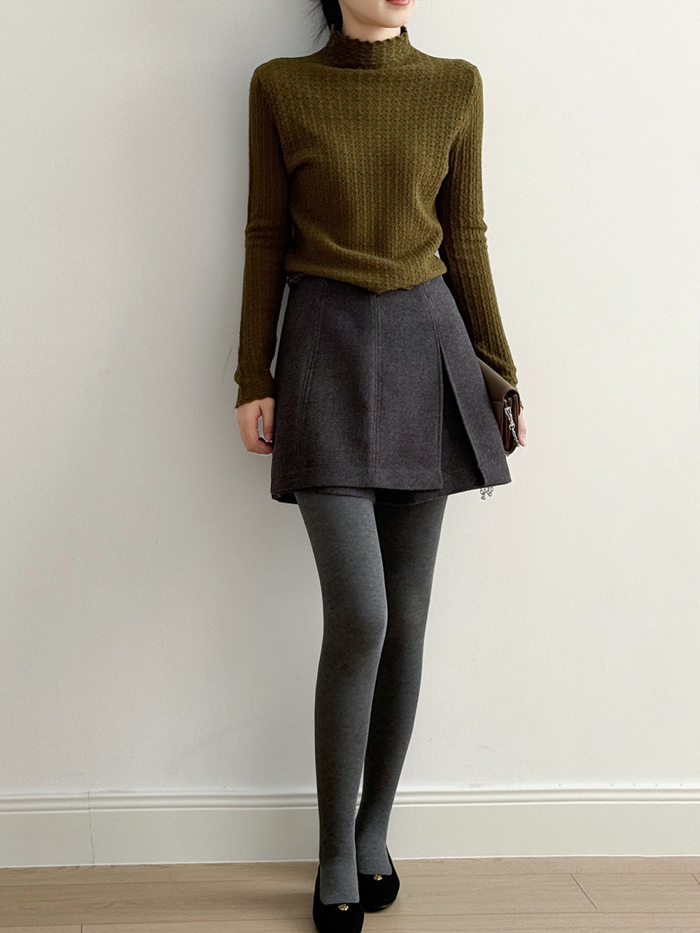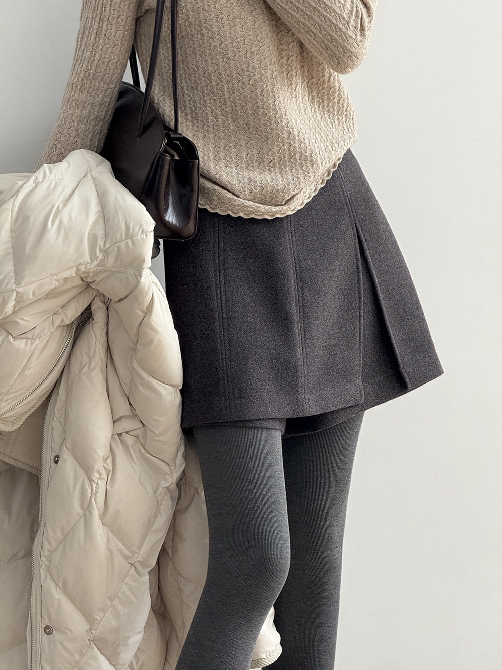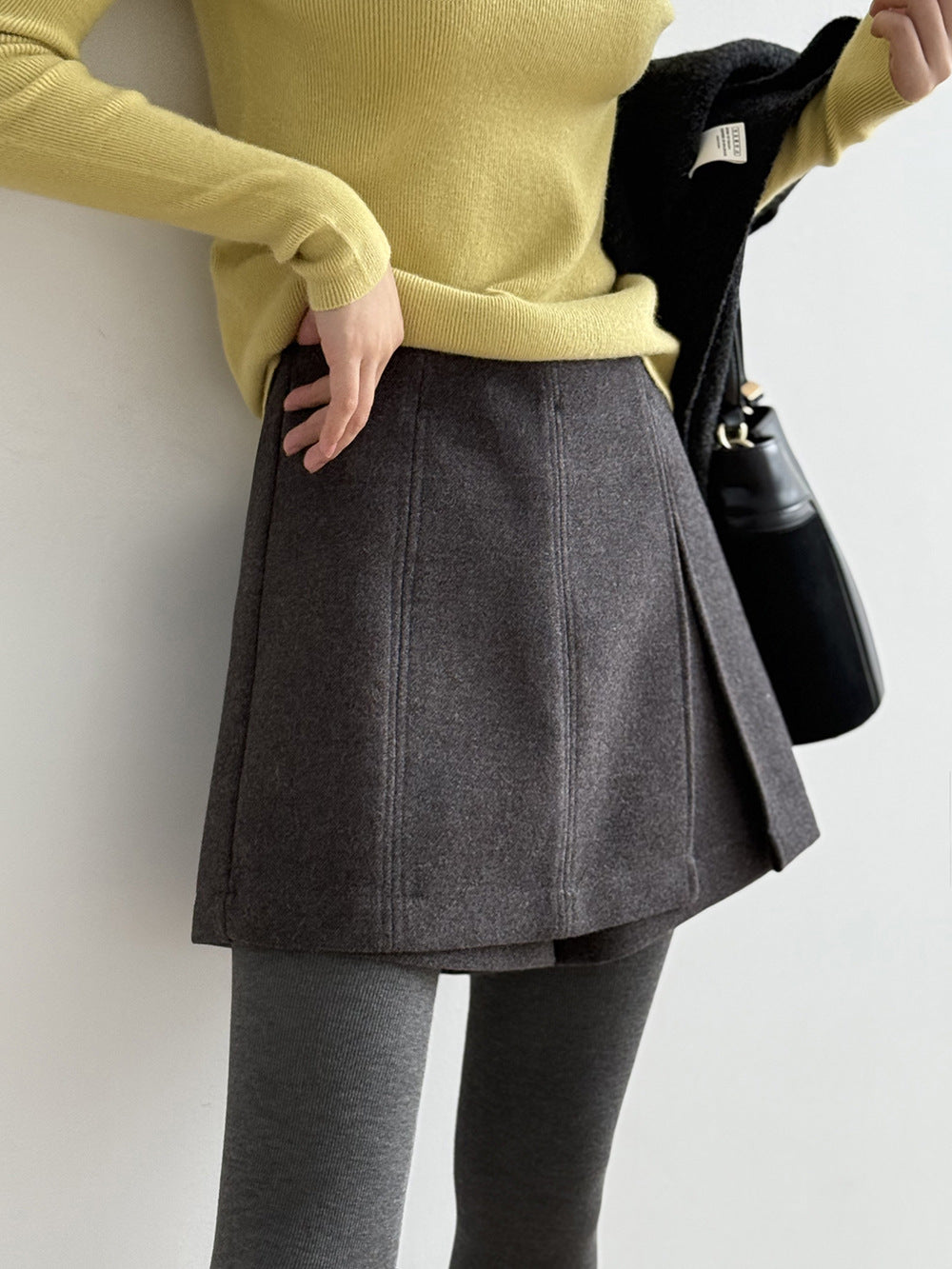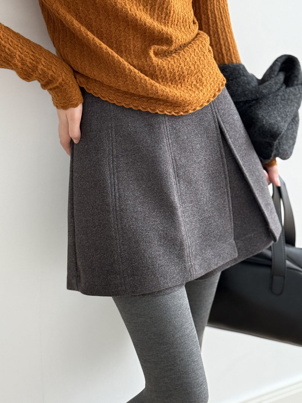 【Y82682】實拍冬季厚款毛呢高腰開叉裙褲 251106