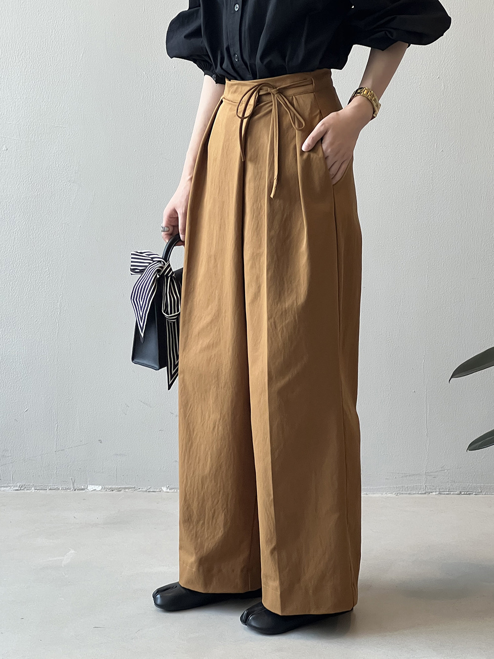 【Y9787】實拍簡約不對稱綁帶高腰直筒褲240911