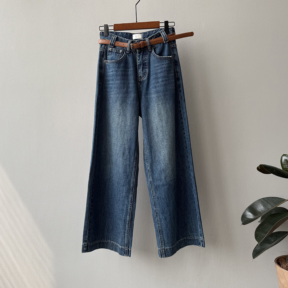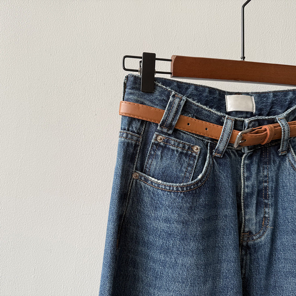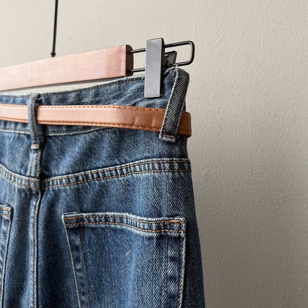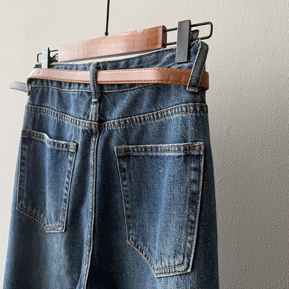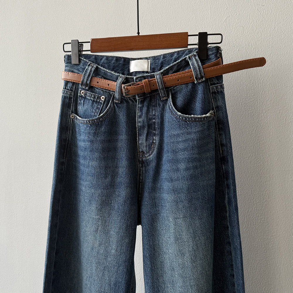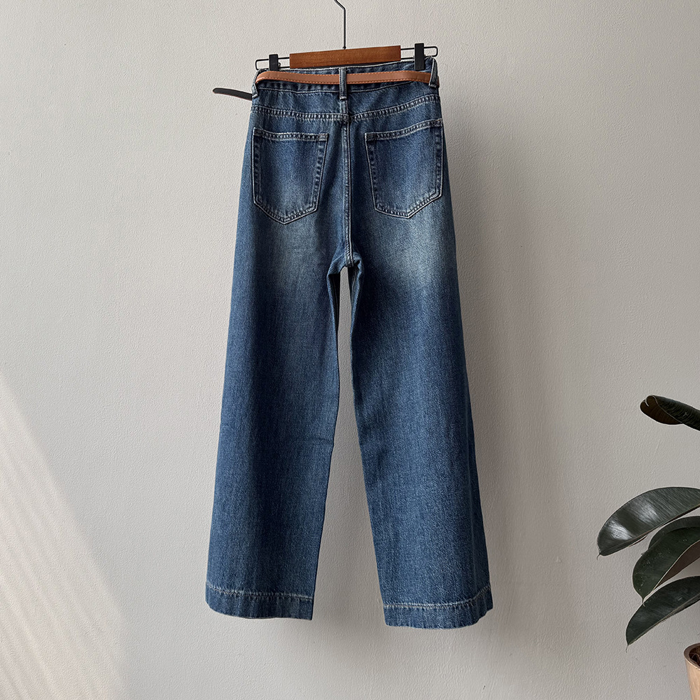 【Y98138】實拍S~XL復古高腰直筒牛仔褲+腰帶250911