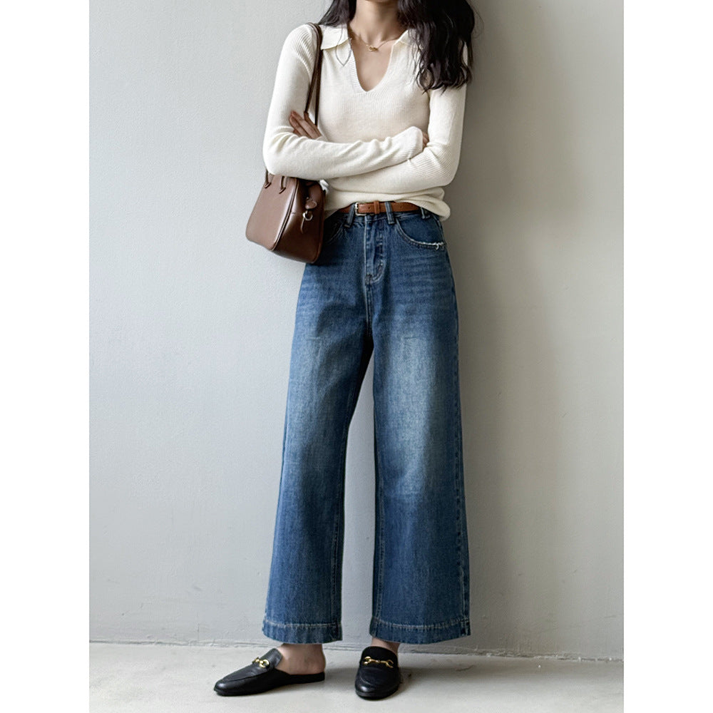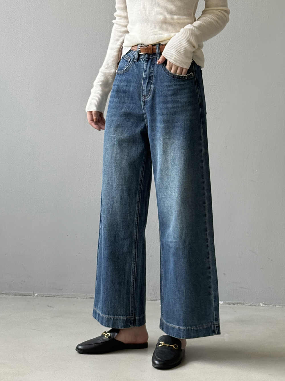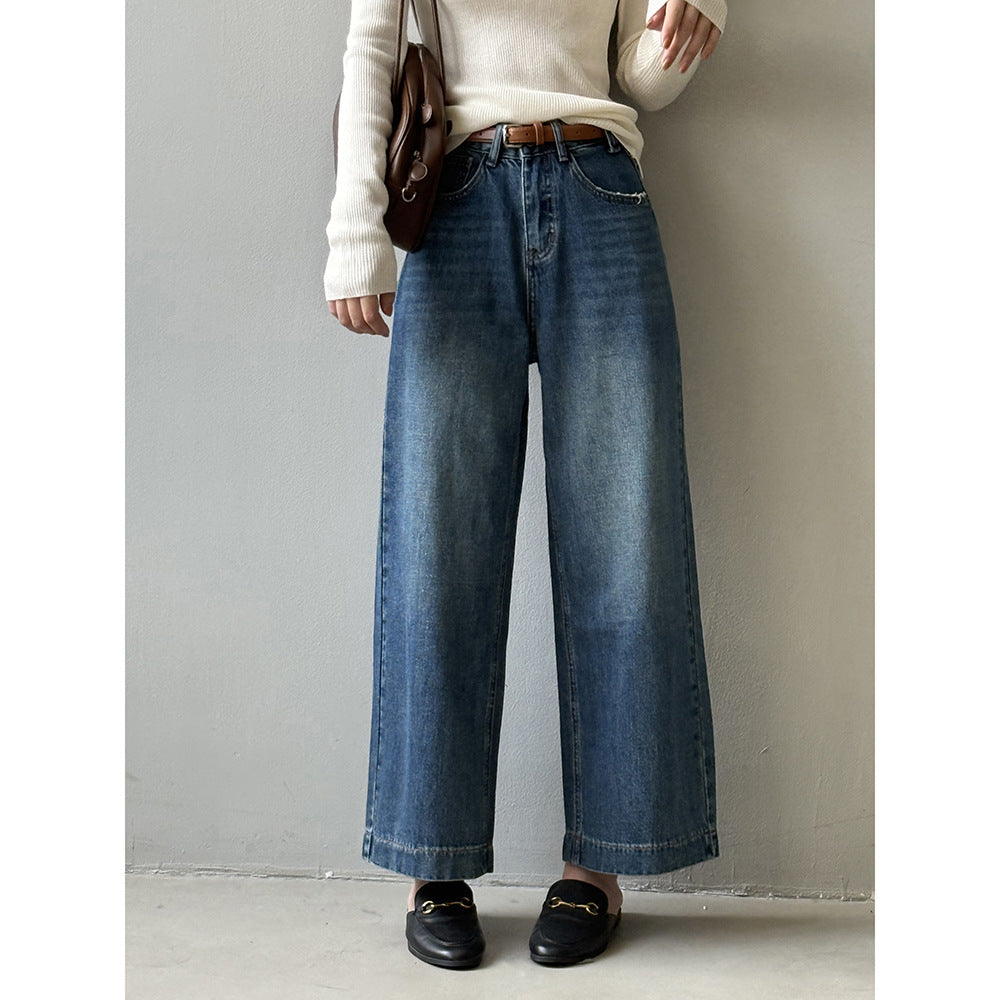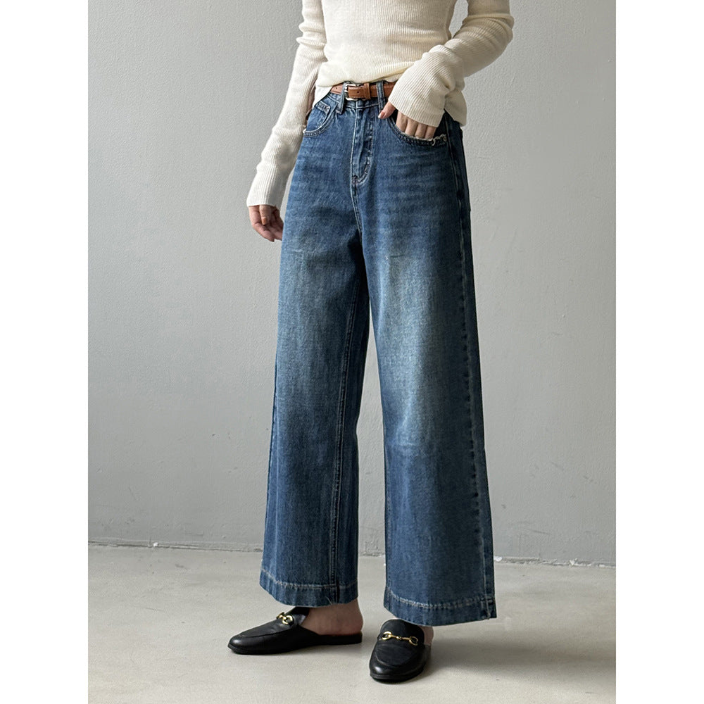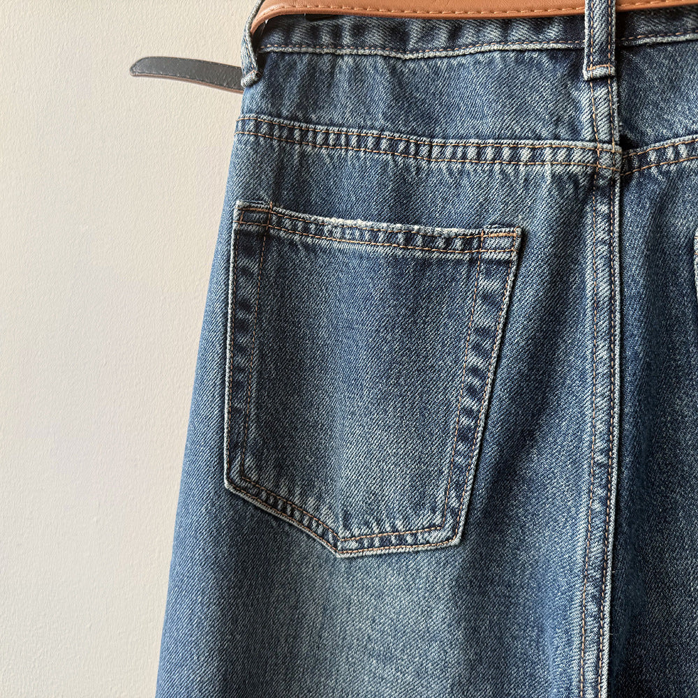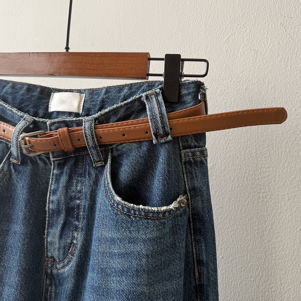 【Y98138】實拍S~XL復古高腰直筒牛仔褲+腰帶250911