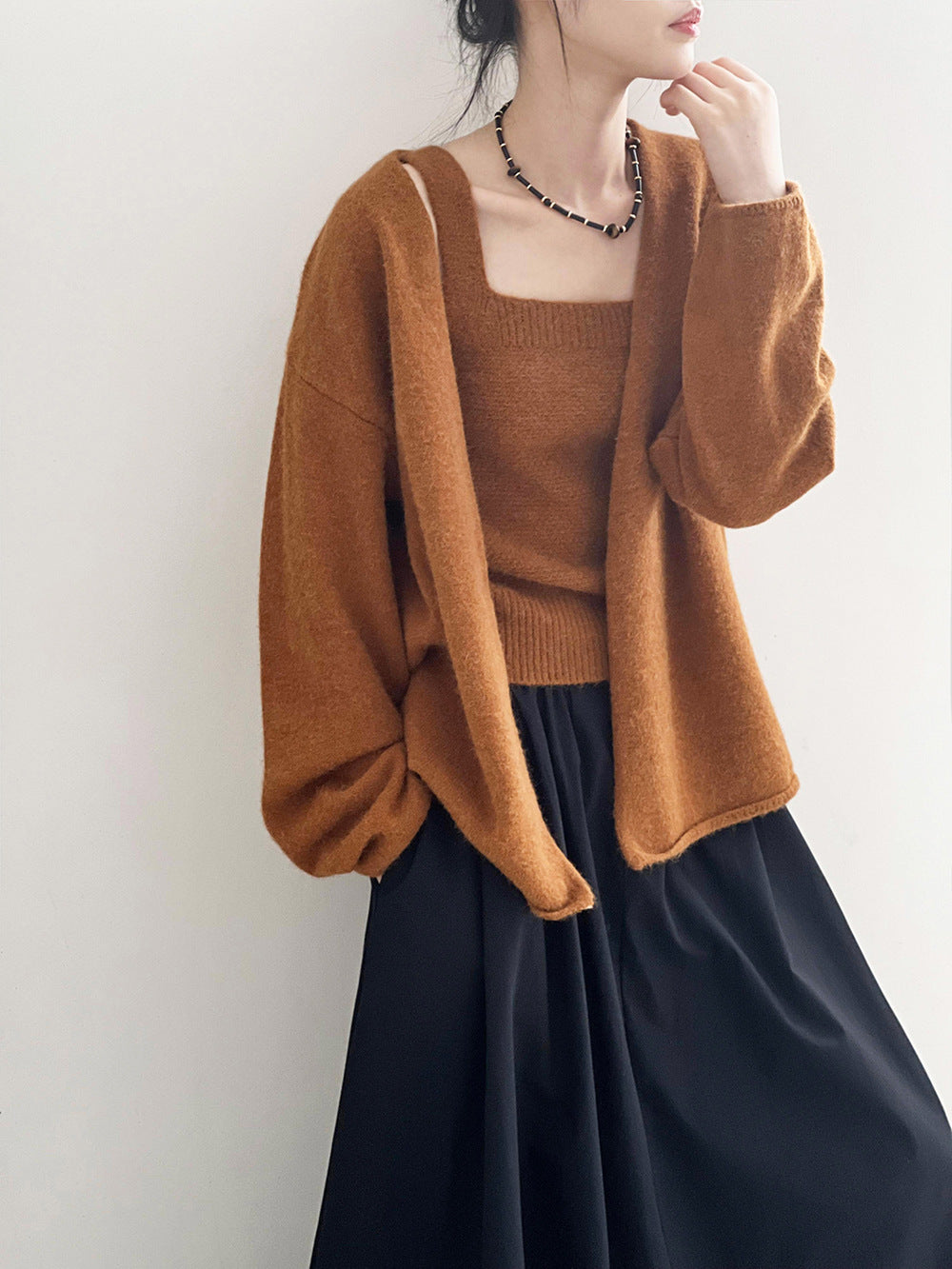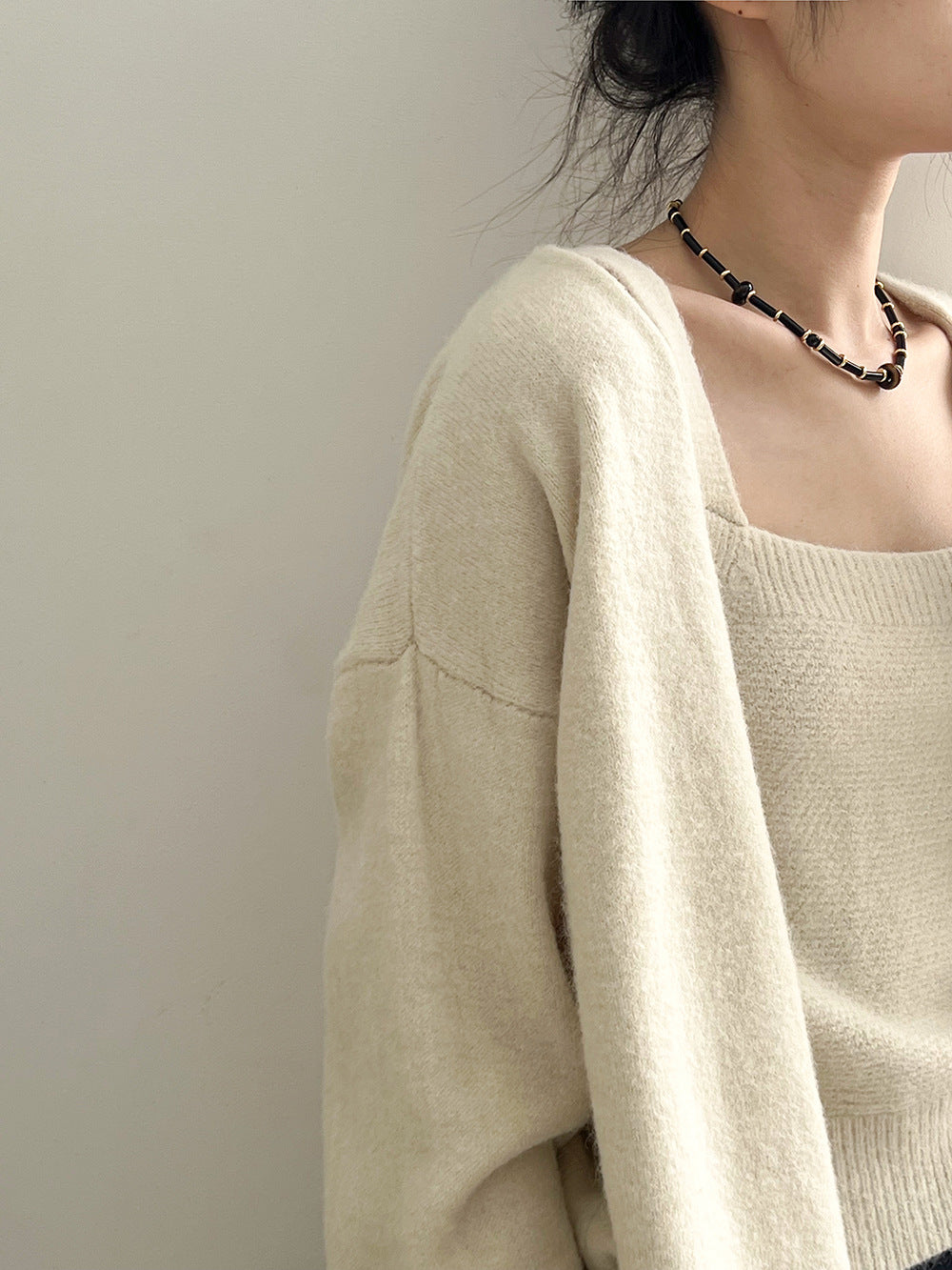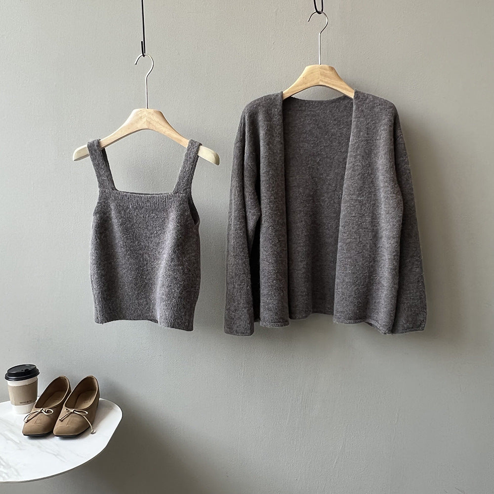 【YA13】實拍氣質針織外套+背心兩件套YY25早春
