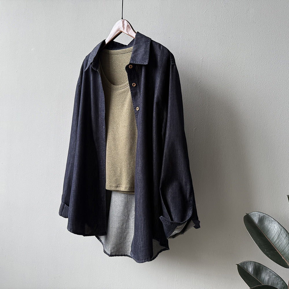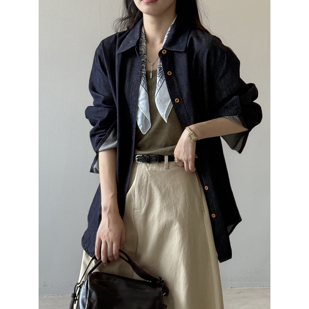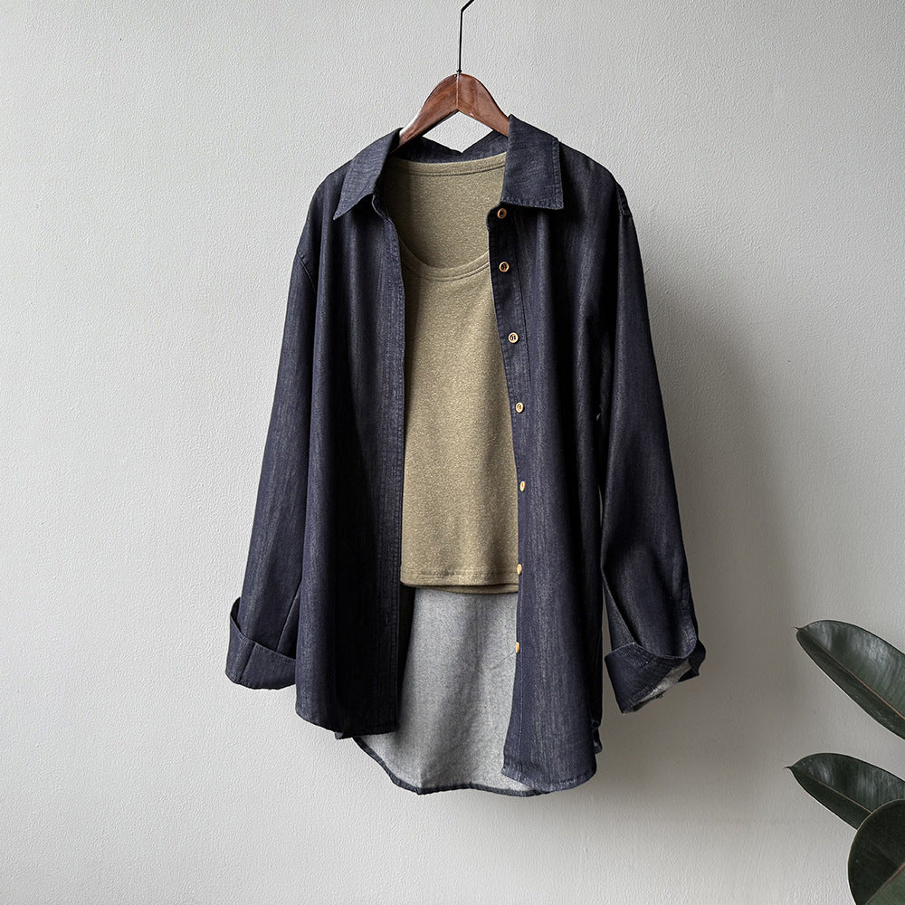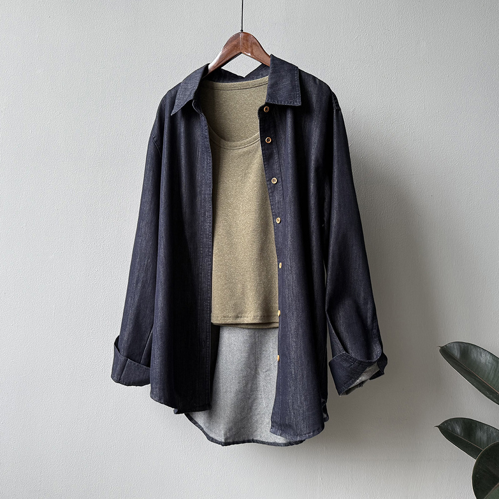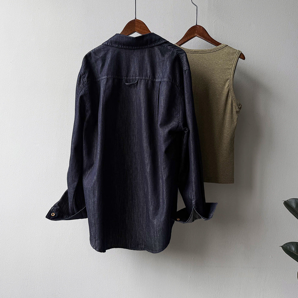 【YH2873】實拍復古牛仔長袖襯衫+背心套裝250918