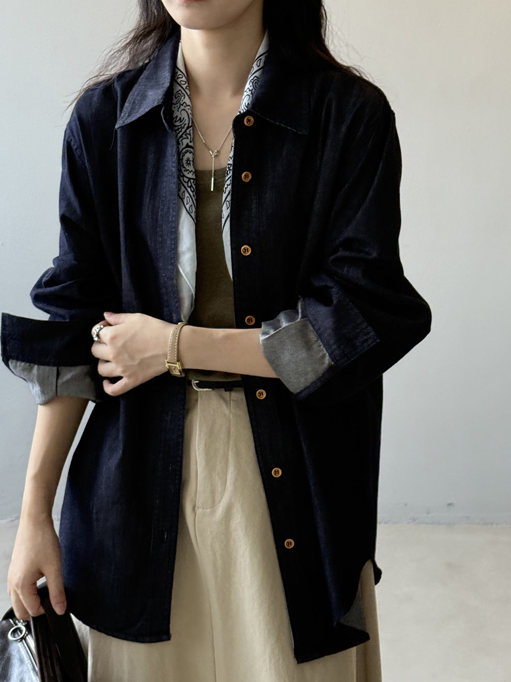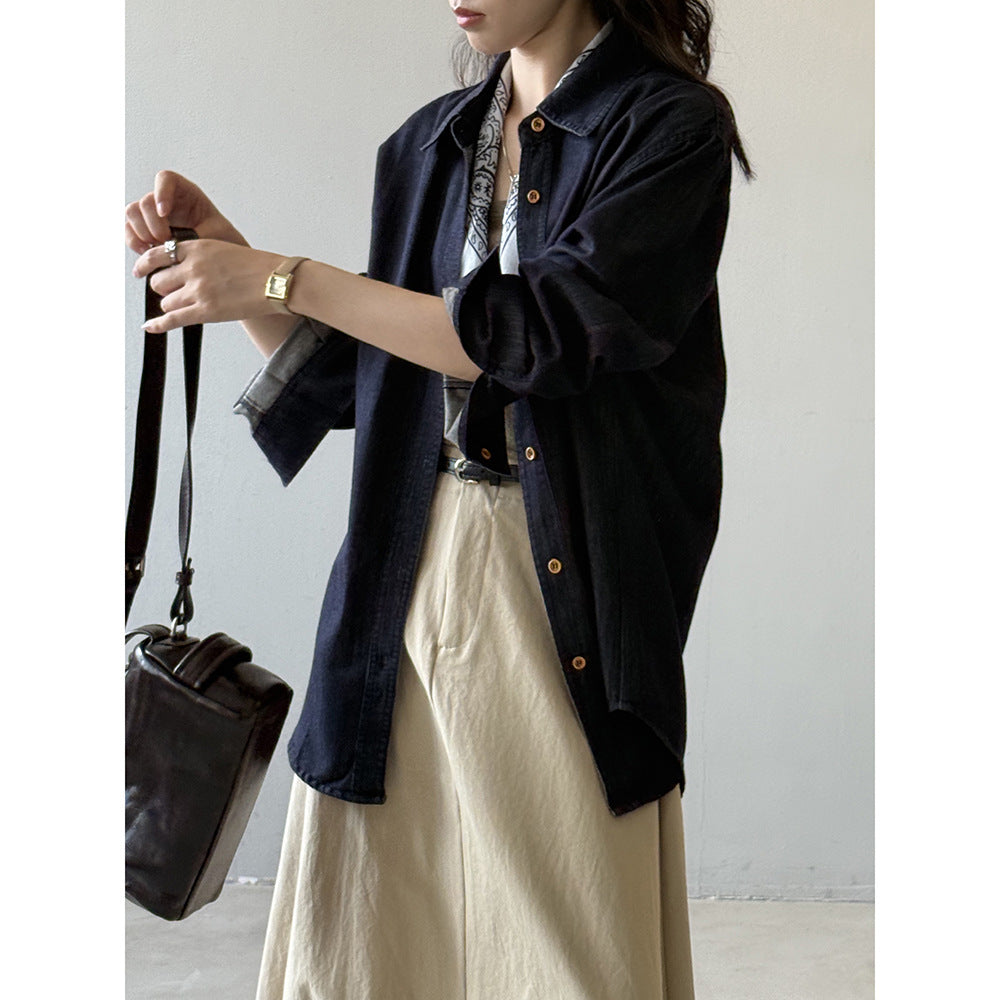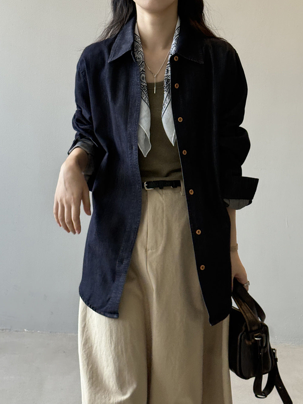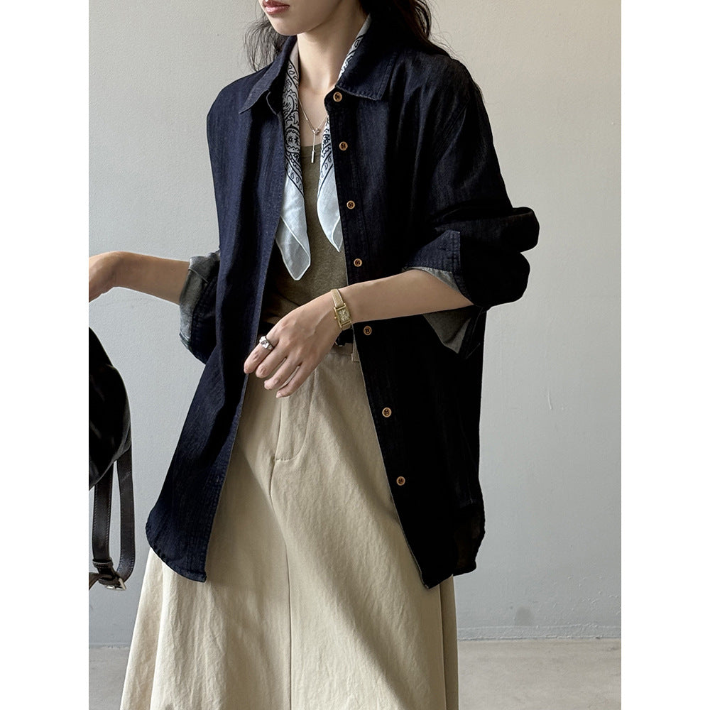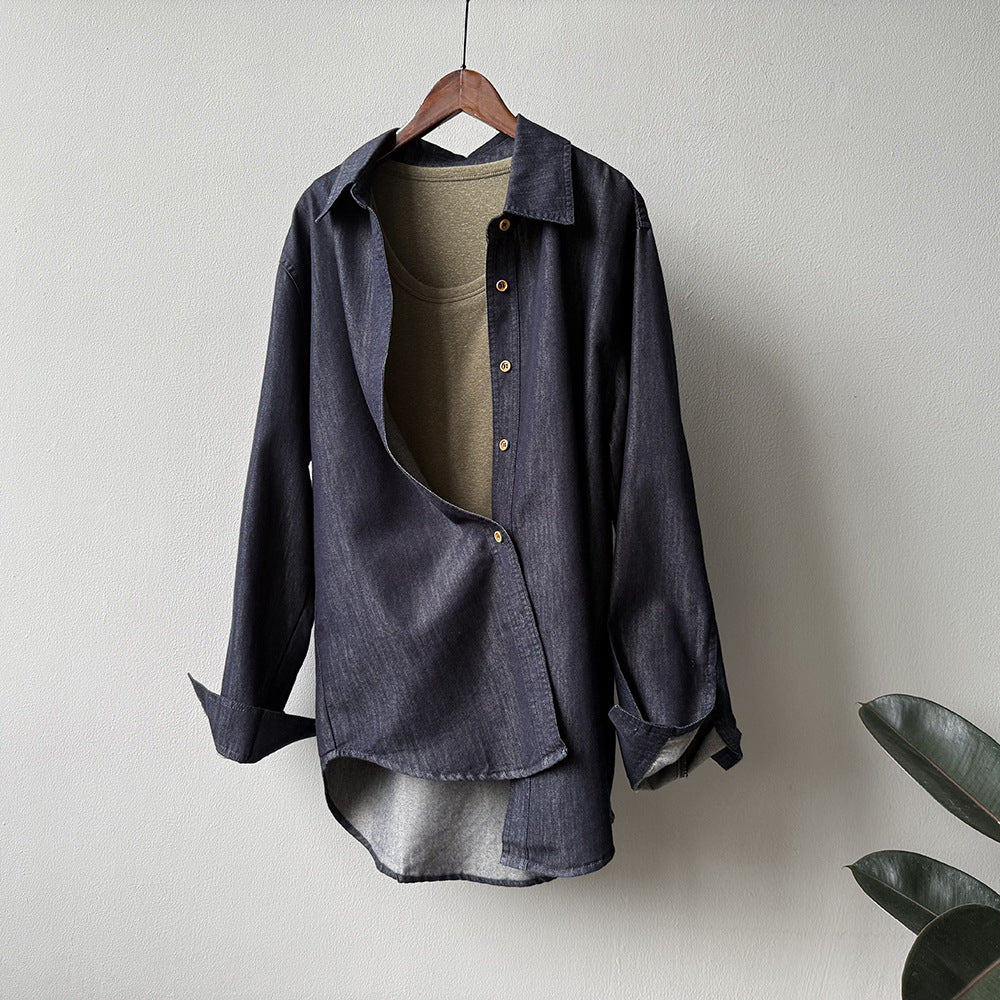 【YH2873】實拍復古牛仔長袖襯衫+背心套裝250918