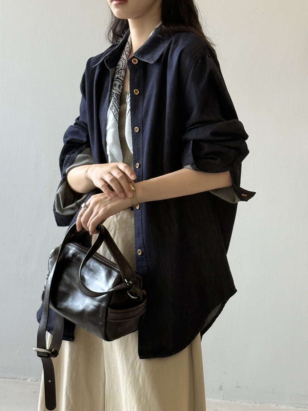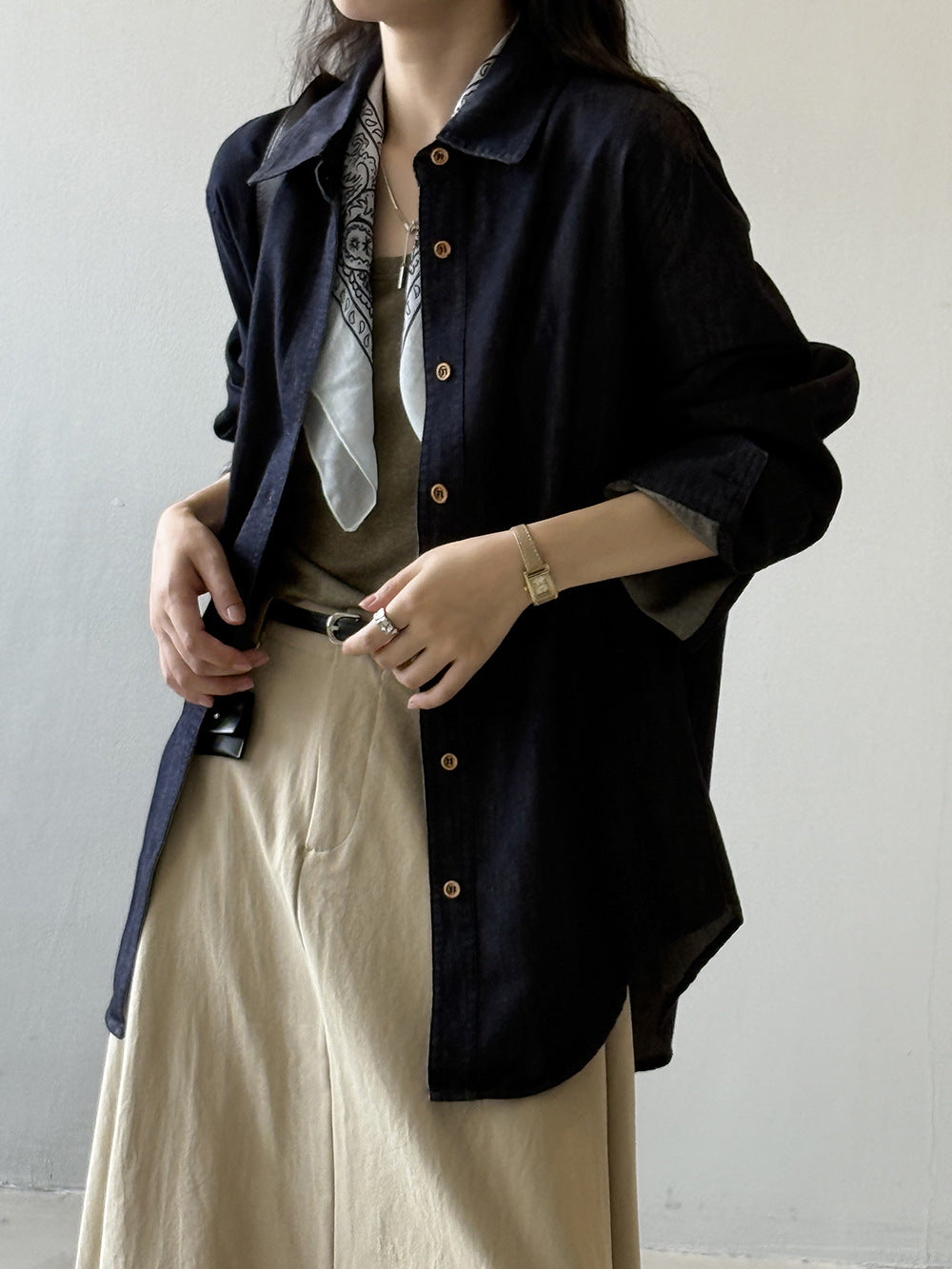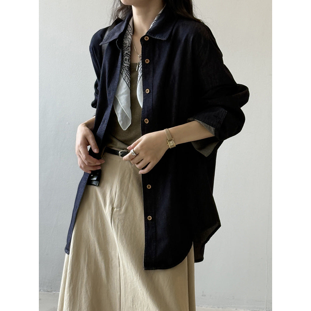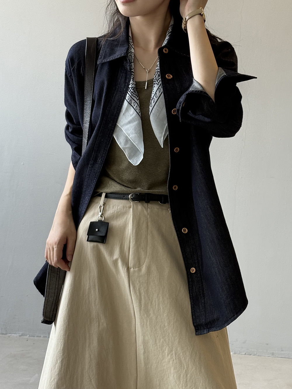 【YH2873】實拍復古牛仔長袖襯衫+背心套裝250918