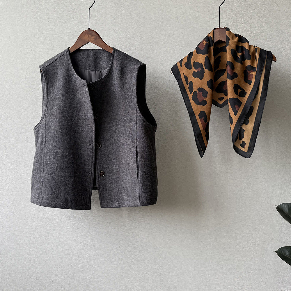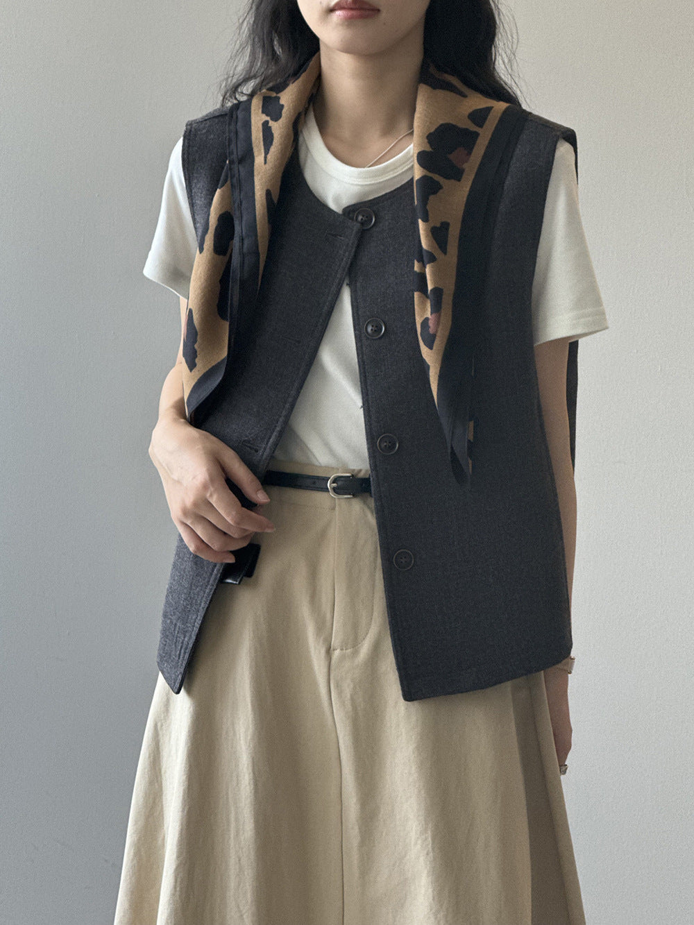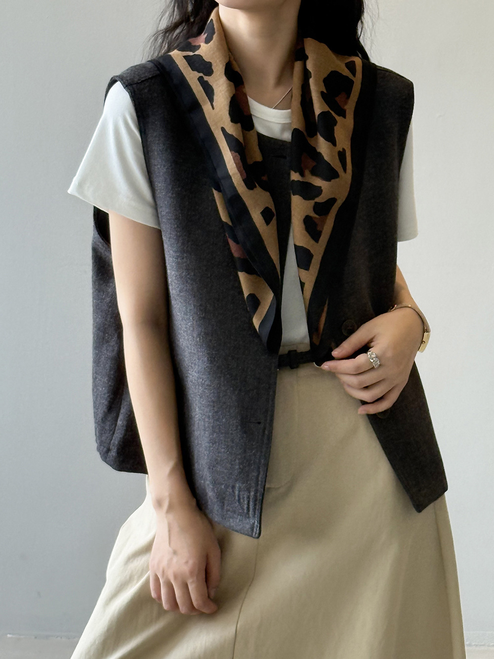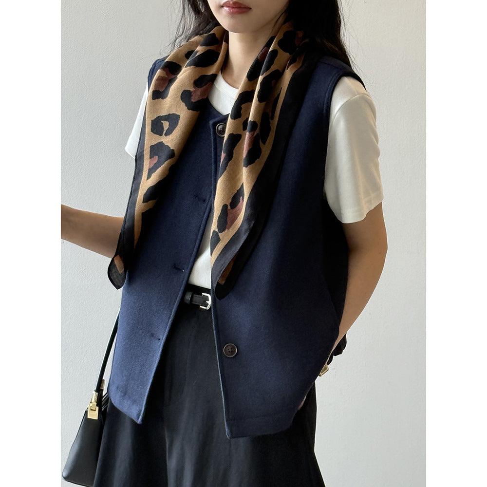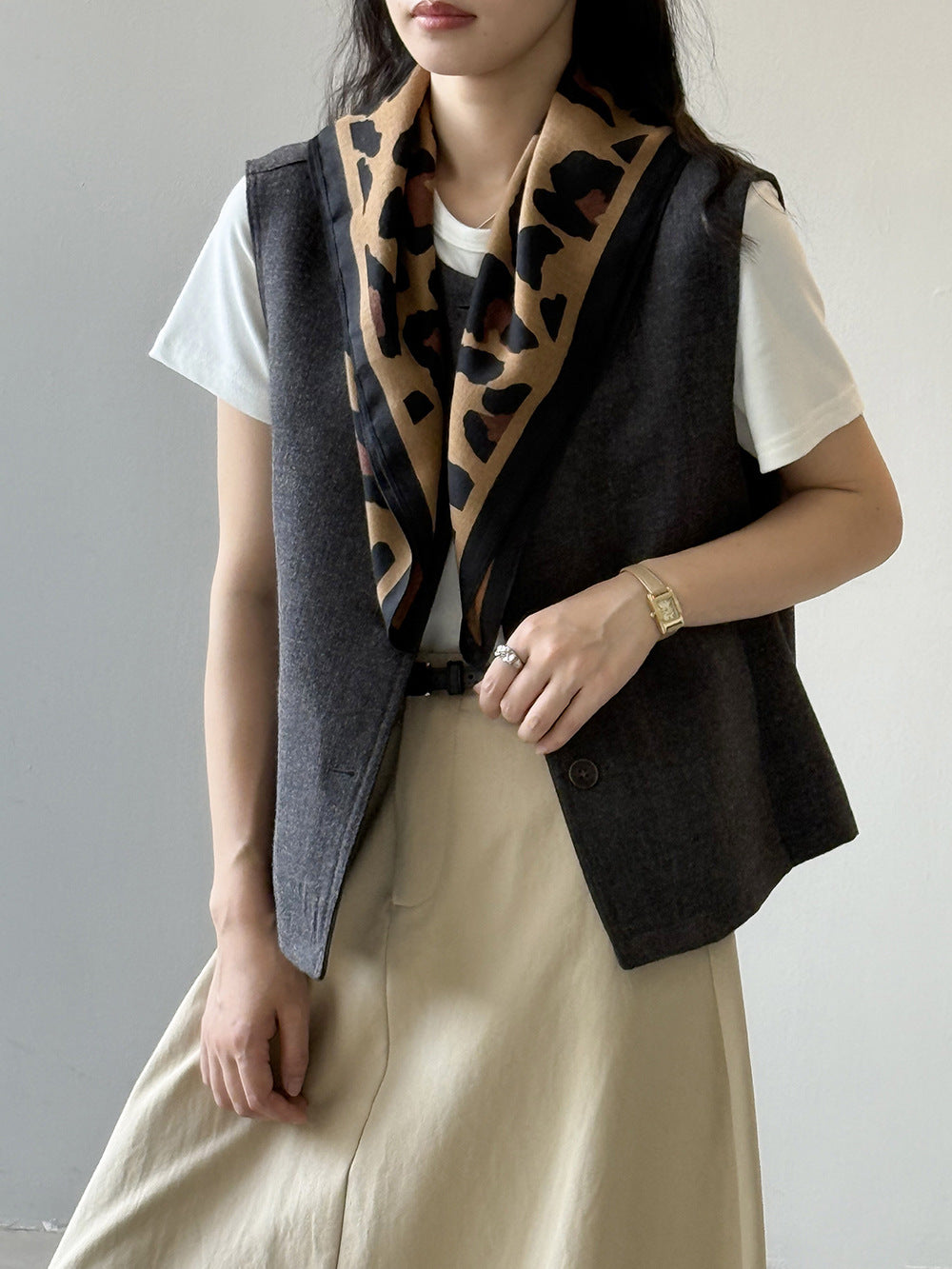 【YH3509】實拍韓版寬鬆背心+豹紋方巾250918