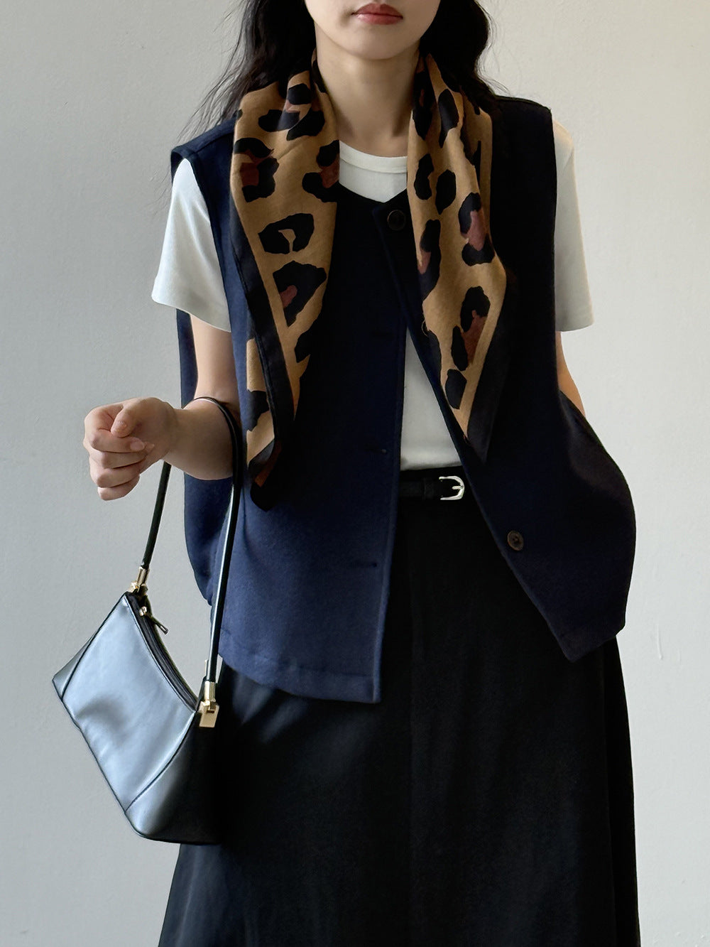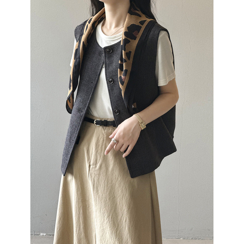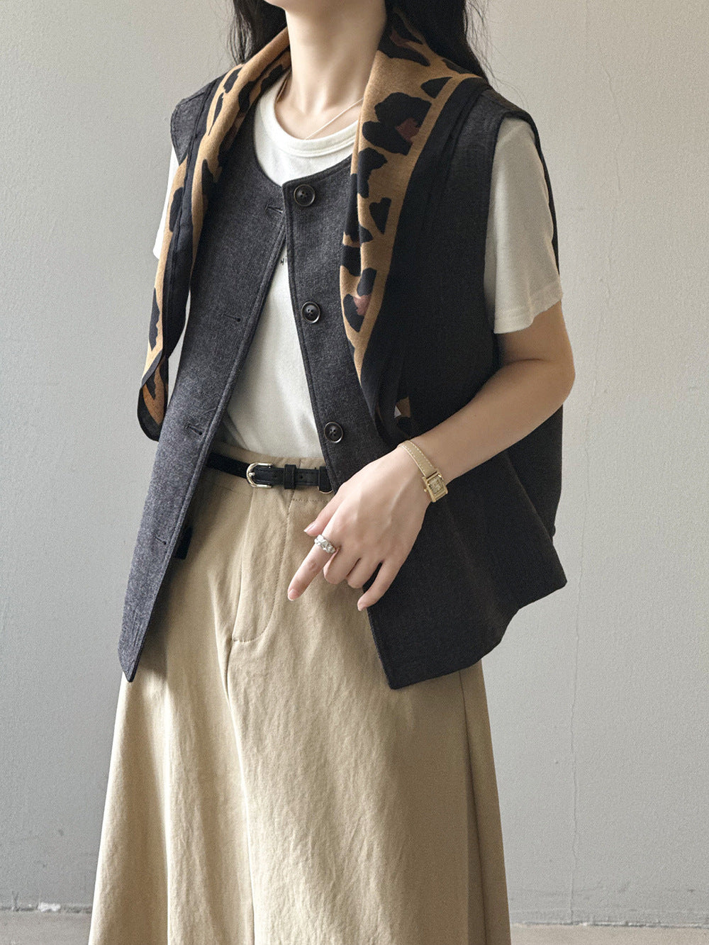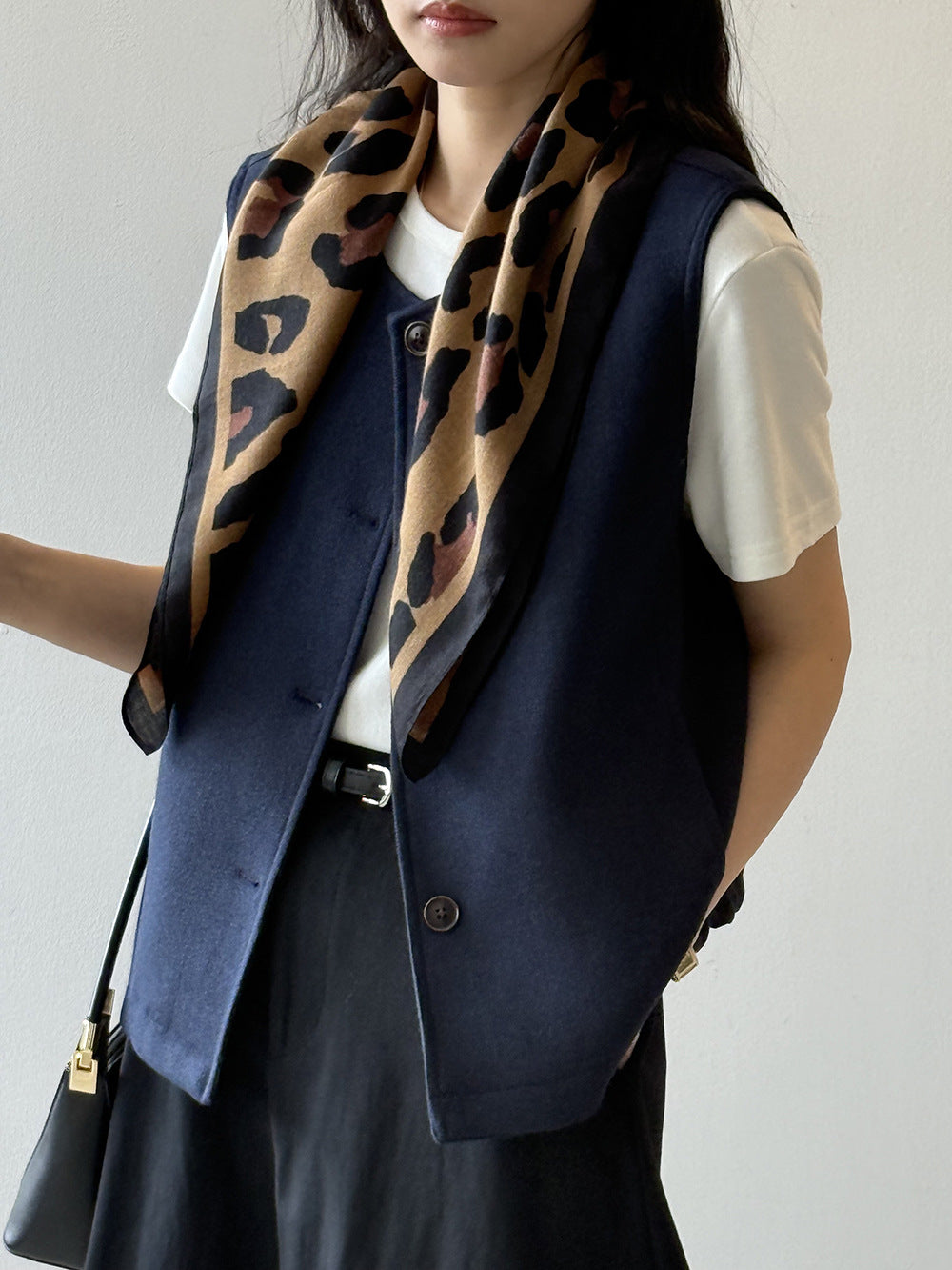 【YH3509】實拍韓版寬鬆背心+豹紋方巾250918
