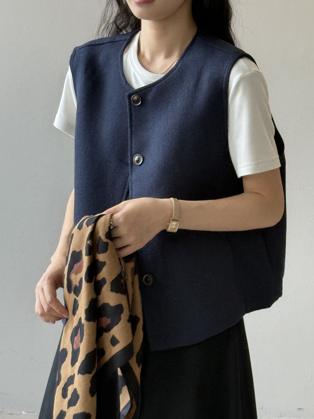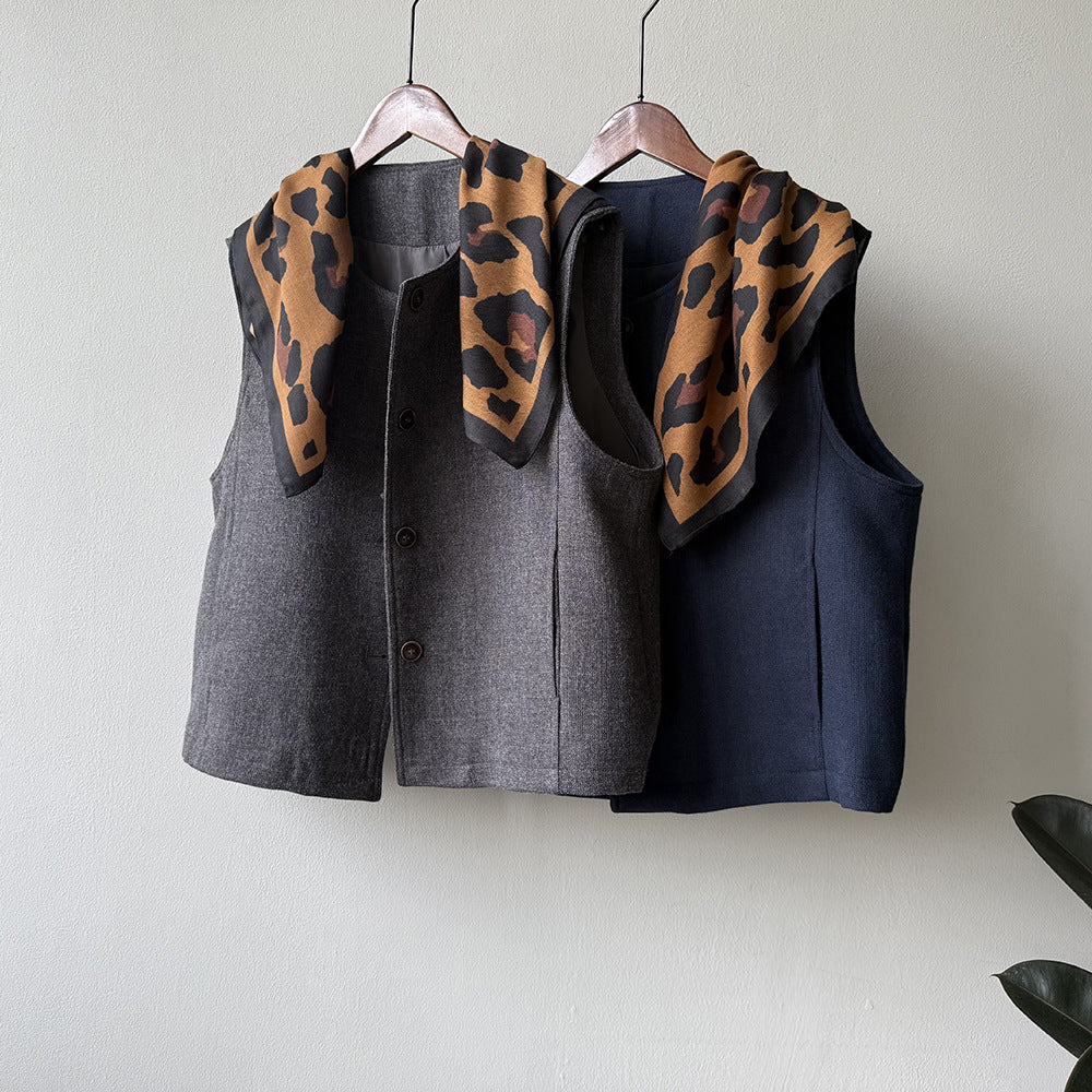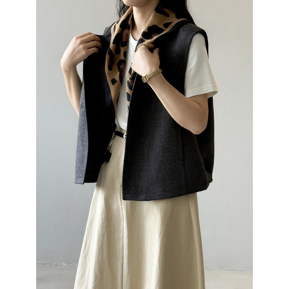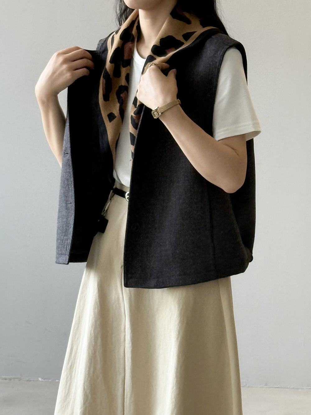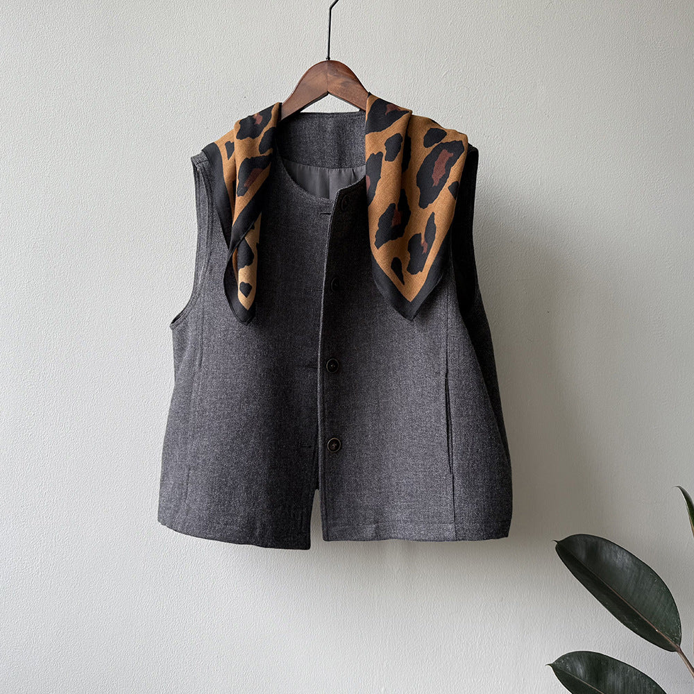 【YH3509】實拍韓版寬鬆背心+豹紋方巾250918