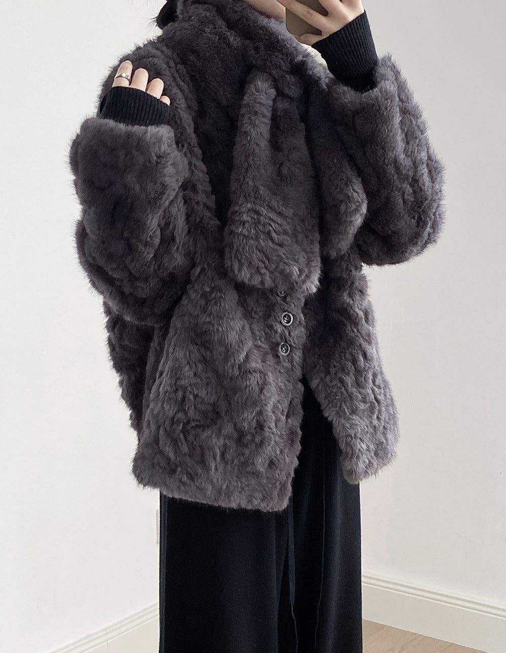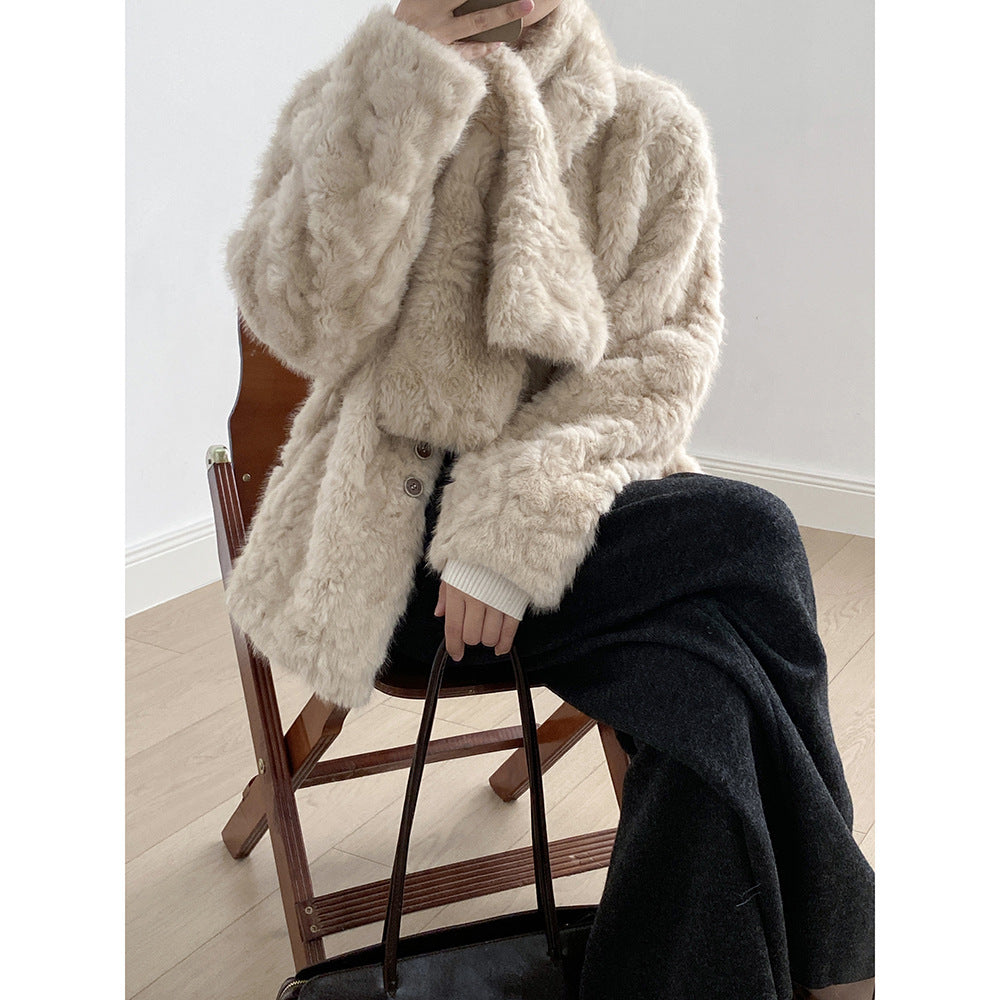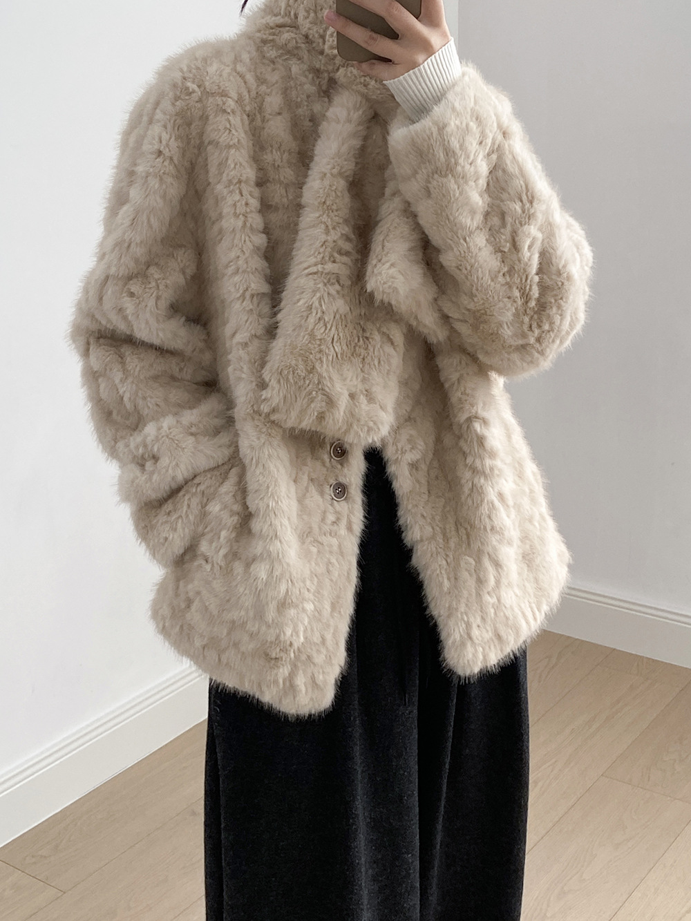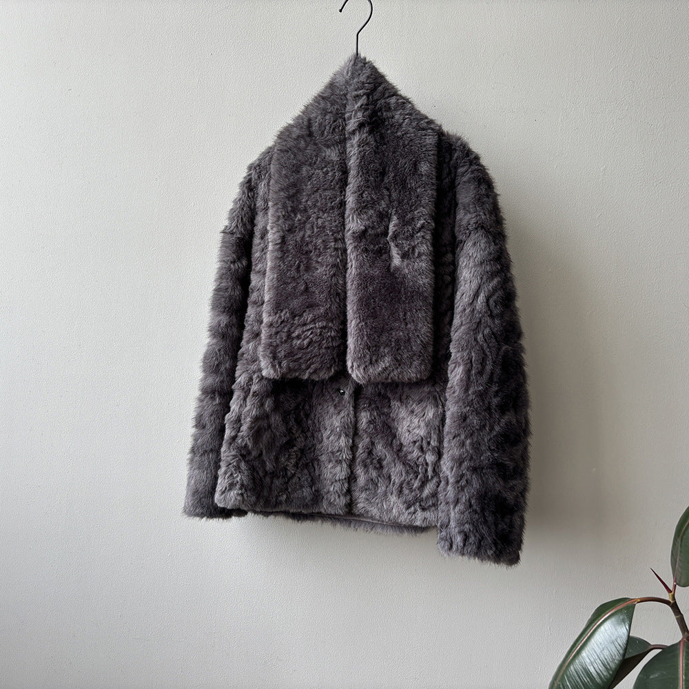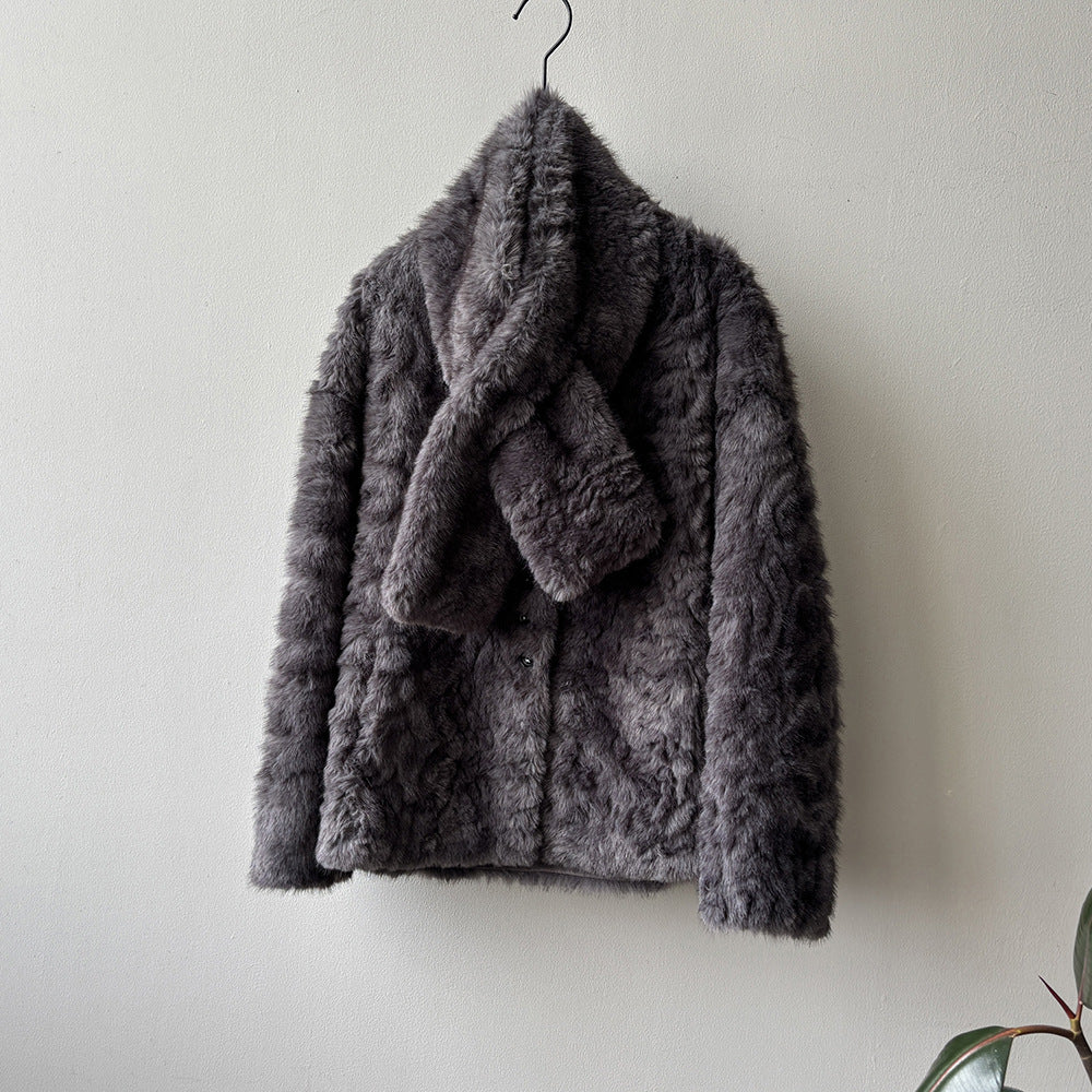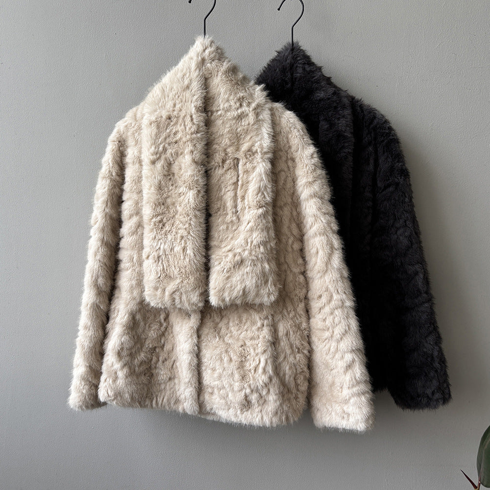【YH707】實拍高質感毛茸茸仿皮毛保暖一体毛绒外套+圍巾251113