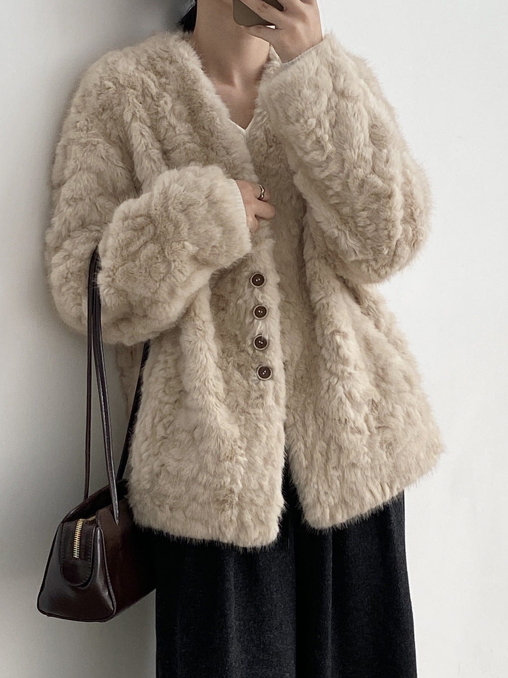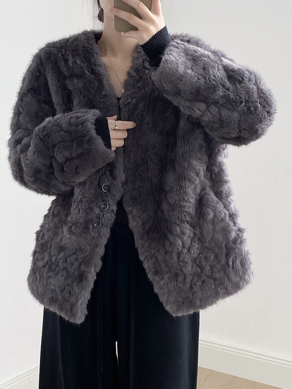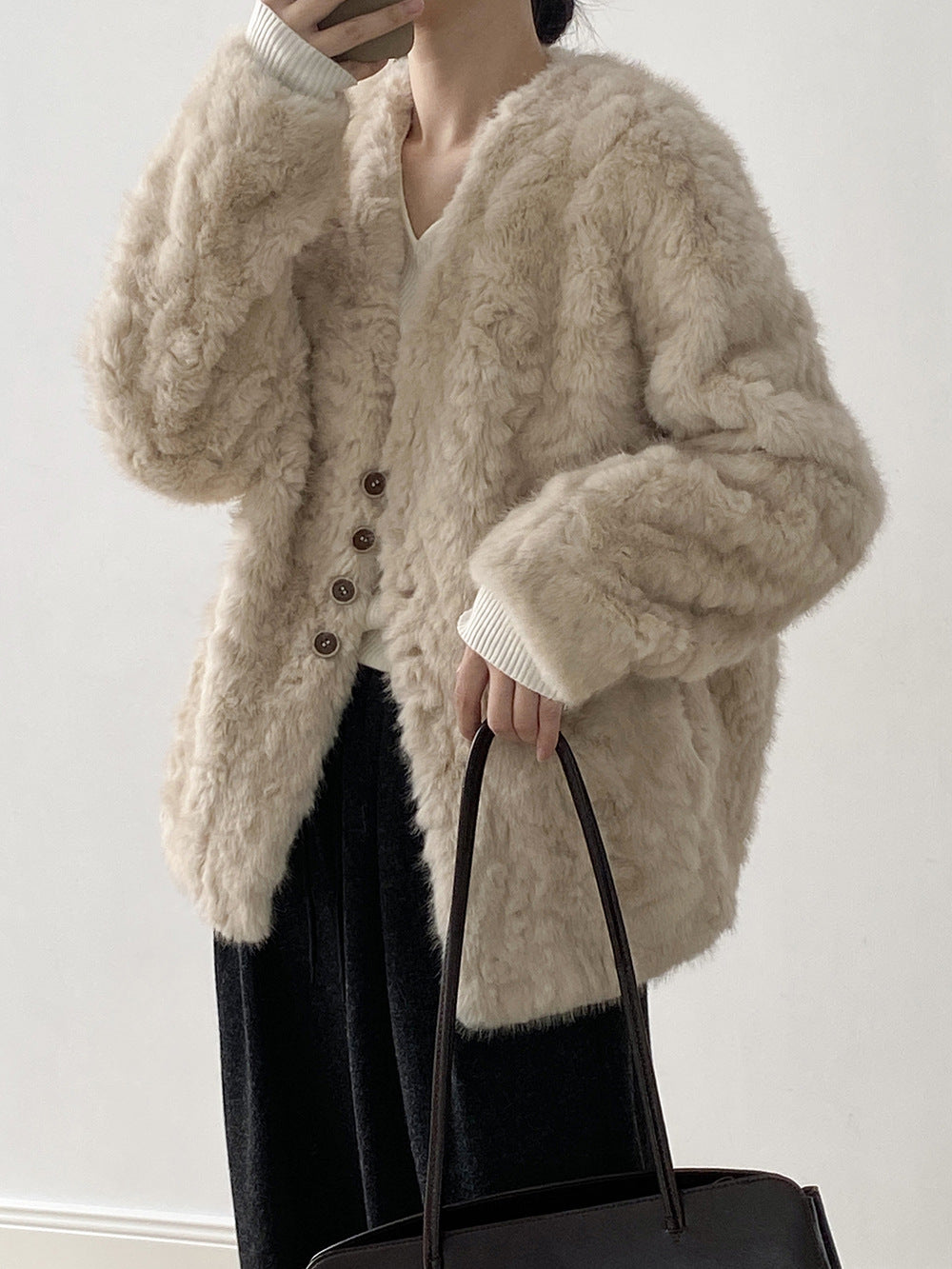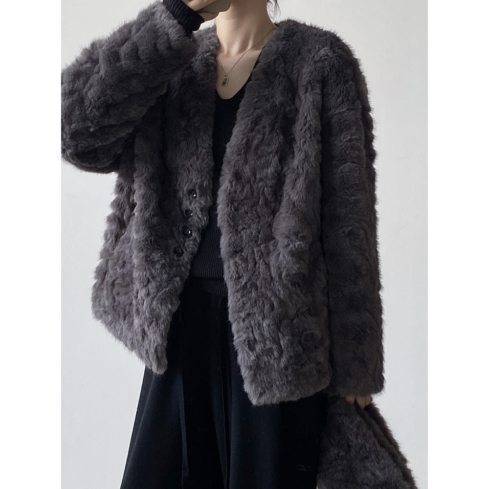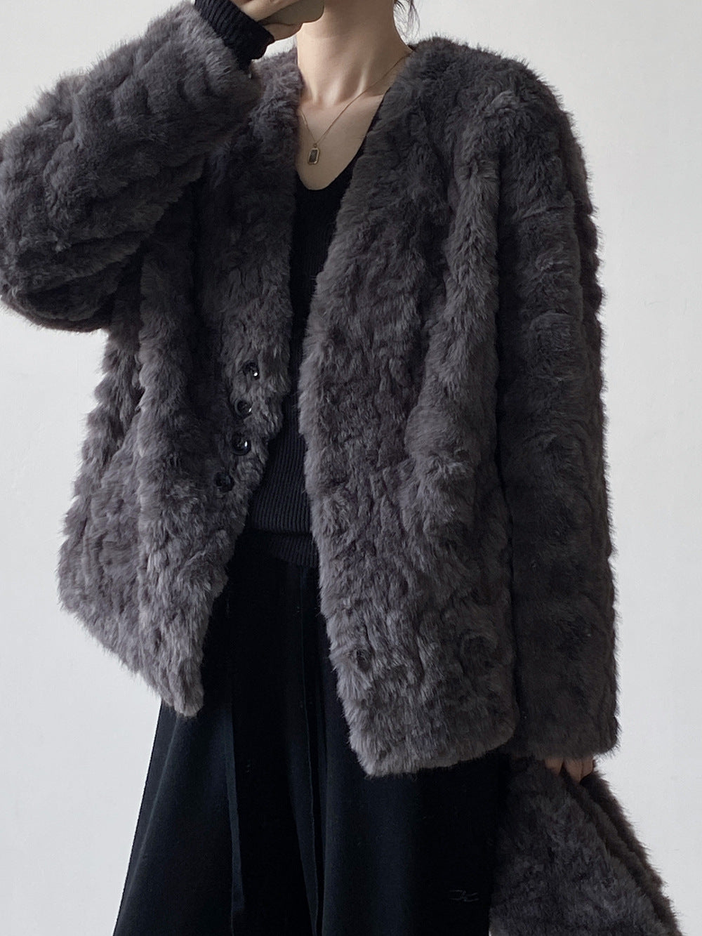 【YH707】實拍高質感毛茸茸仿皮毛保暖一体毛绒外套+圍巾251113