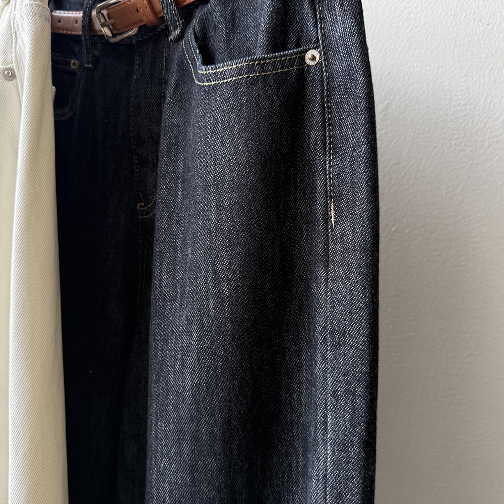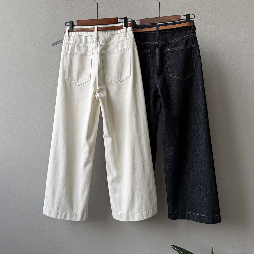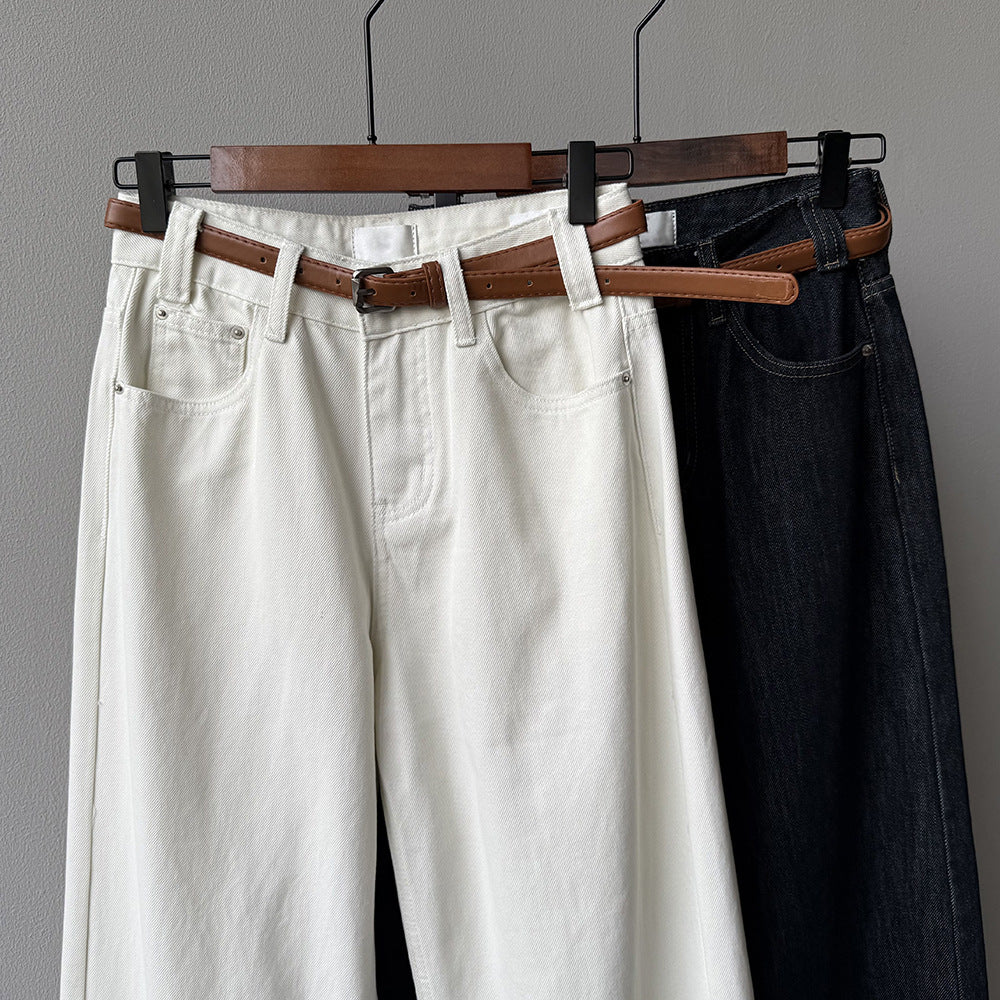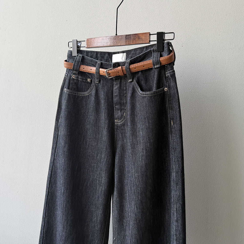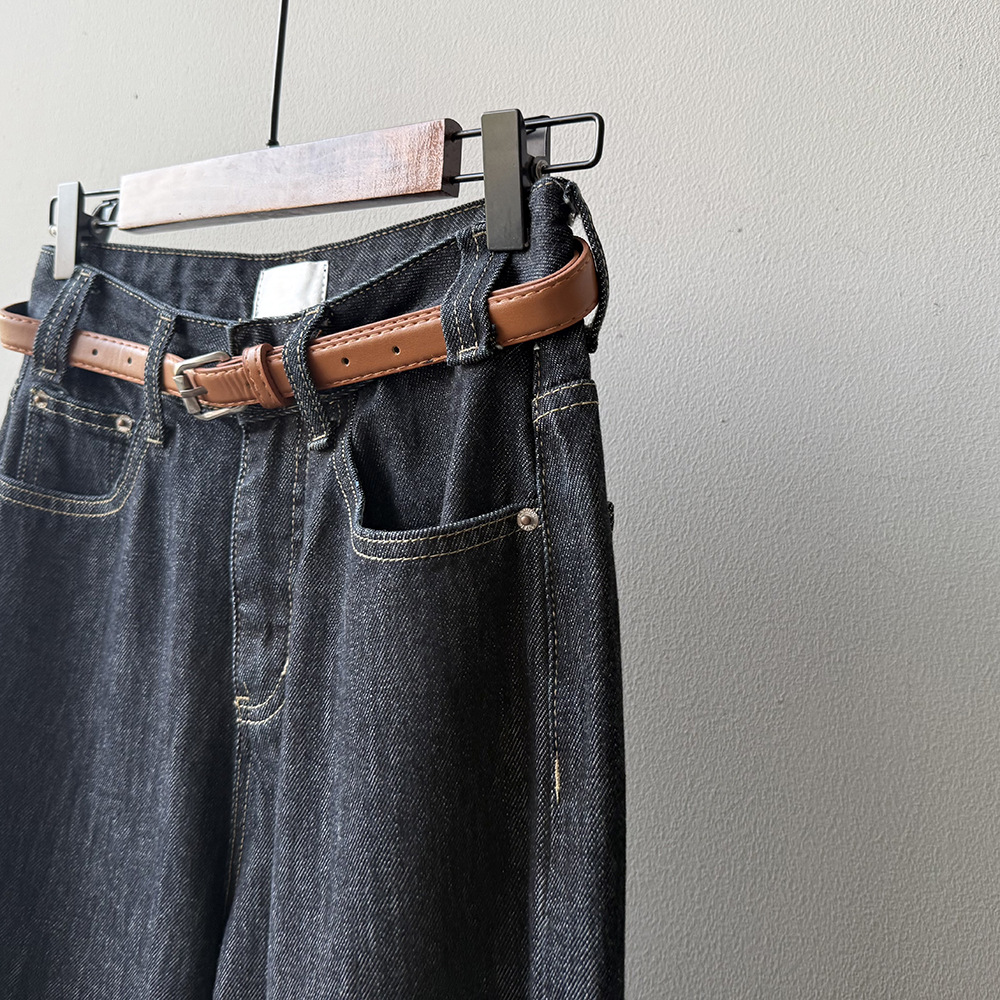 【YH9813】實拍復古高腰直筒牛仔褲+配腰帶250911