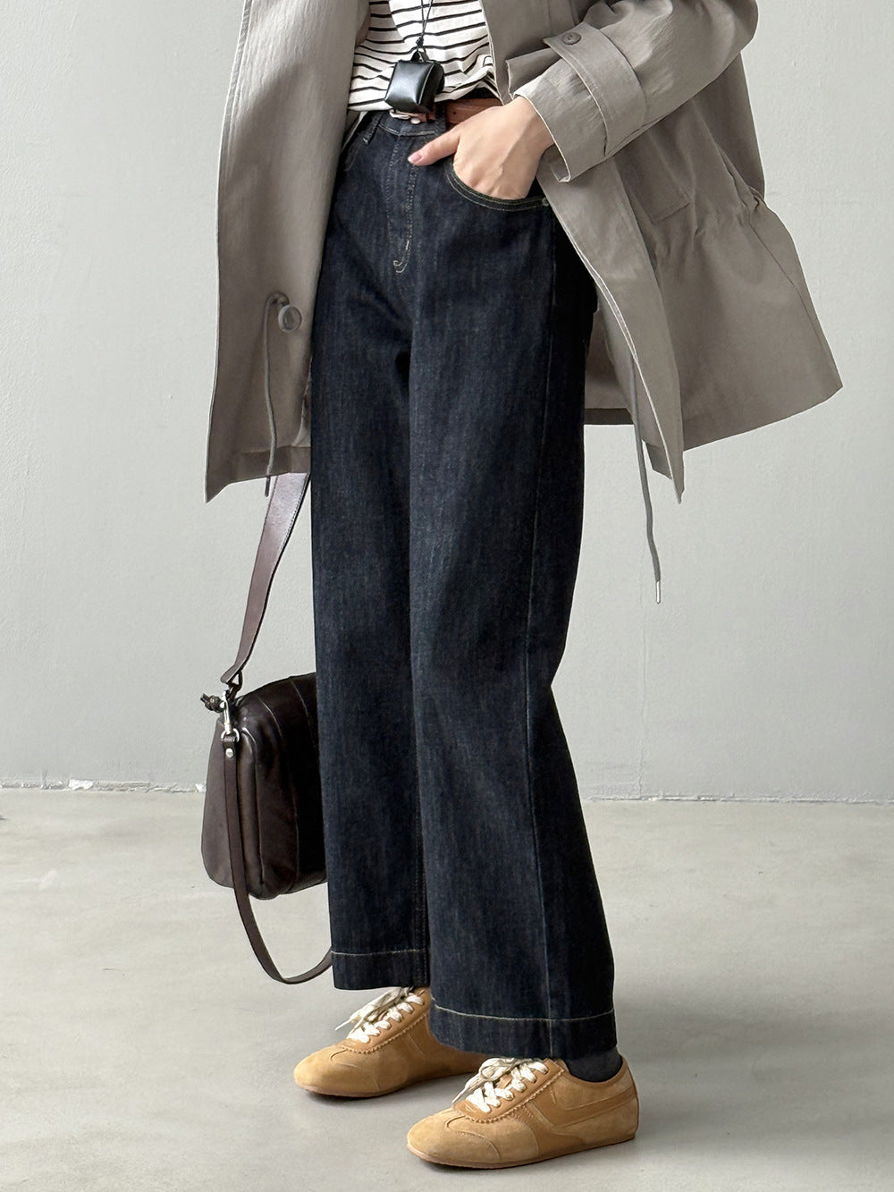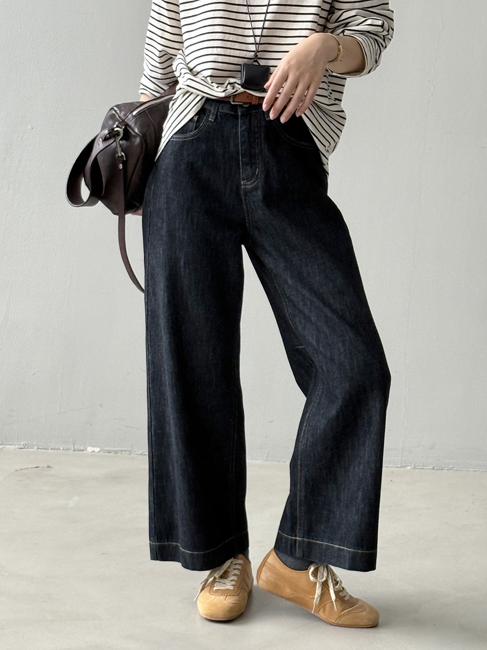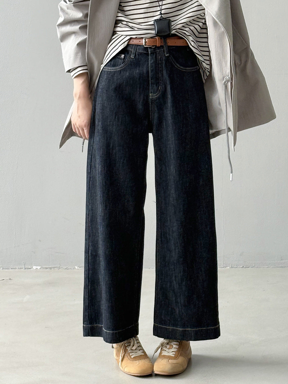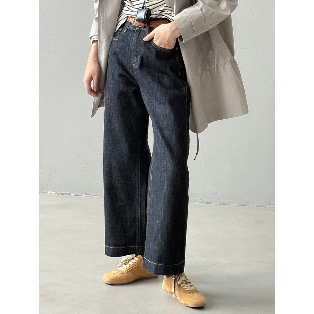【YH9813】實拍復古高腰直筒牛仔褲+配腰帶250911