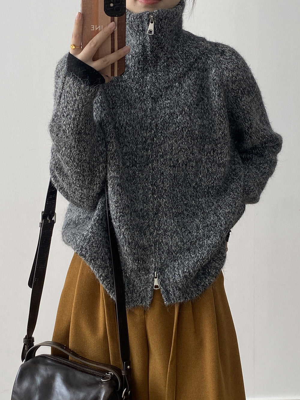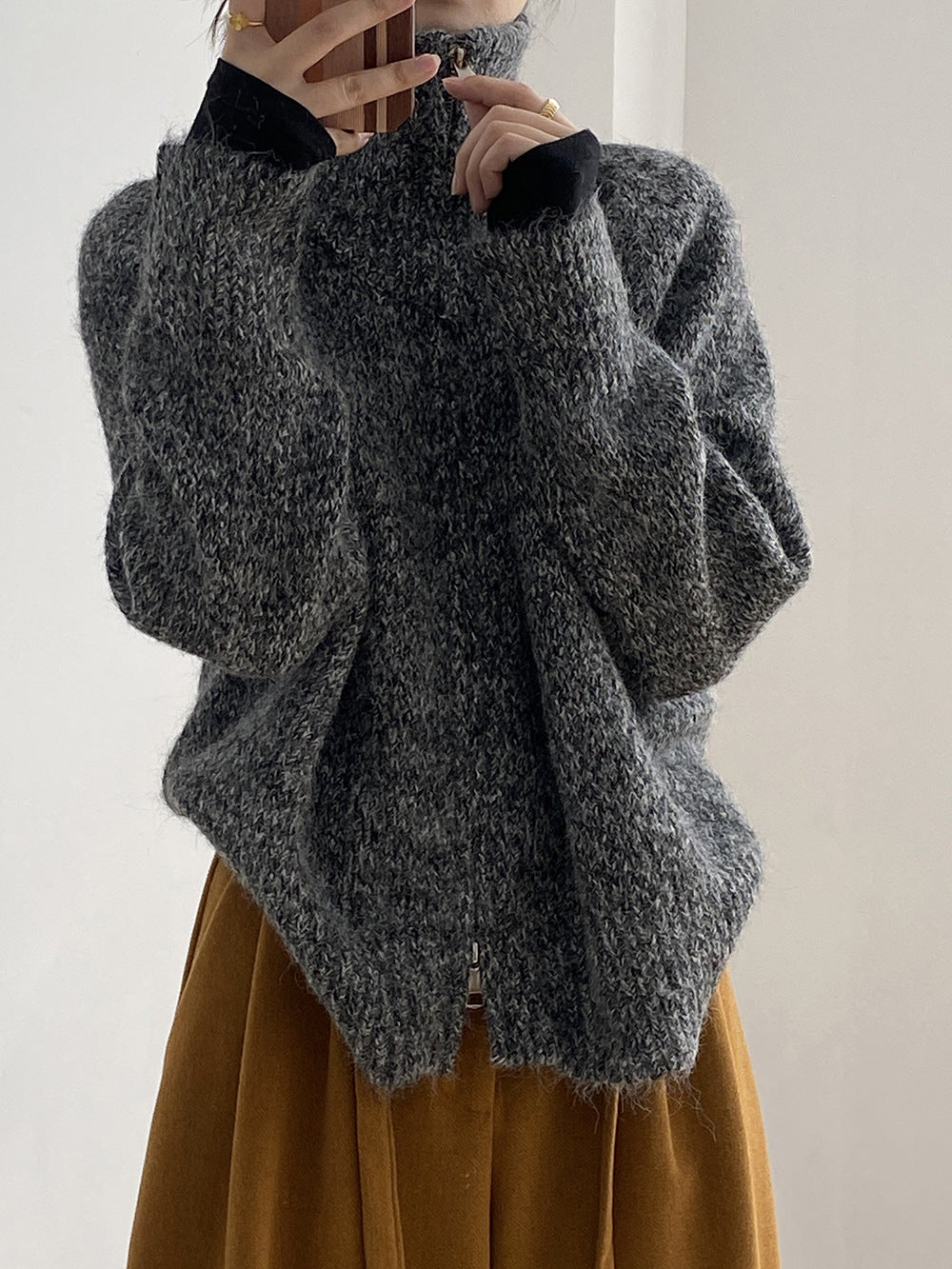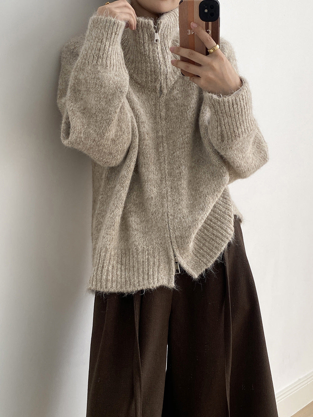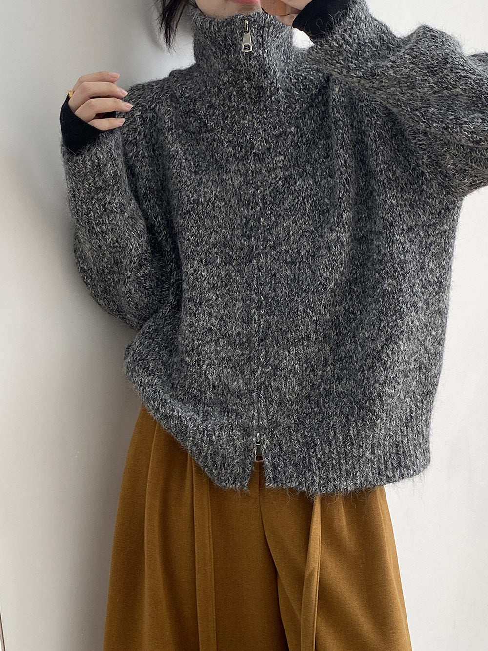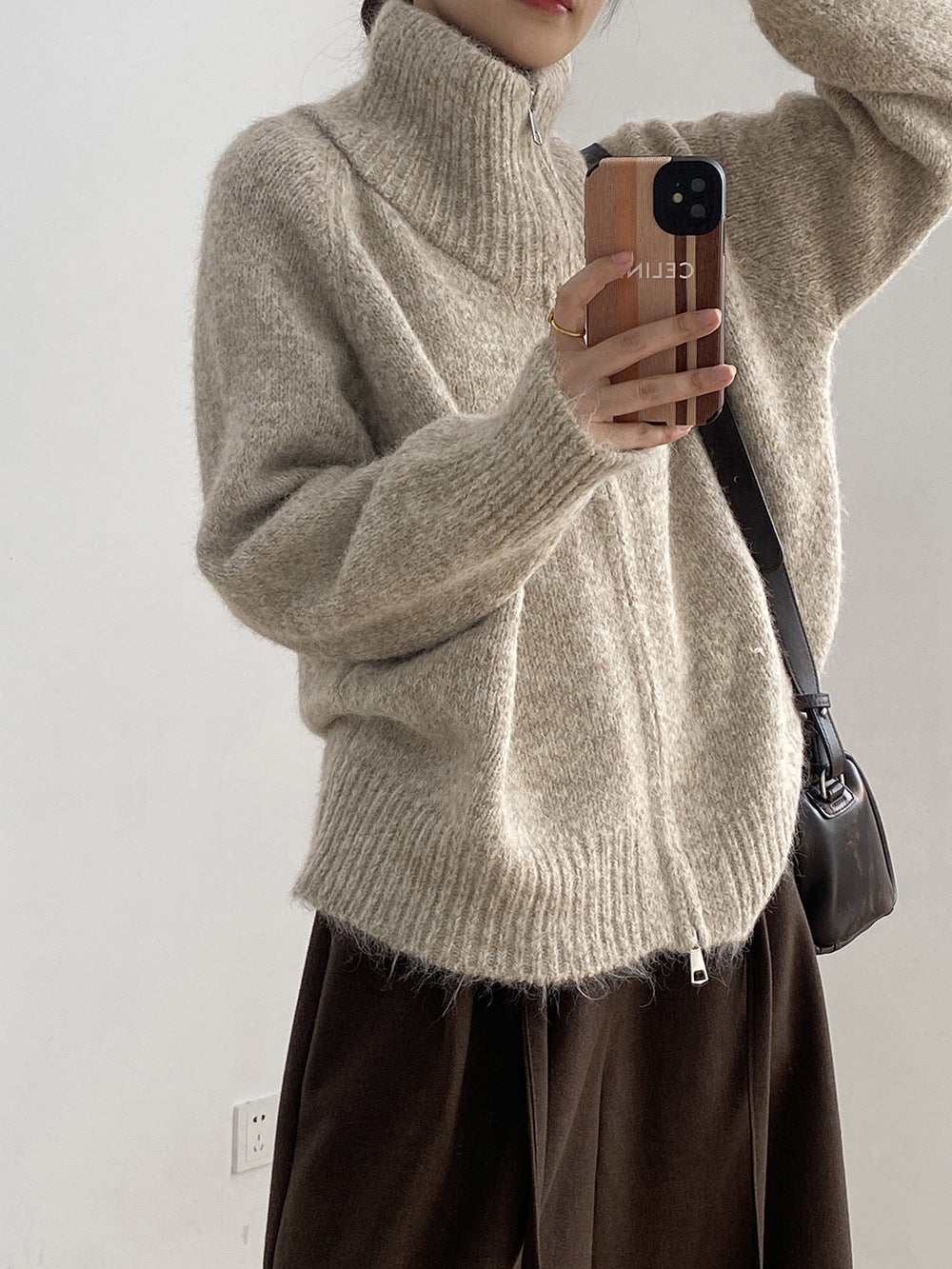【YP1042】 實拍軟糯寬鬆高領針織毛衣外套(含羊毛4%) 251023