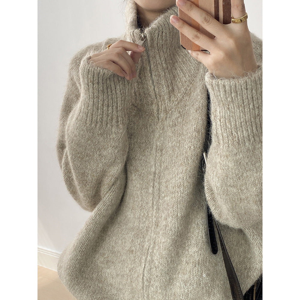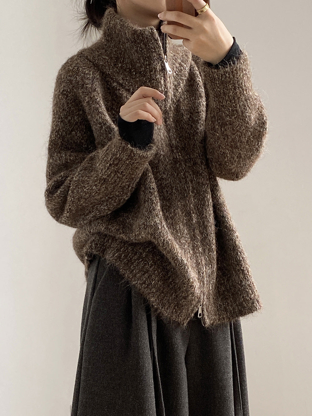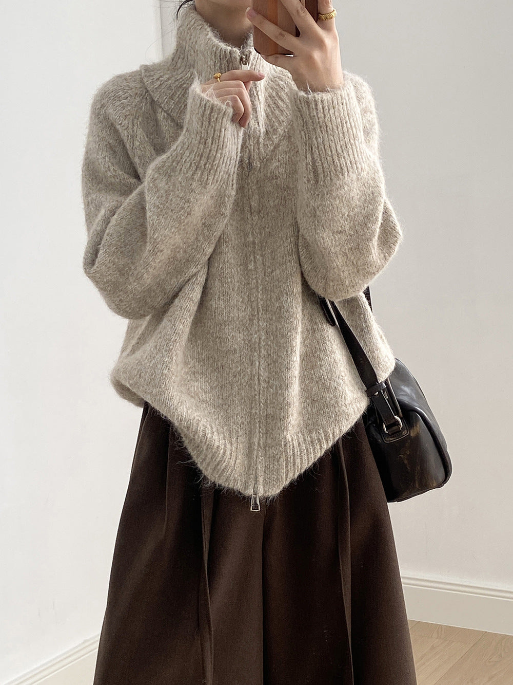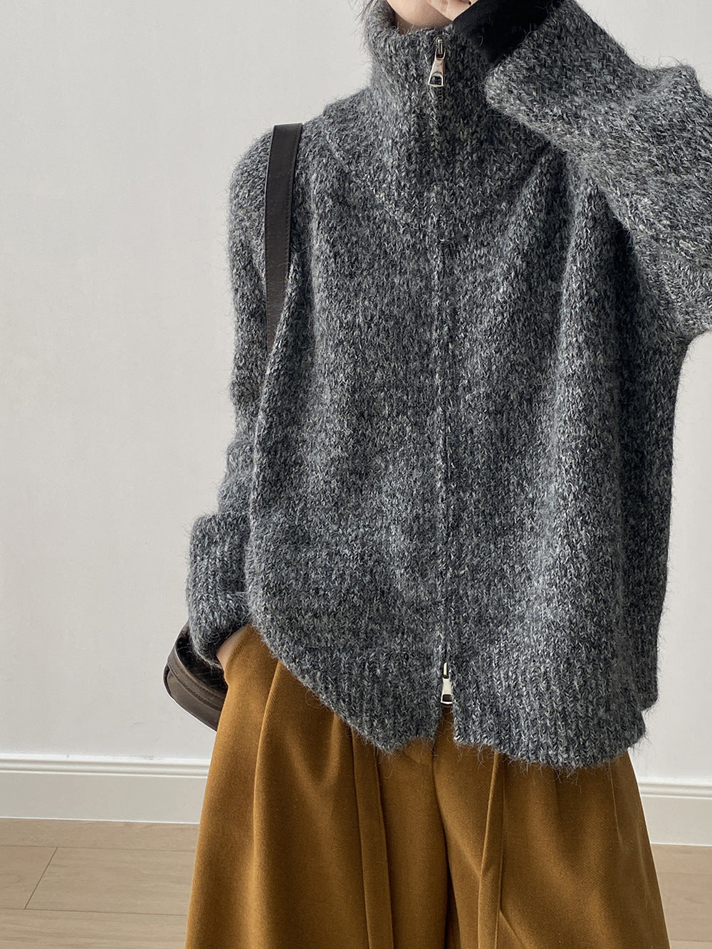 【YP1042】 實拍軟糯寬鬆高領針織毛衣外套(含羊毛4%) 251023
