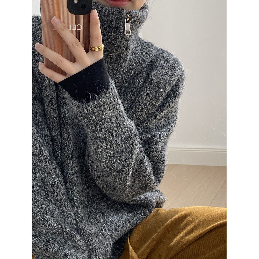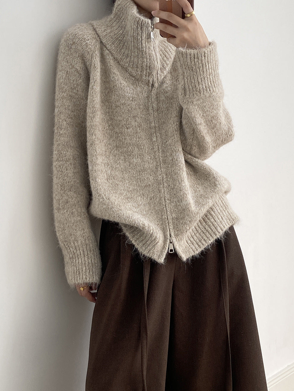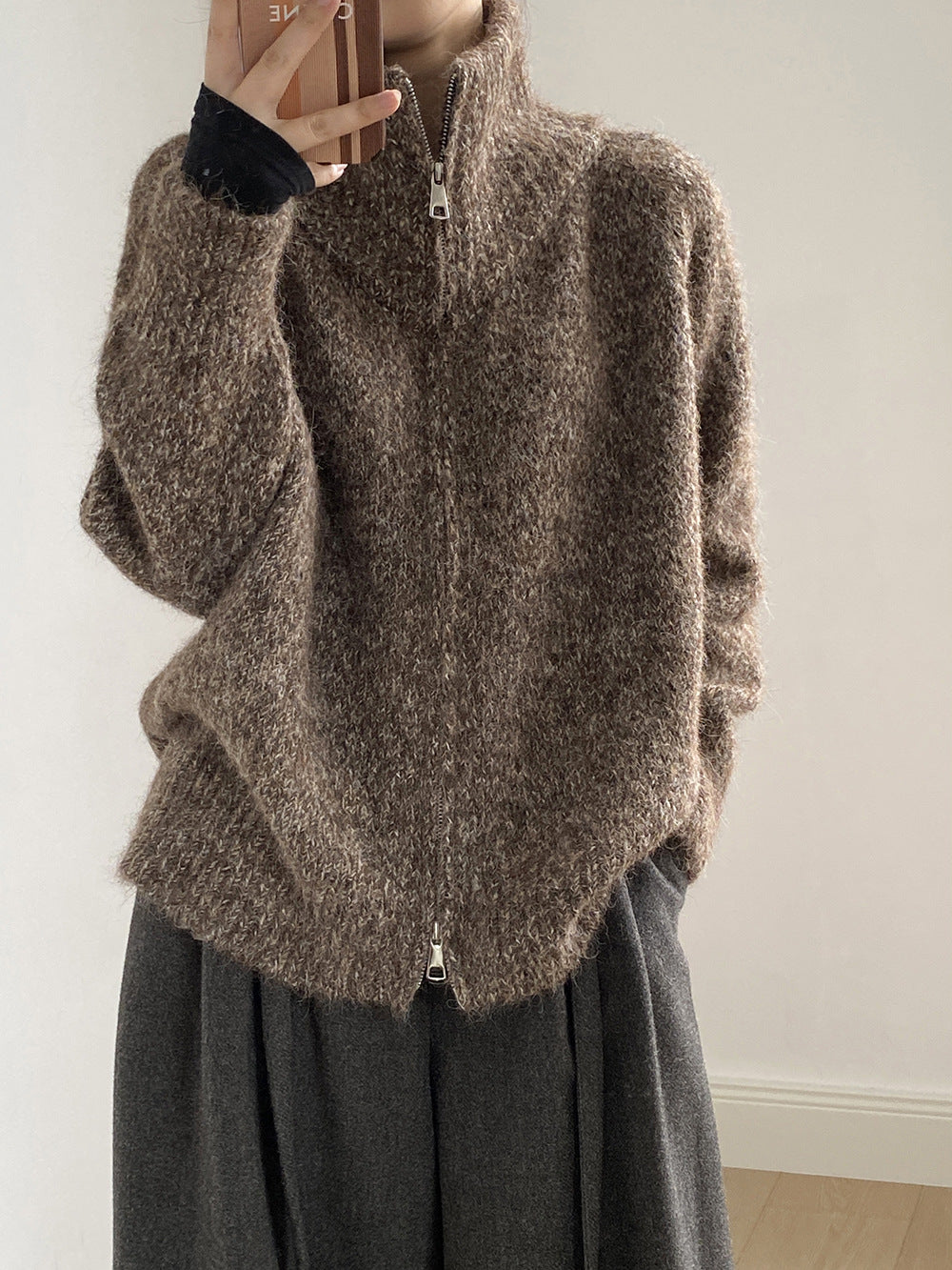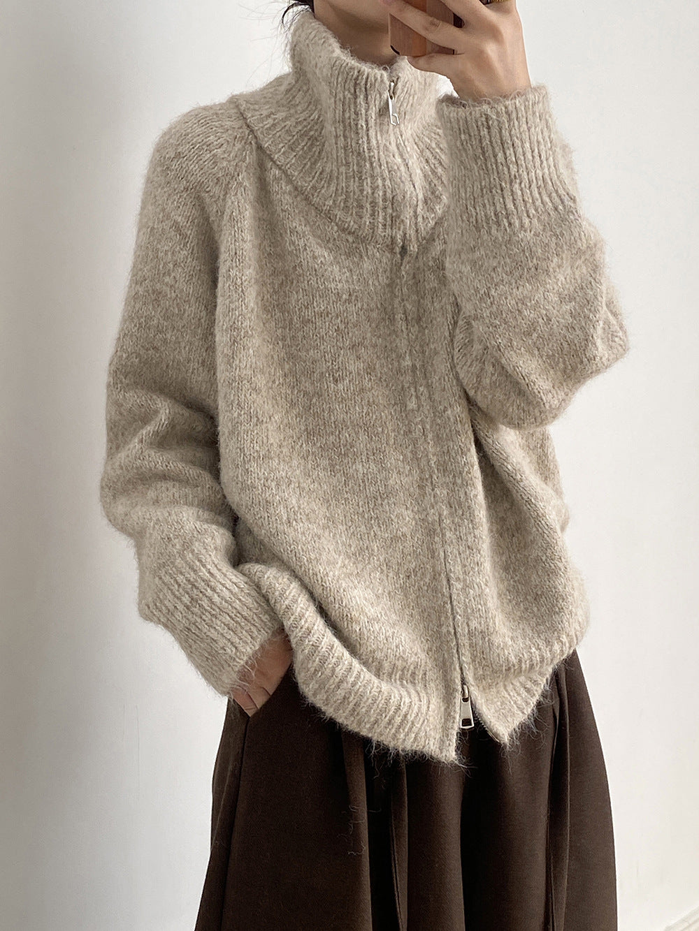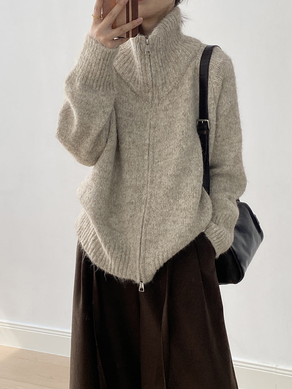 【YP1042】 實拍軟糯寬鬆高領針織毛衣外套(含羊毛4%) 251023