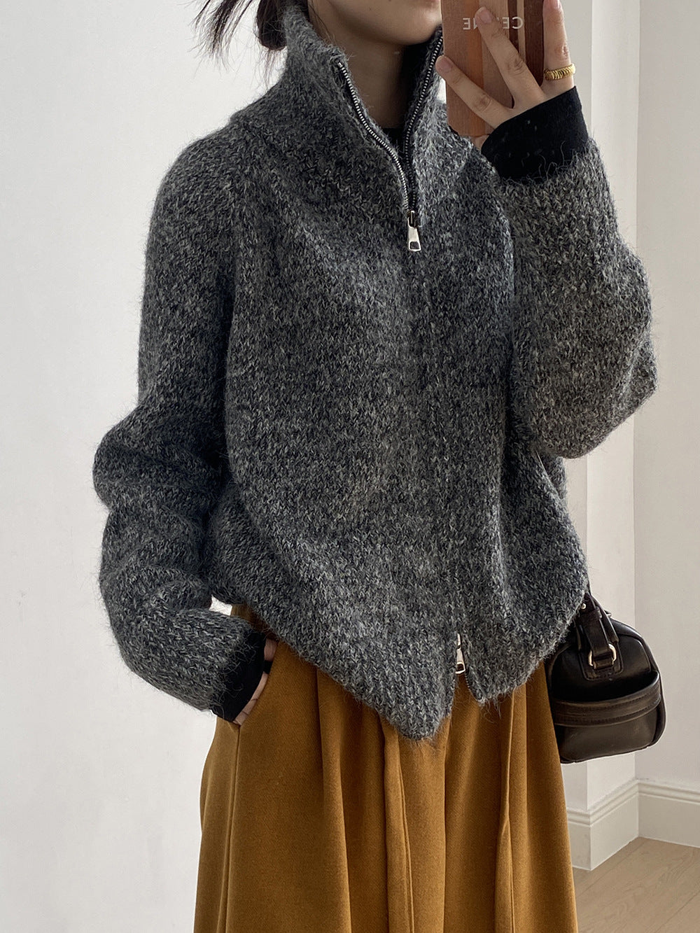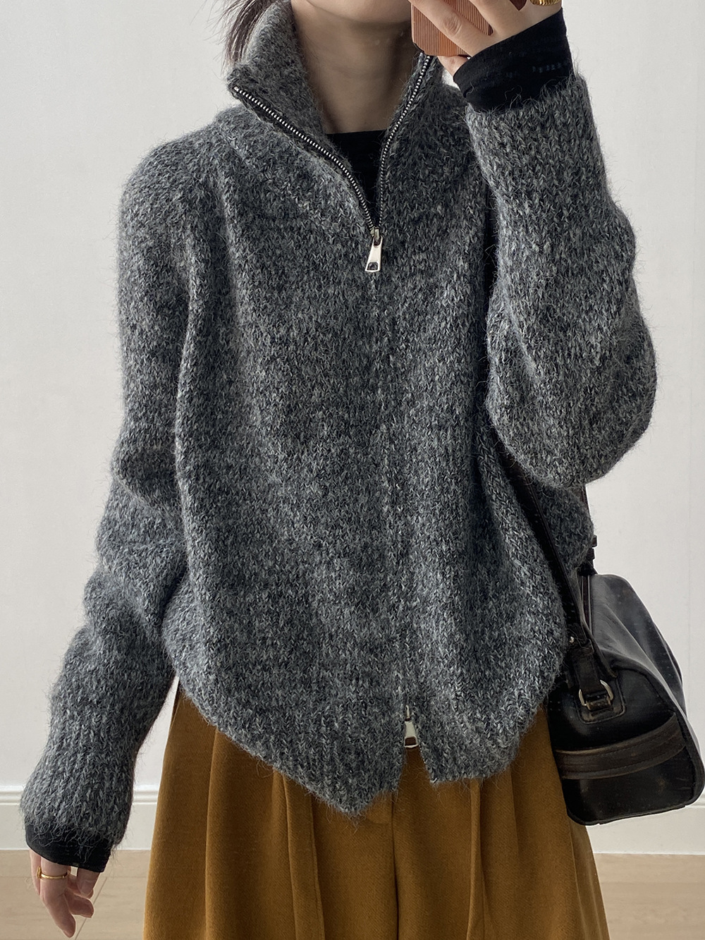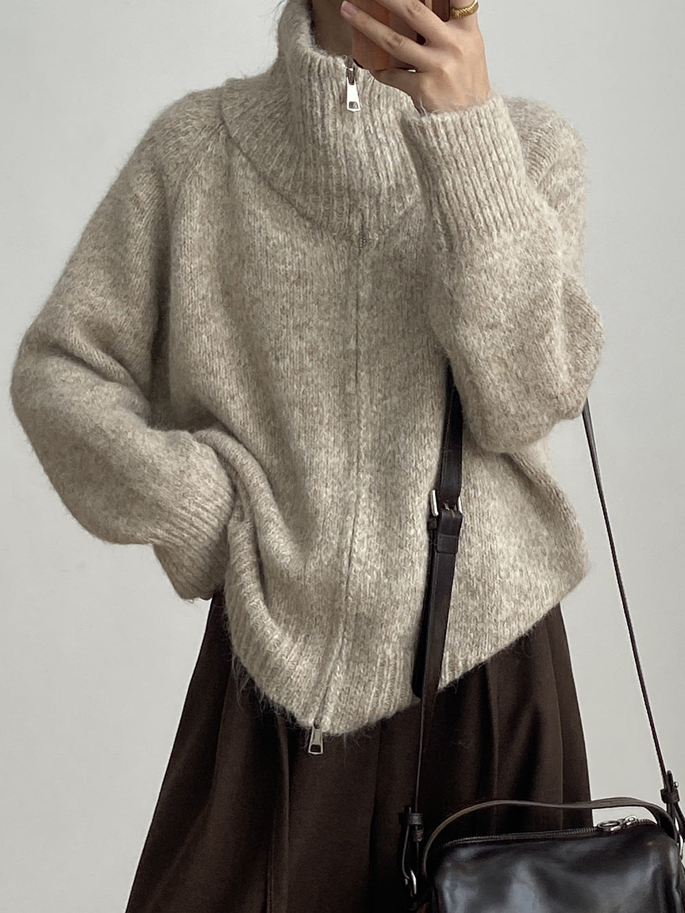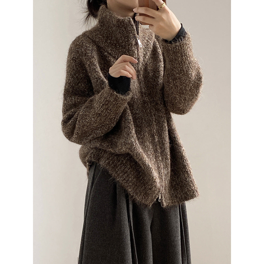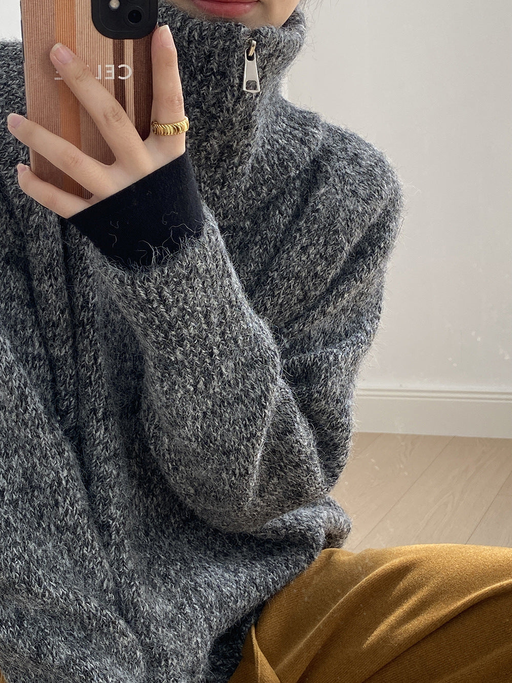 【YP1042】 實拍軟糯寬鬆高領針織毛衣外套(含羊毛4%) 251023