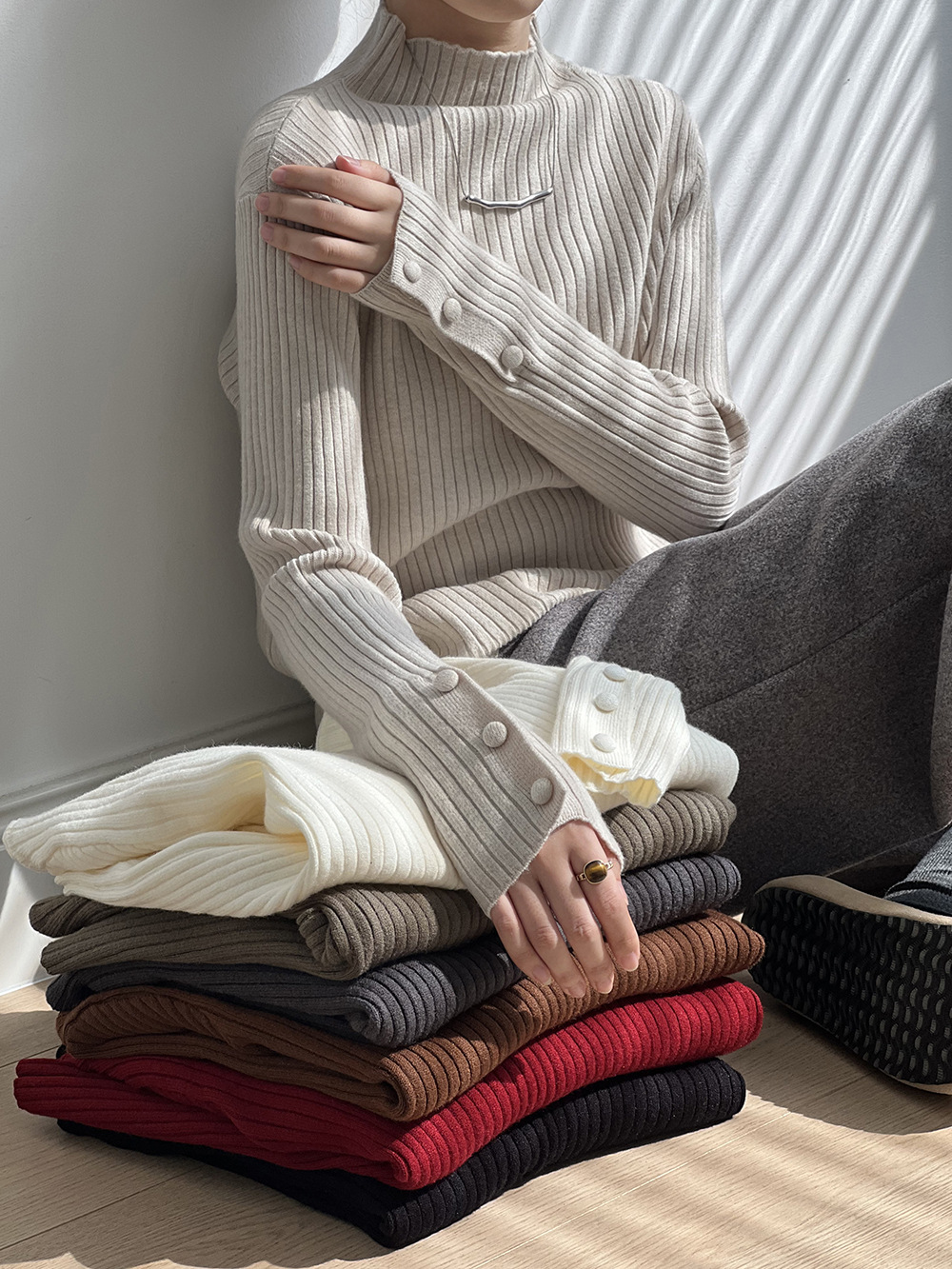 【YP1109】實拍半高領軟糯寬鬆針織衫YY25早春