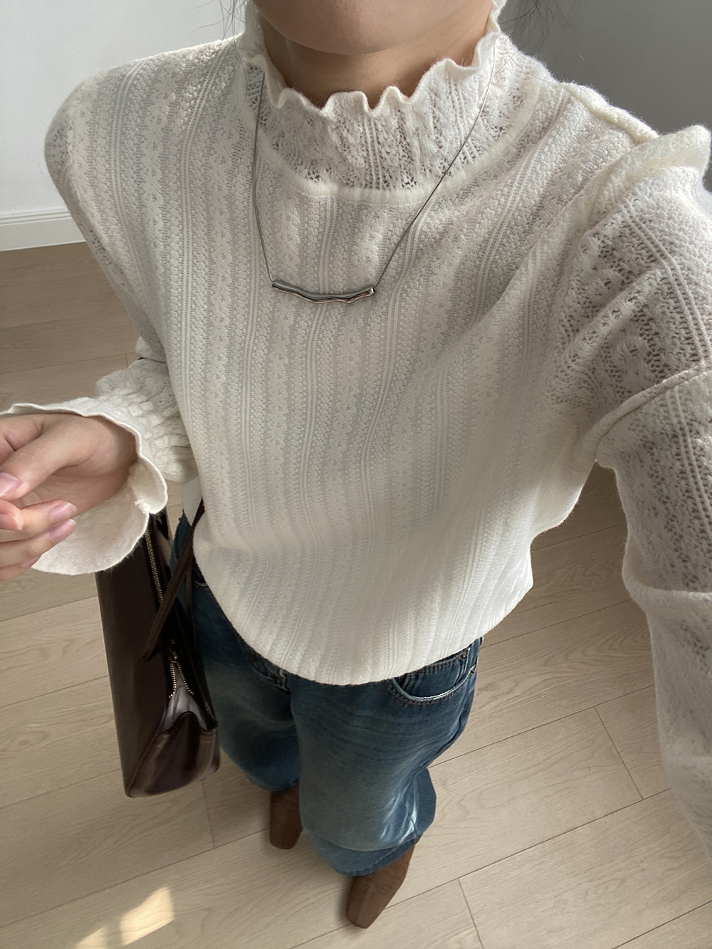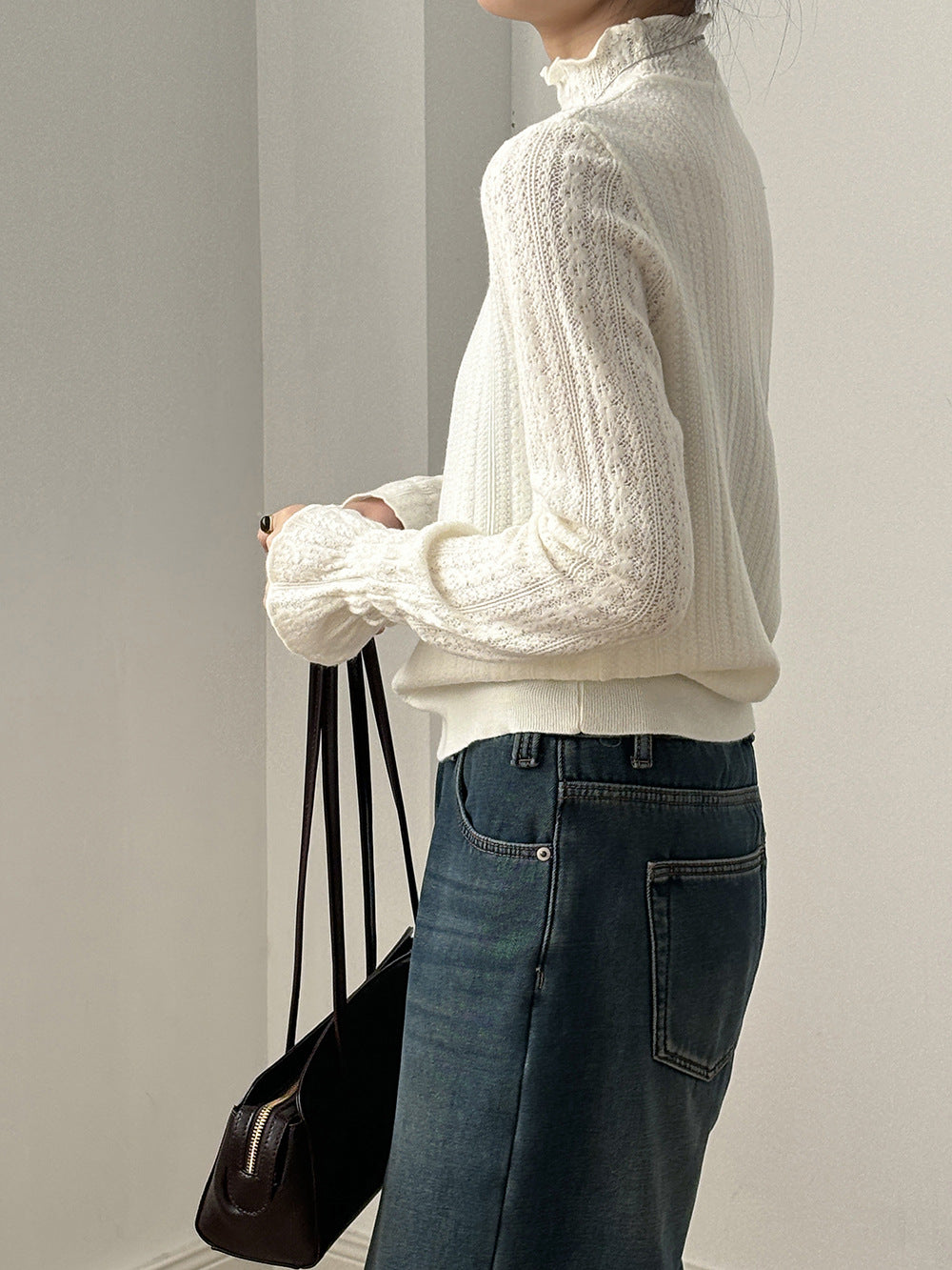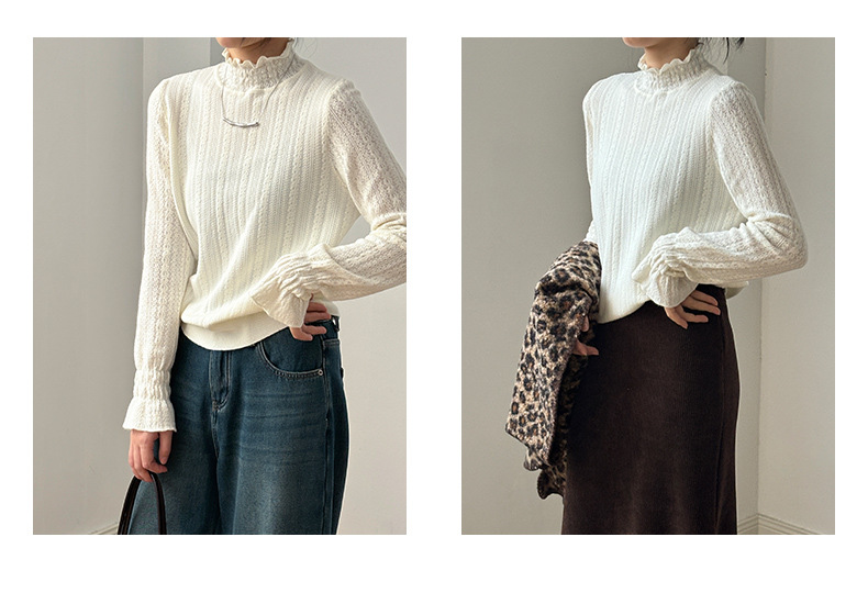 【YP1670】實拍半高領高級感蕾絲針織上衣241211