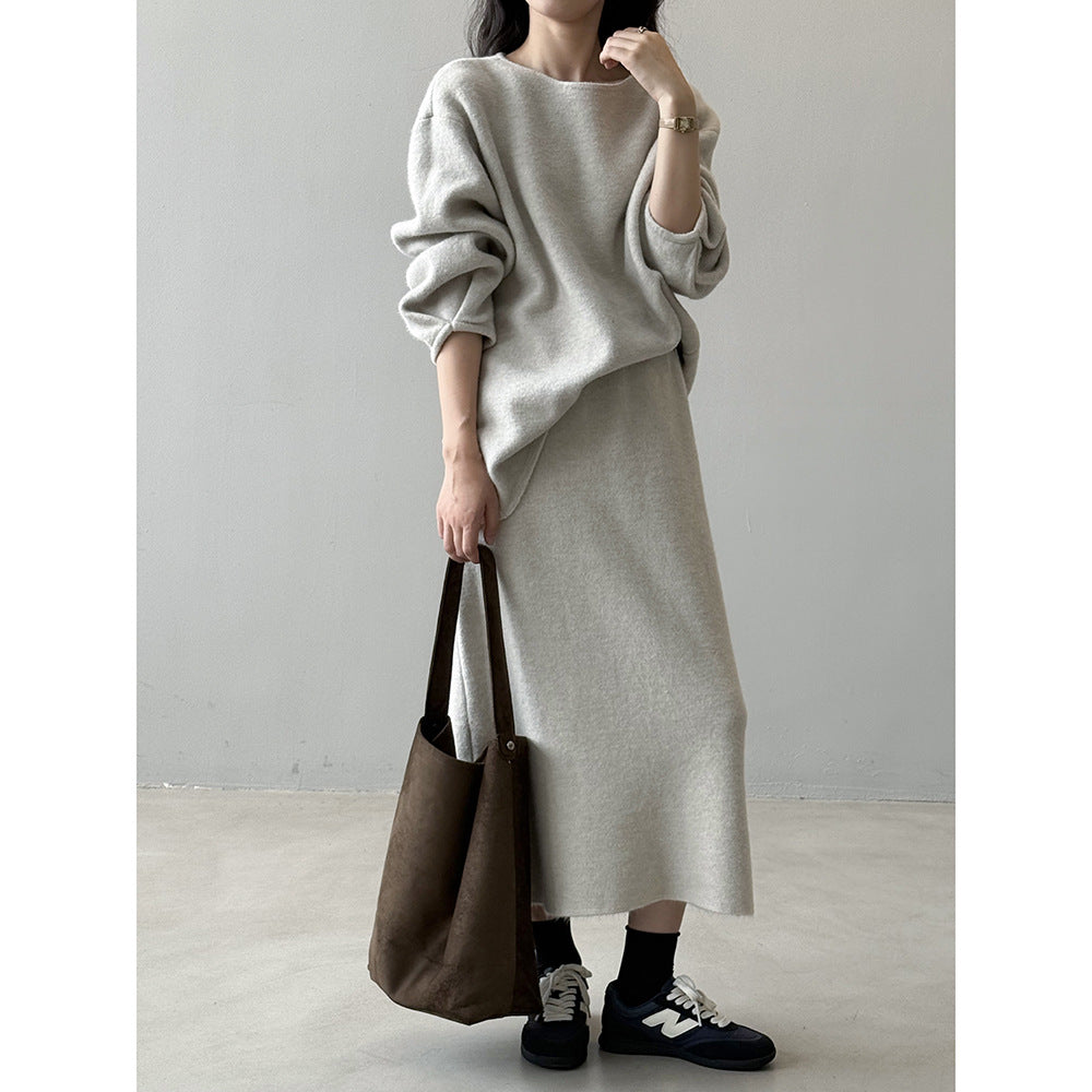 【YP220】實拍簡約針織毛衣+直筒針織裙250918