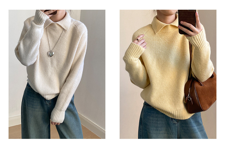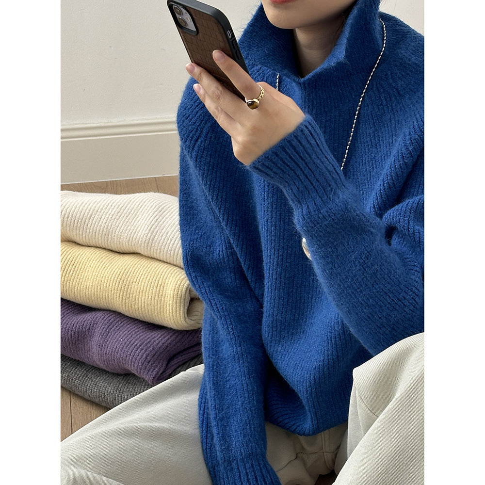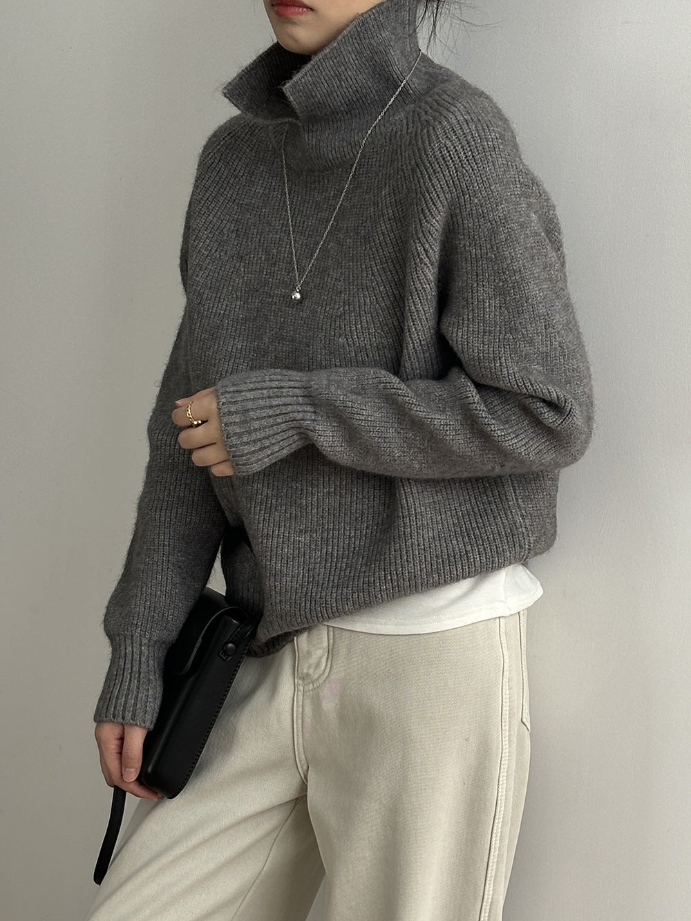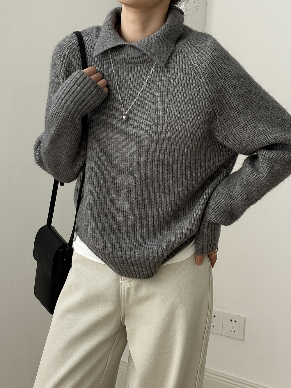 【YP2437】實拍復古高翻領個性針織毛衣241211