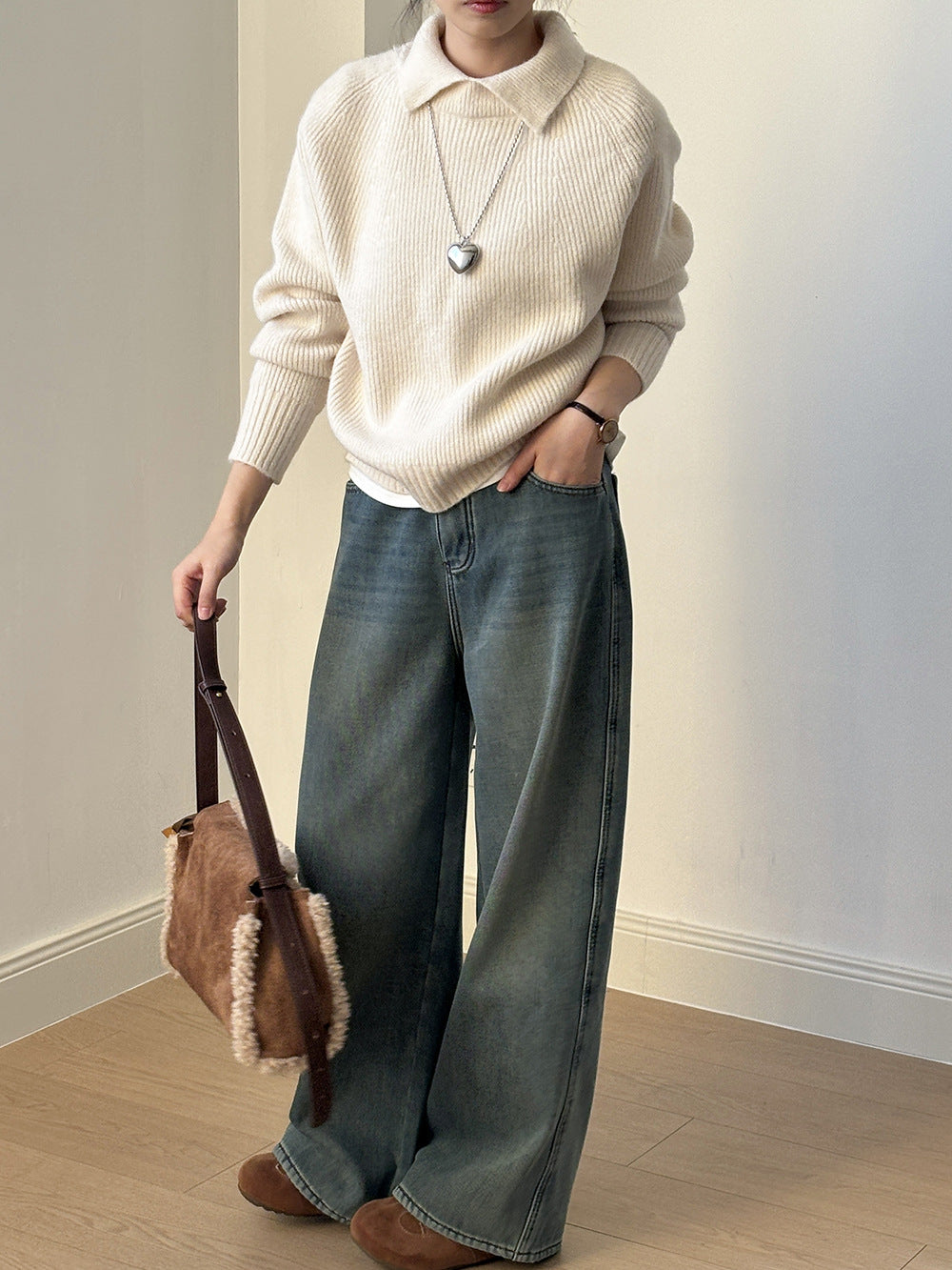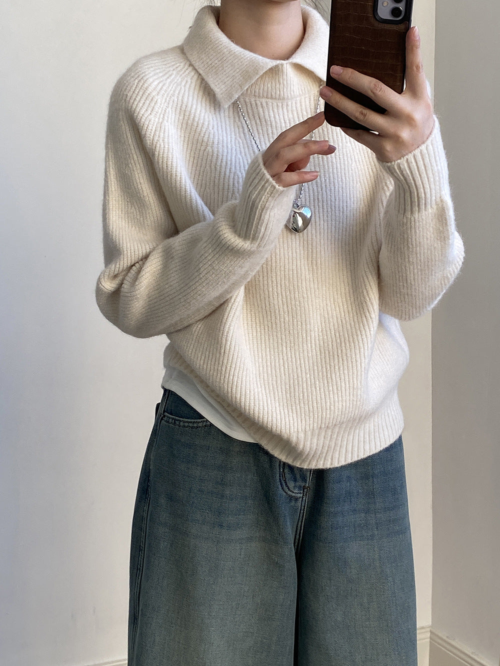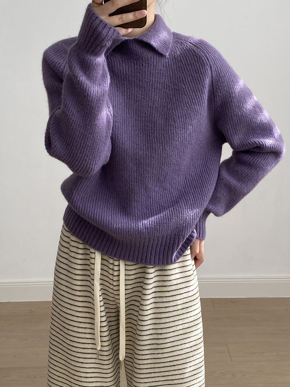 【YP2437】實拍復古高翻領個性針織毛衣241211