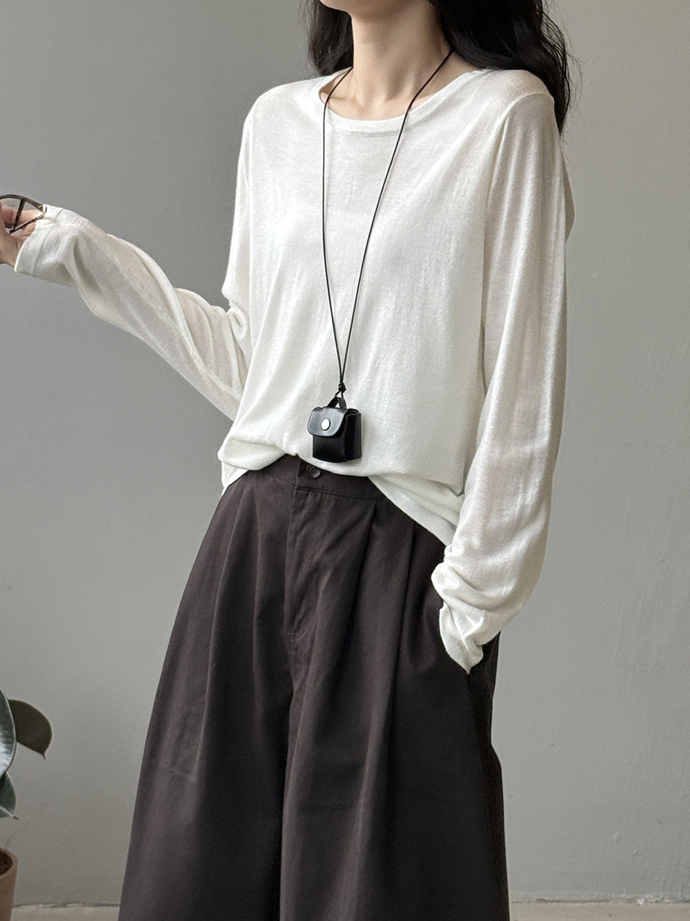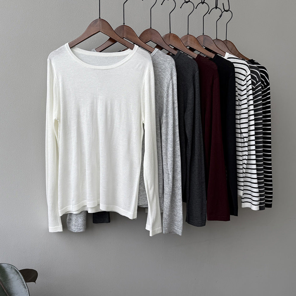【YP2506】實拍韓系薄款多色圓領T恤(羊毛6%)250828