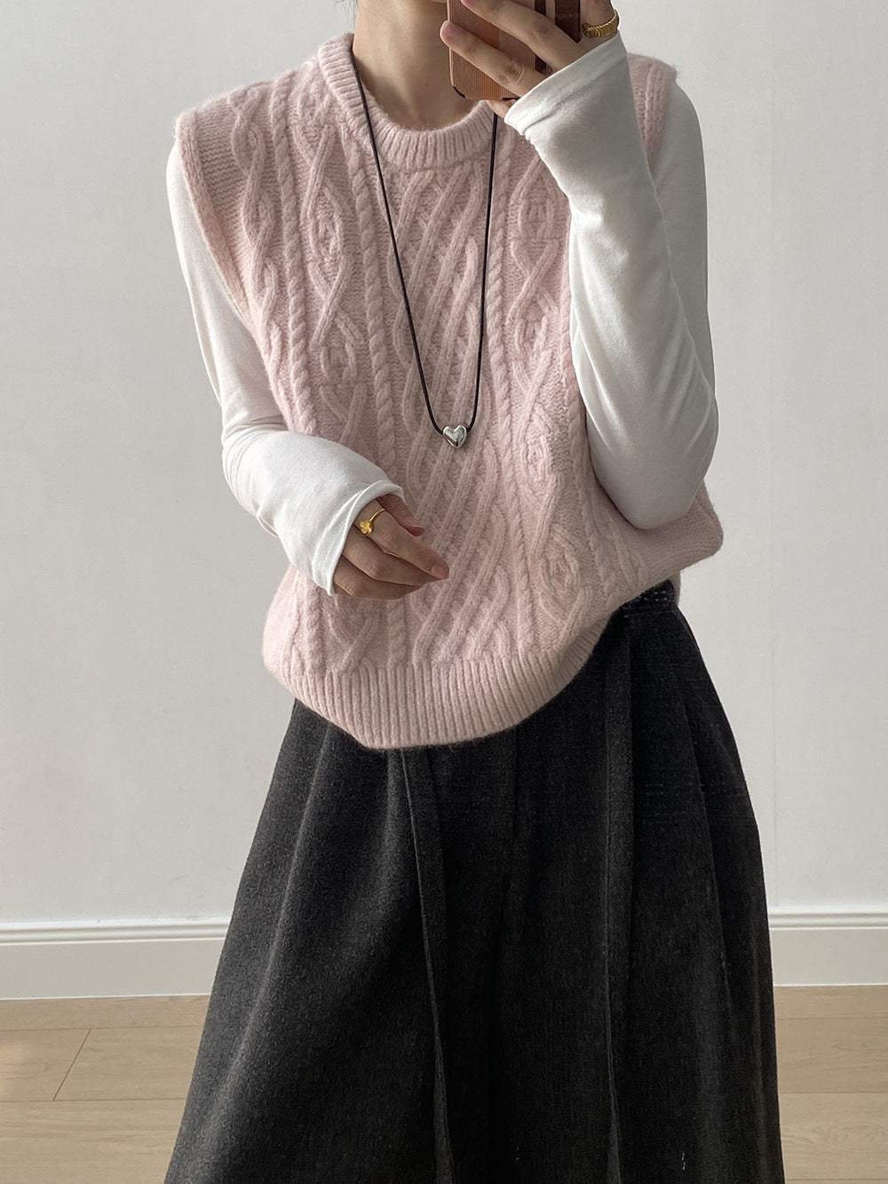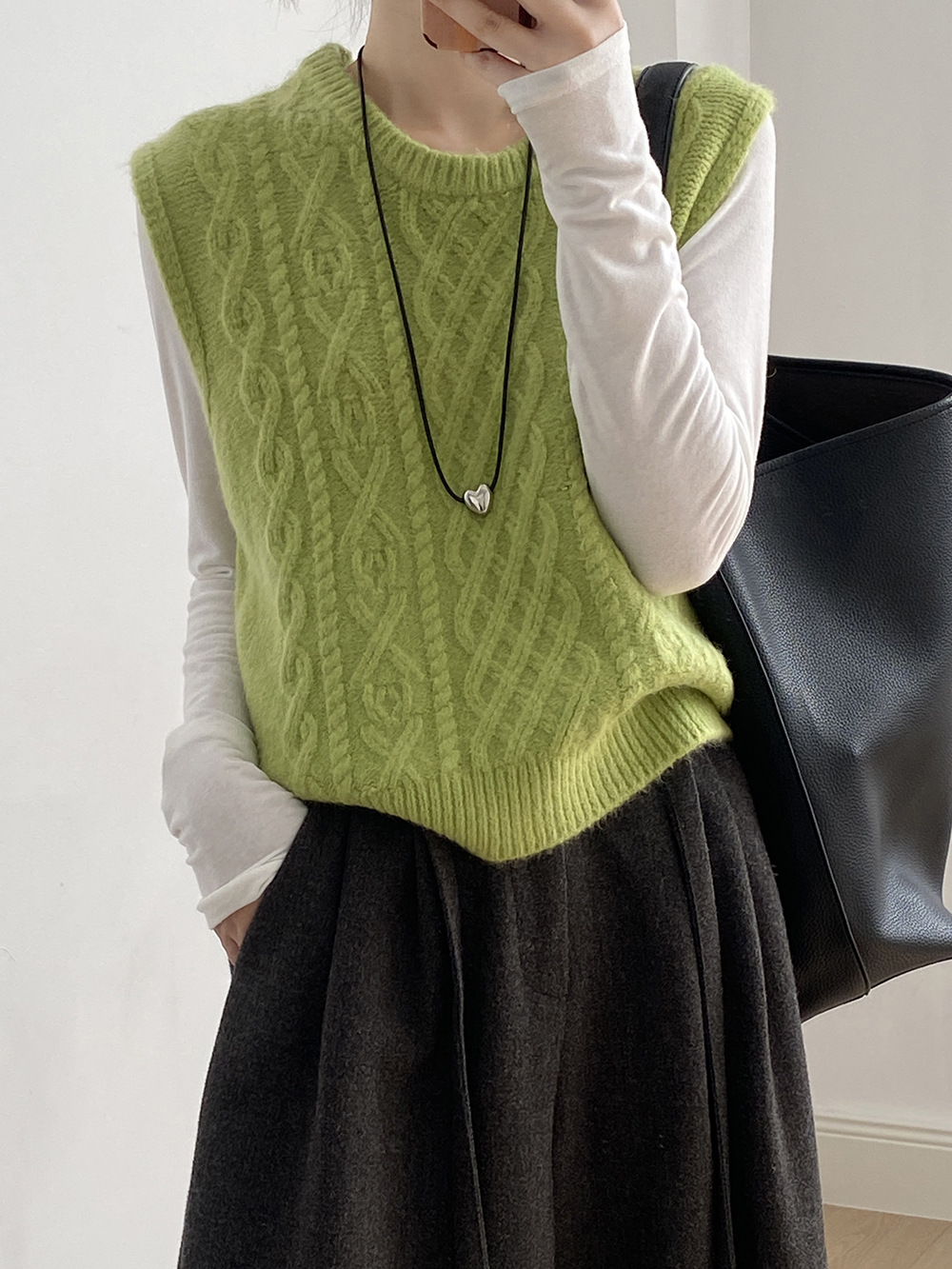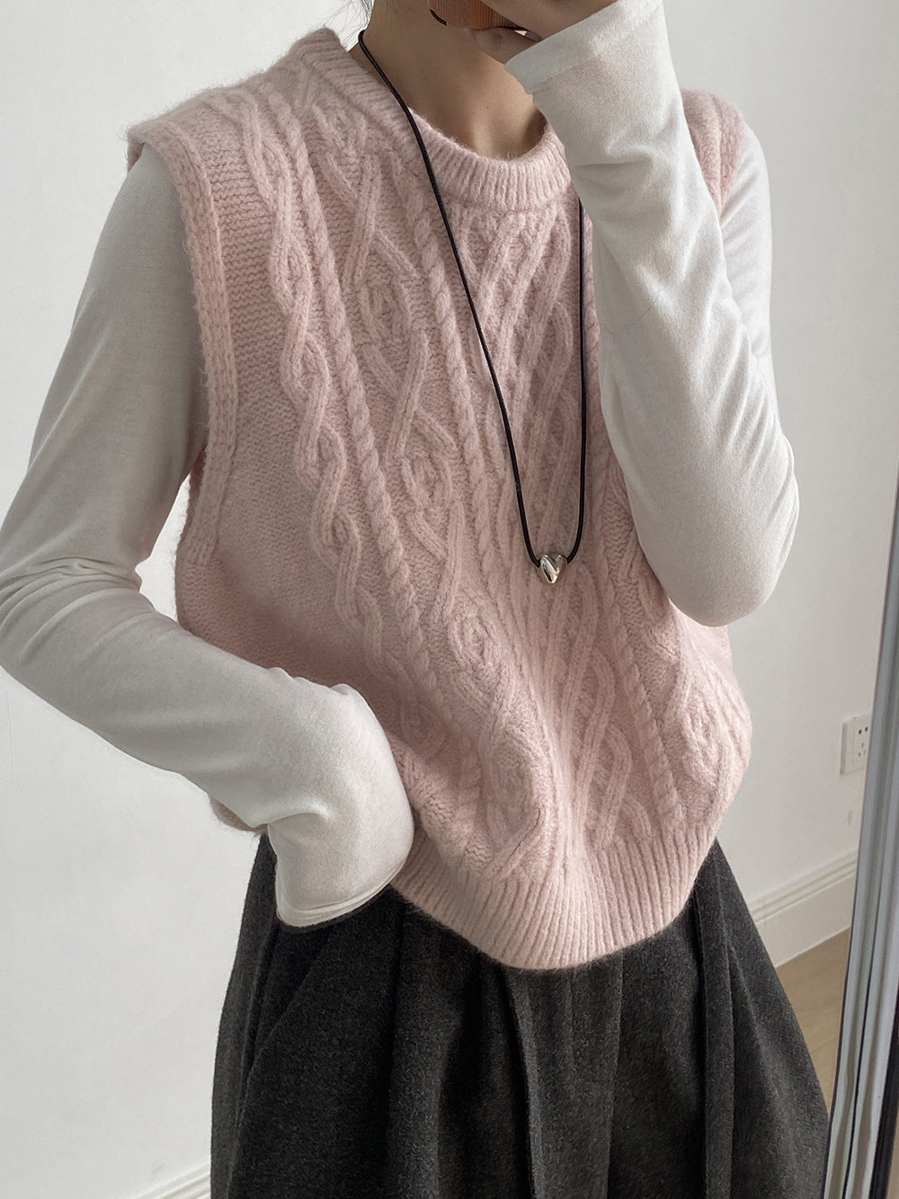 【YP2617】 實拍圓領麻花軟糯針織背心251023