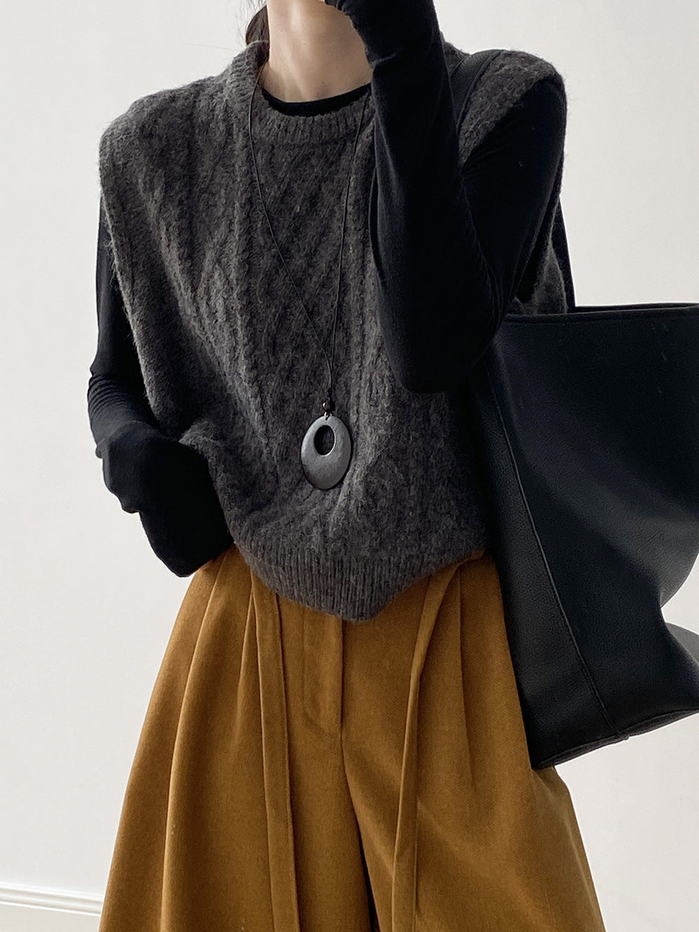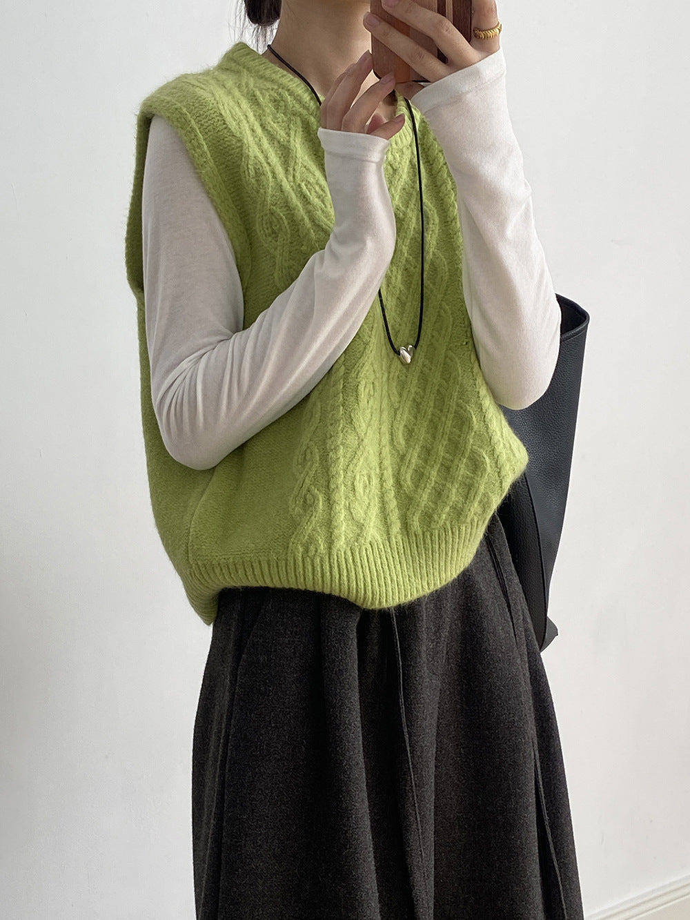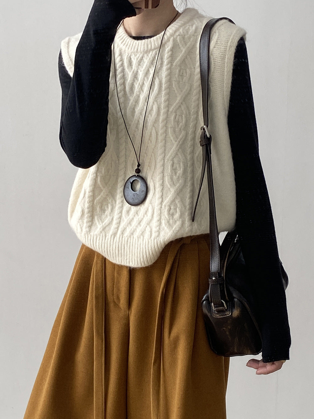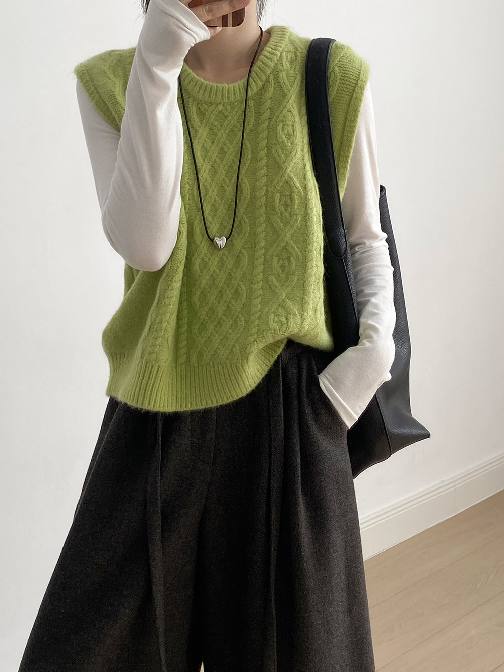 【YP2617】 實拍圓領麻花軟糯針織背心251023