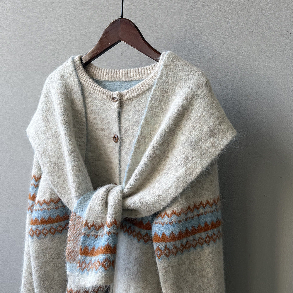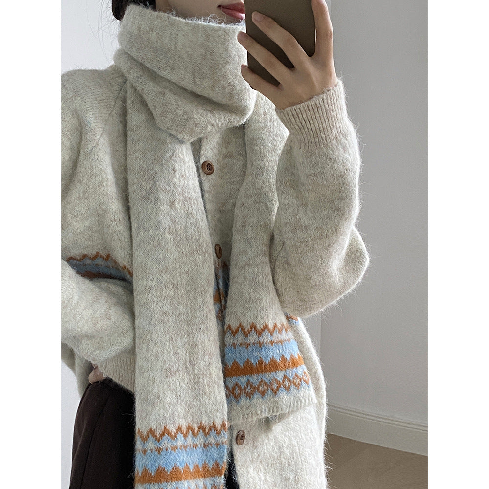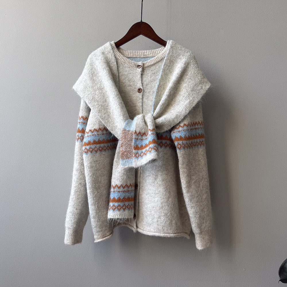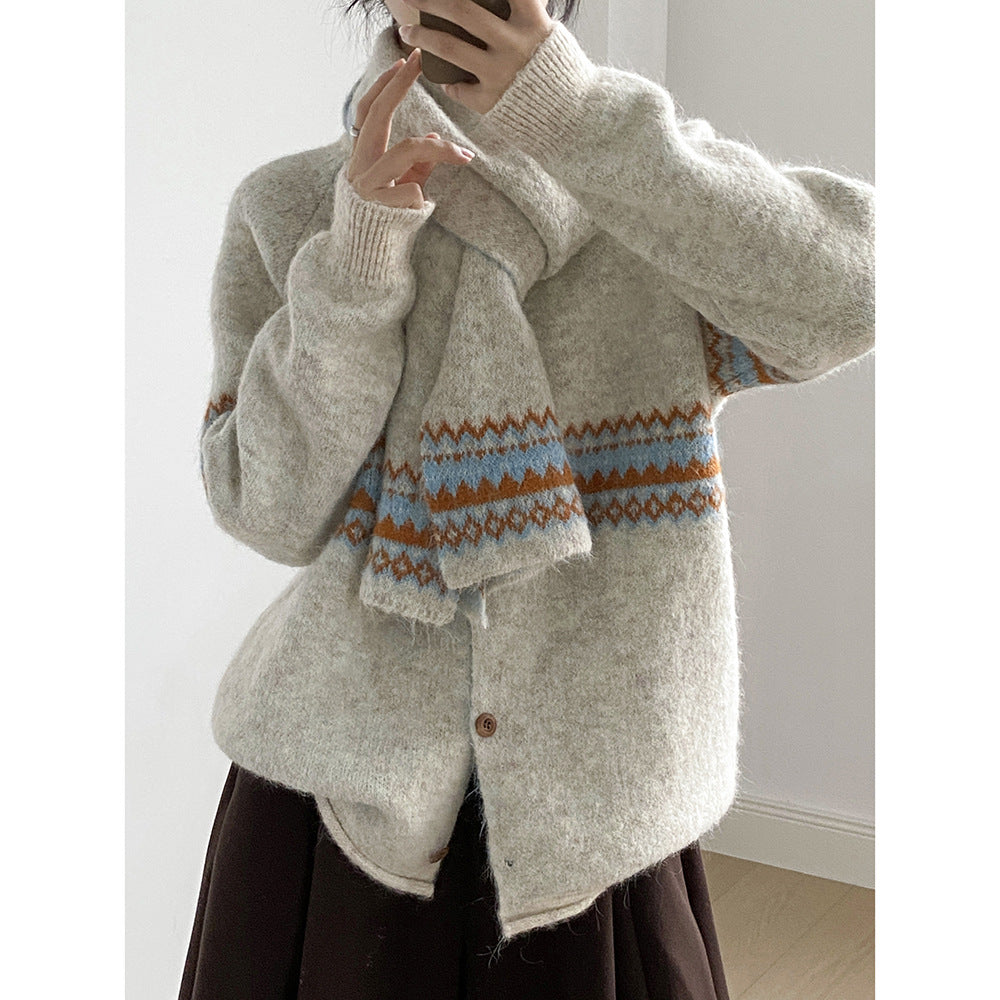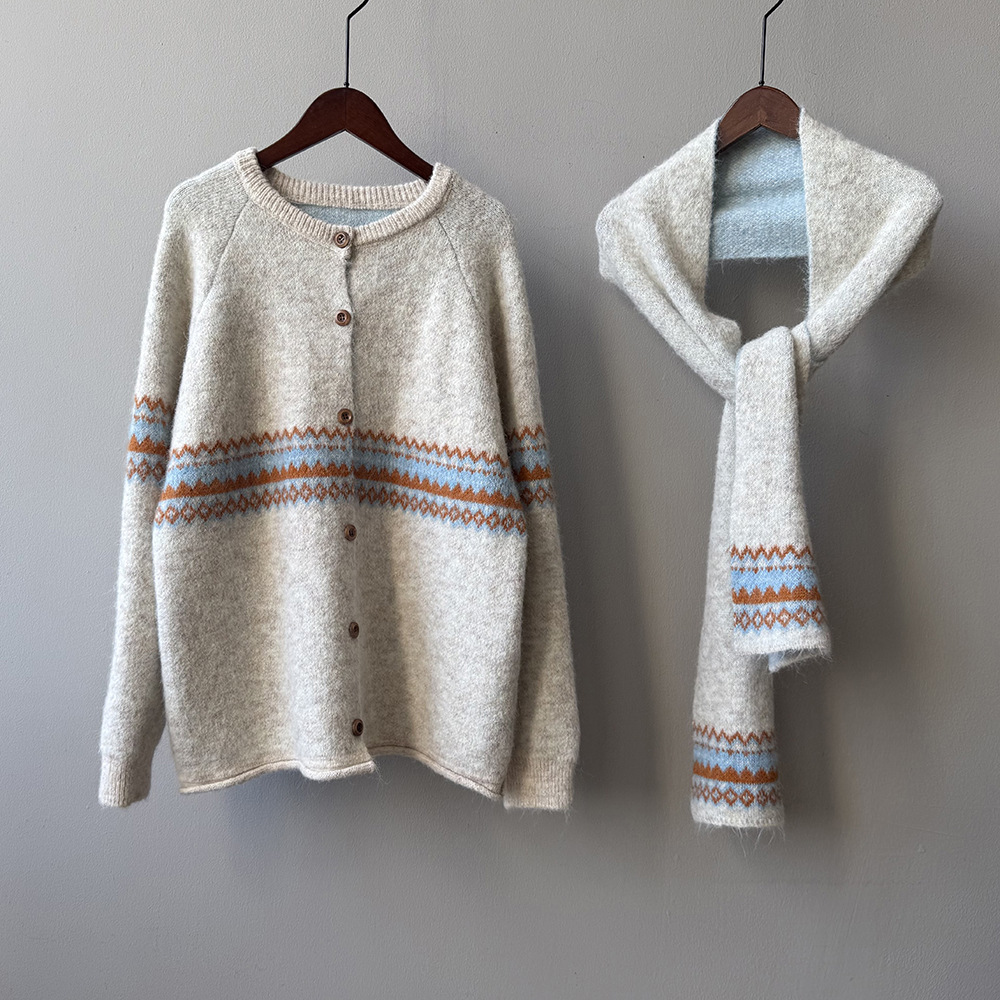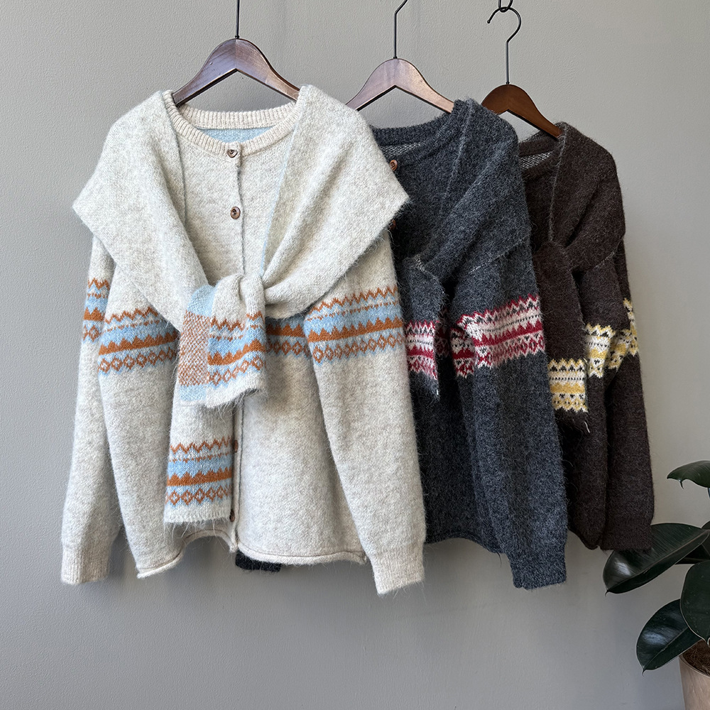 【YP6106】 實拍費爾島提花針織外套+圍巾(含羊毛3%) 251023