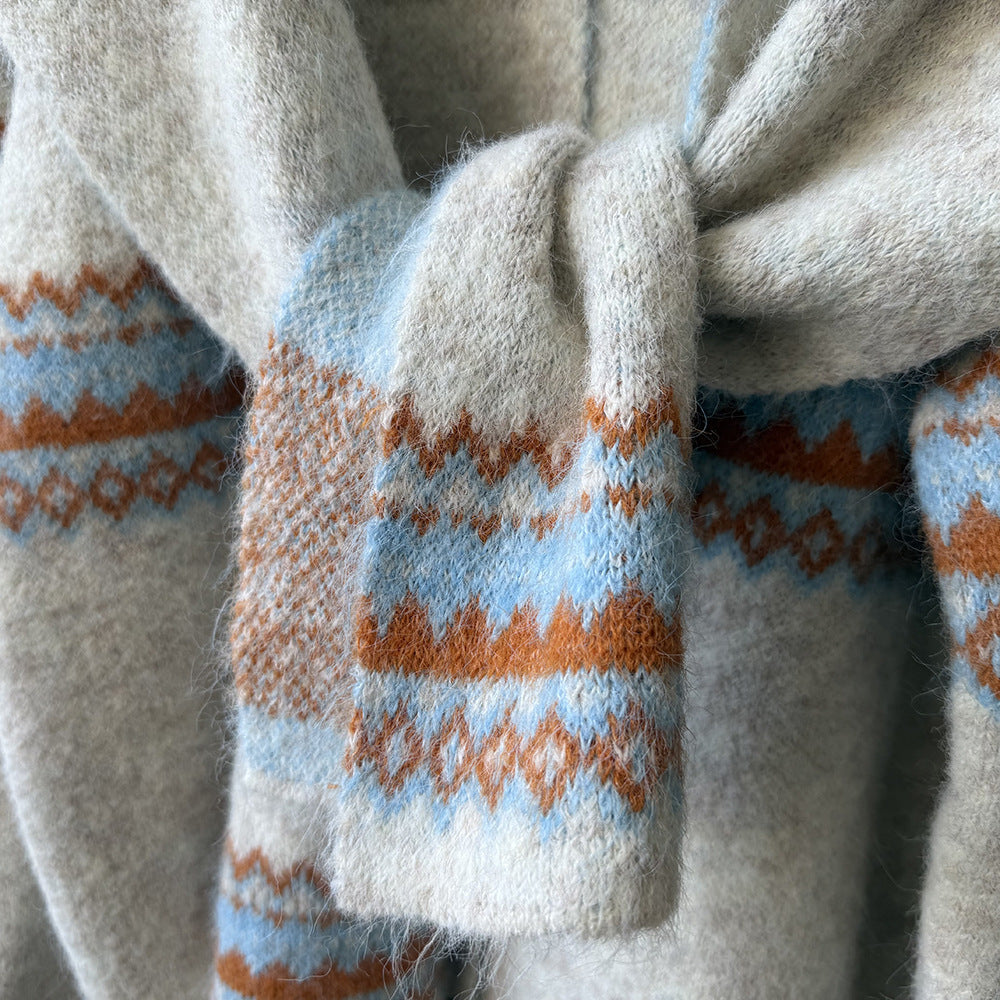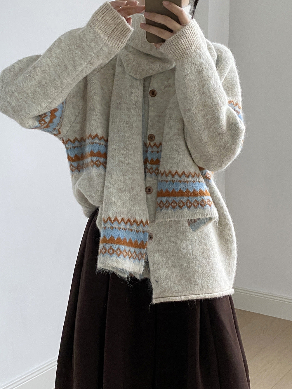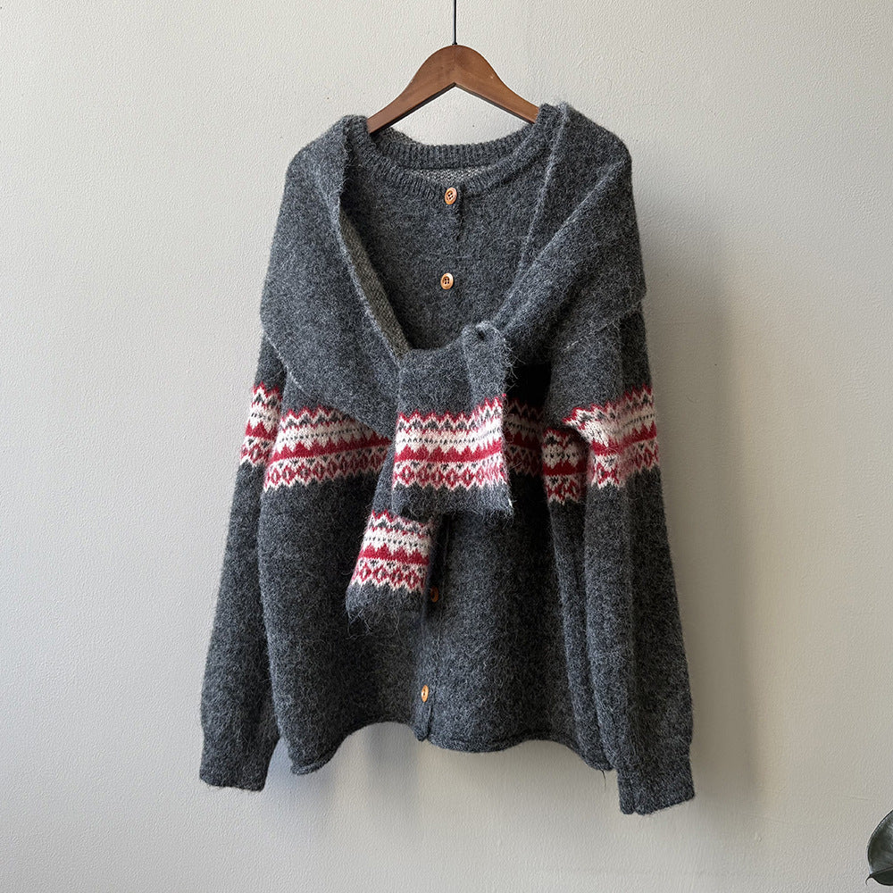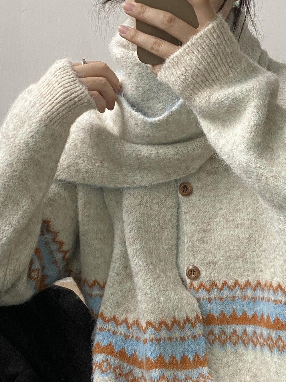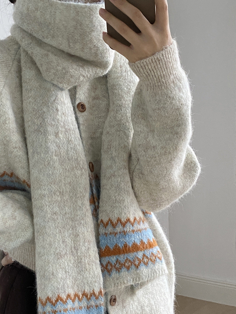 【YP6106】 實拍費爾島提花針織外套+圍巾(含羊毛3%) 251023