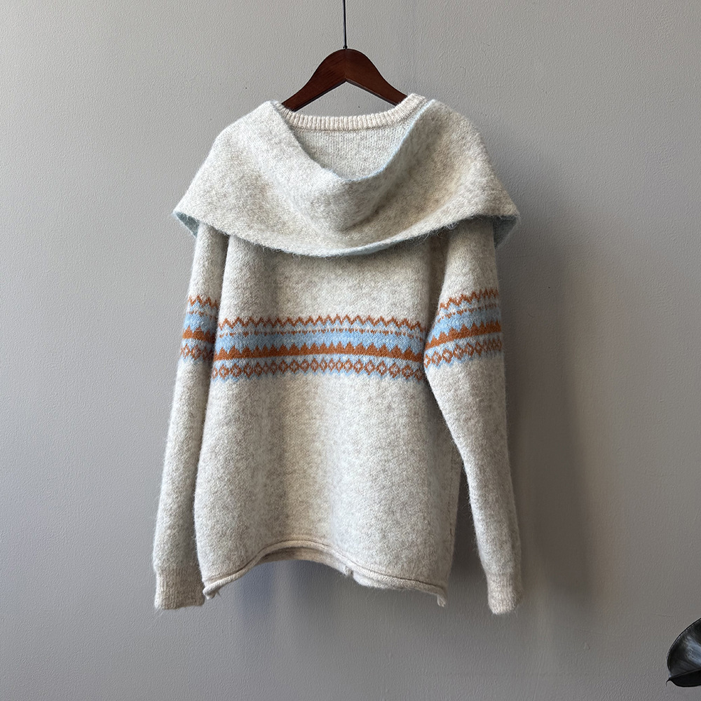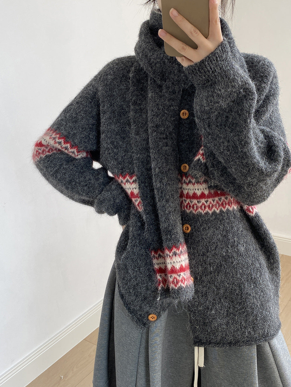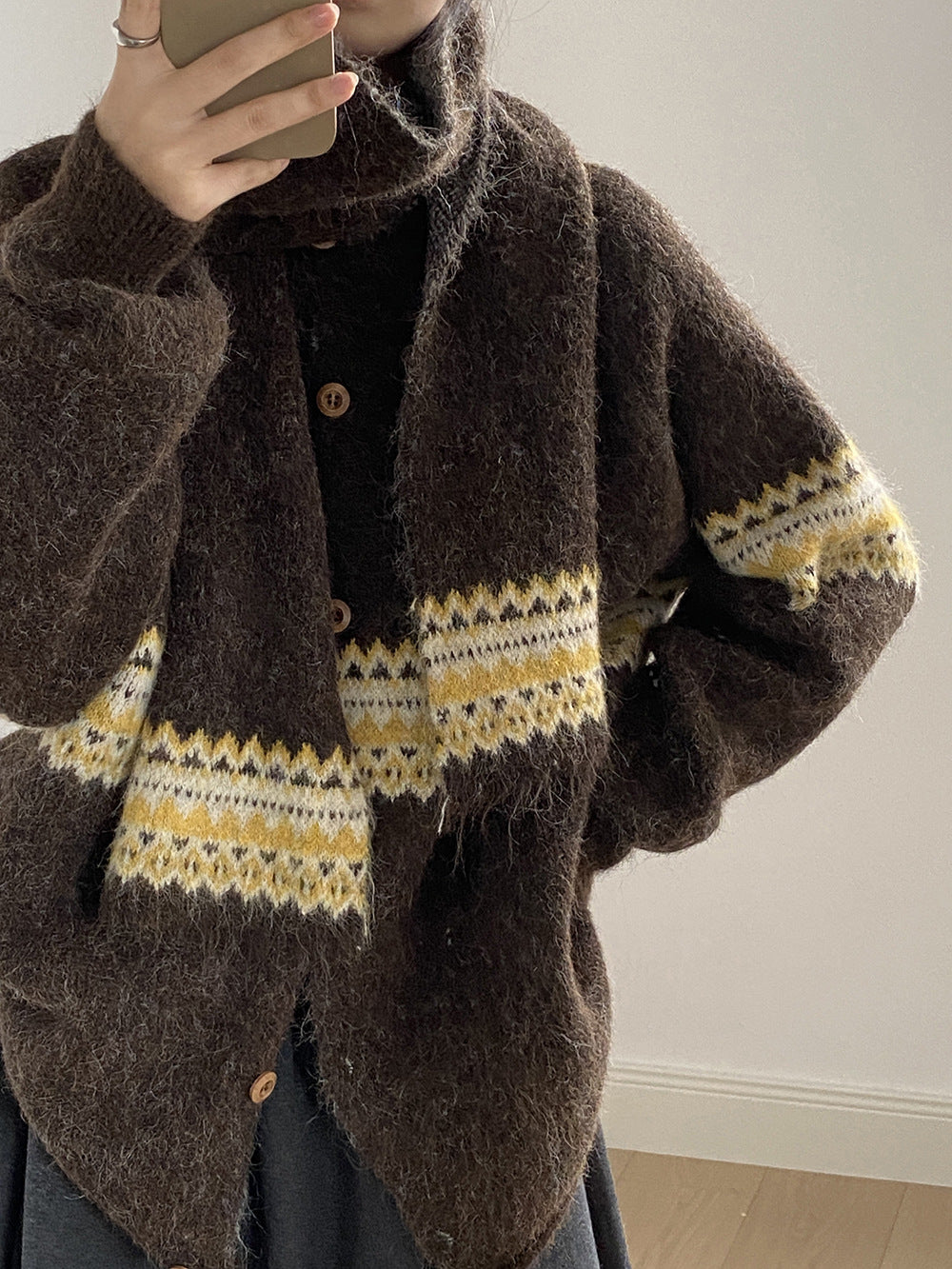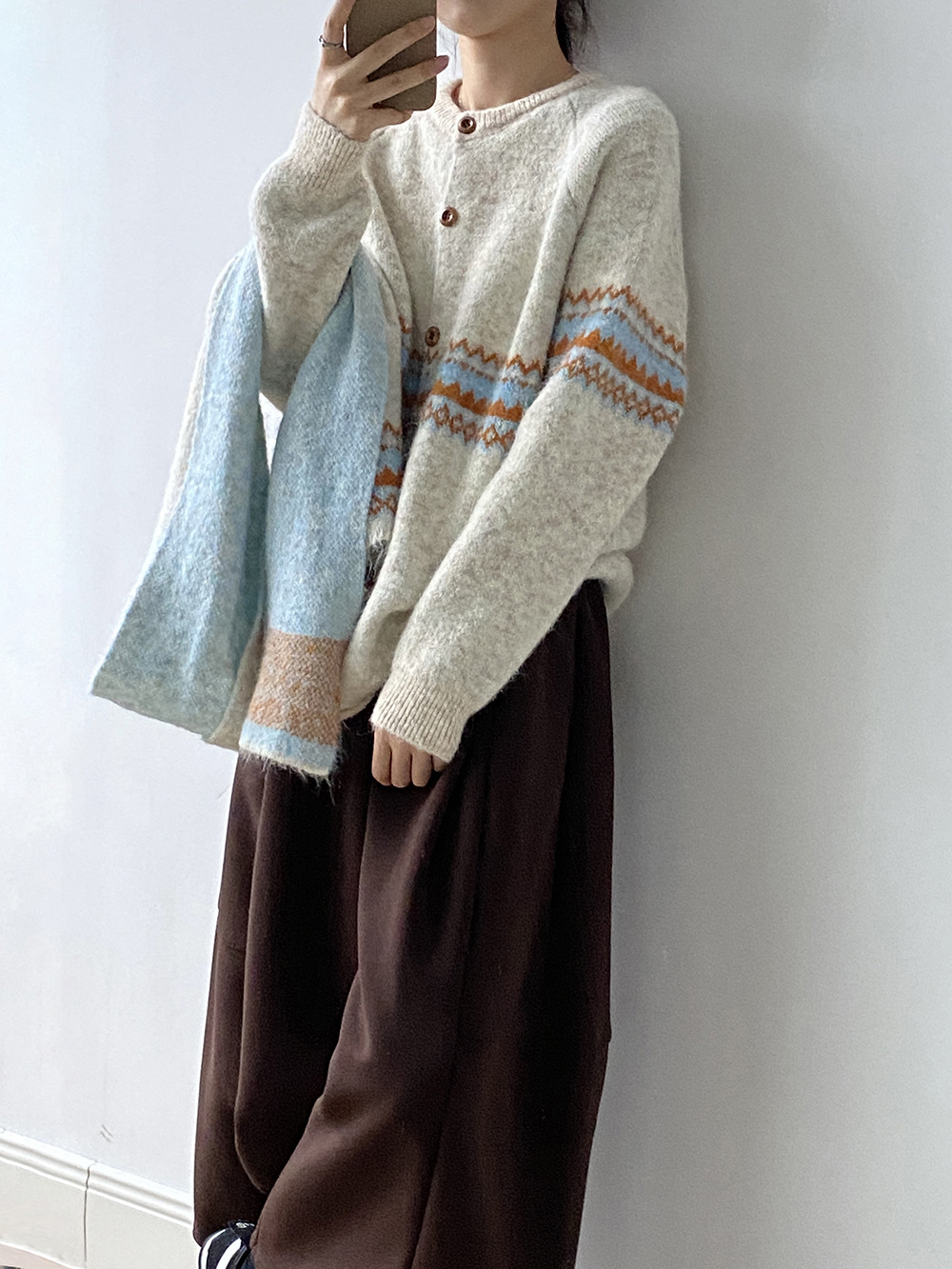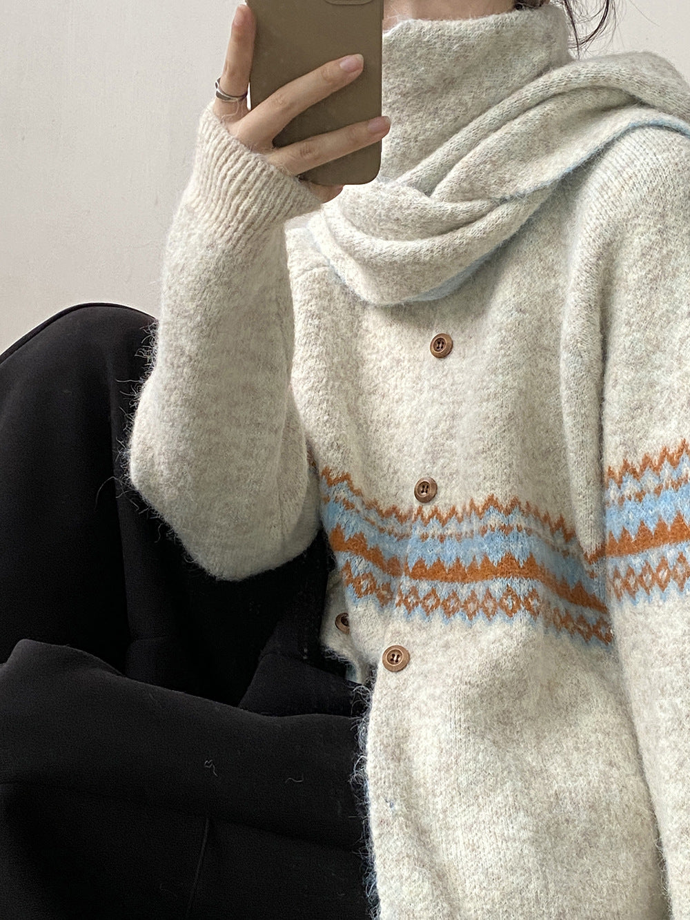 【YP6106】 實拍費爾島提花針織外套+圍巾(含羊毛3%) 251023