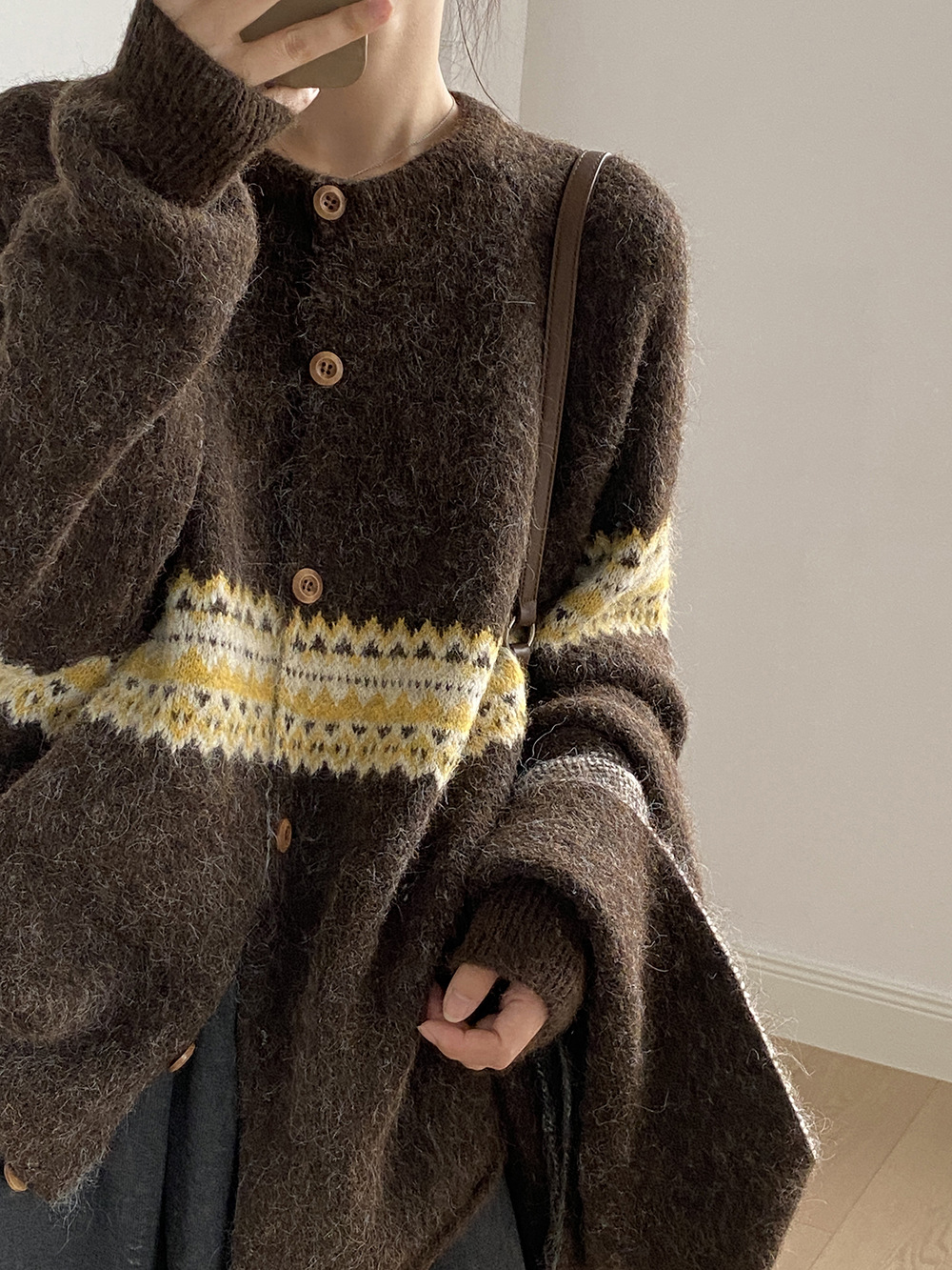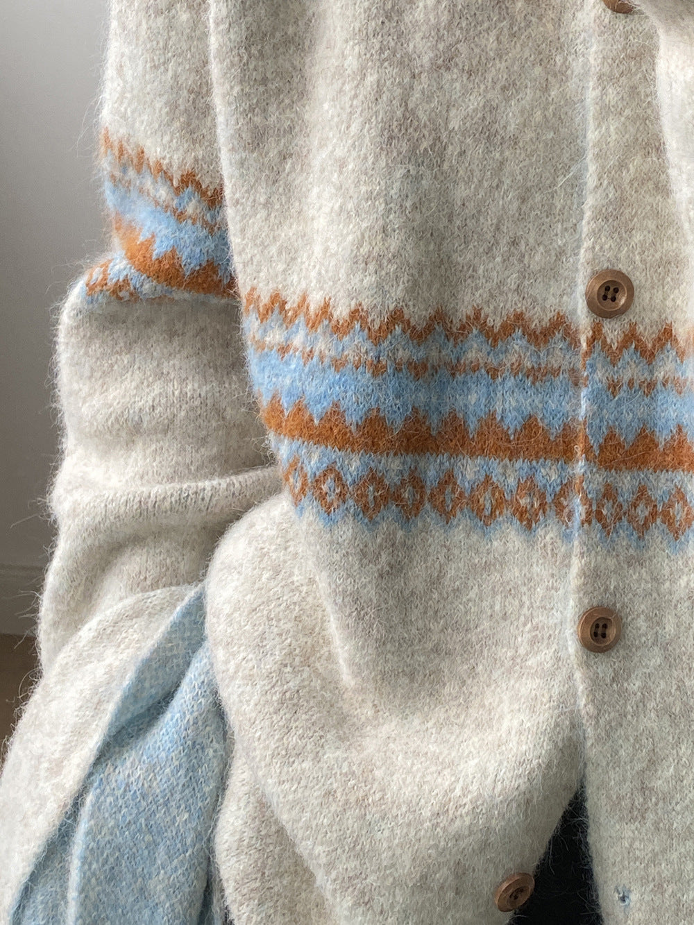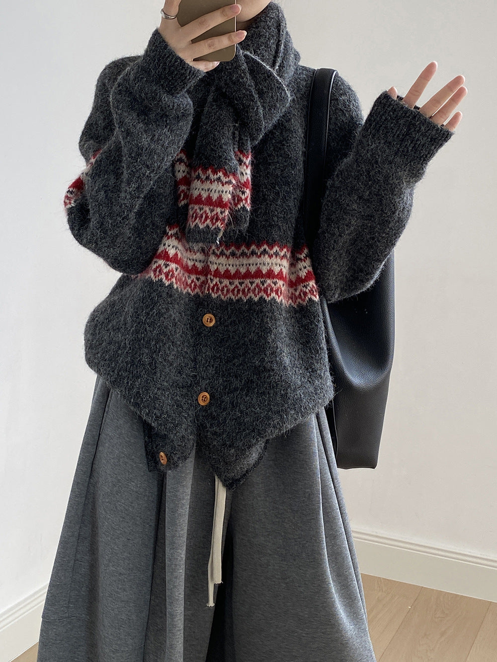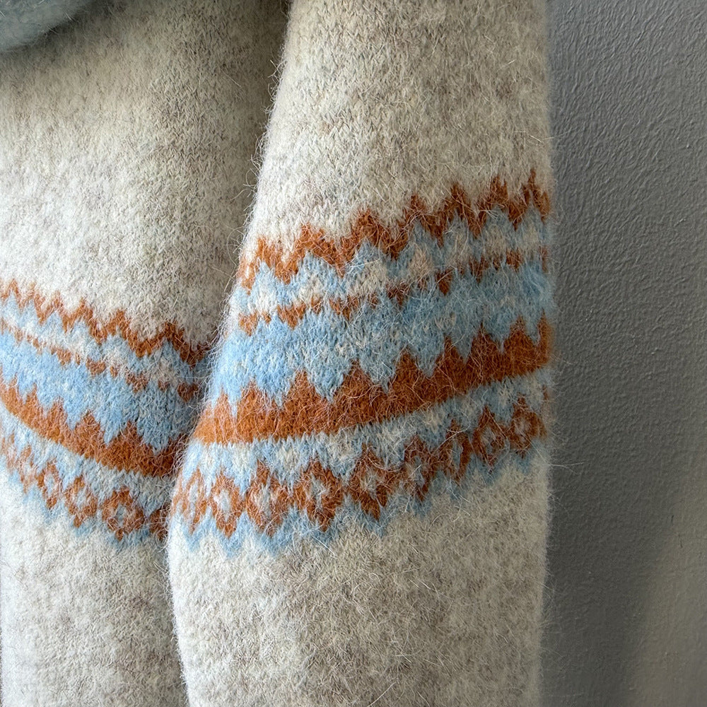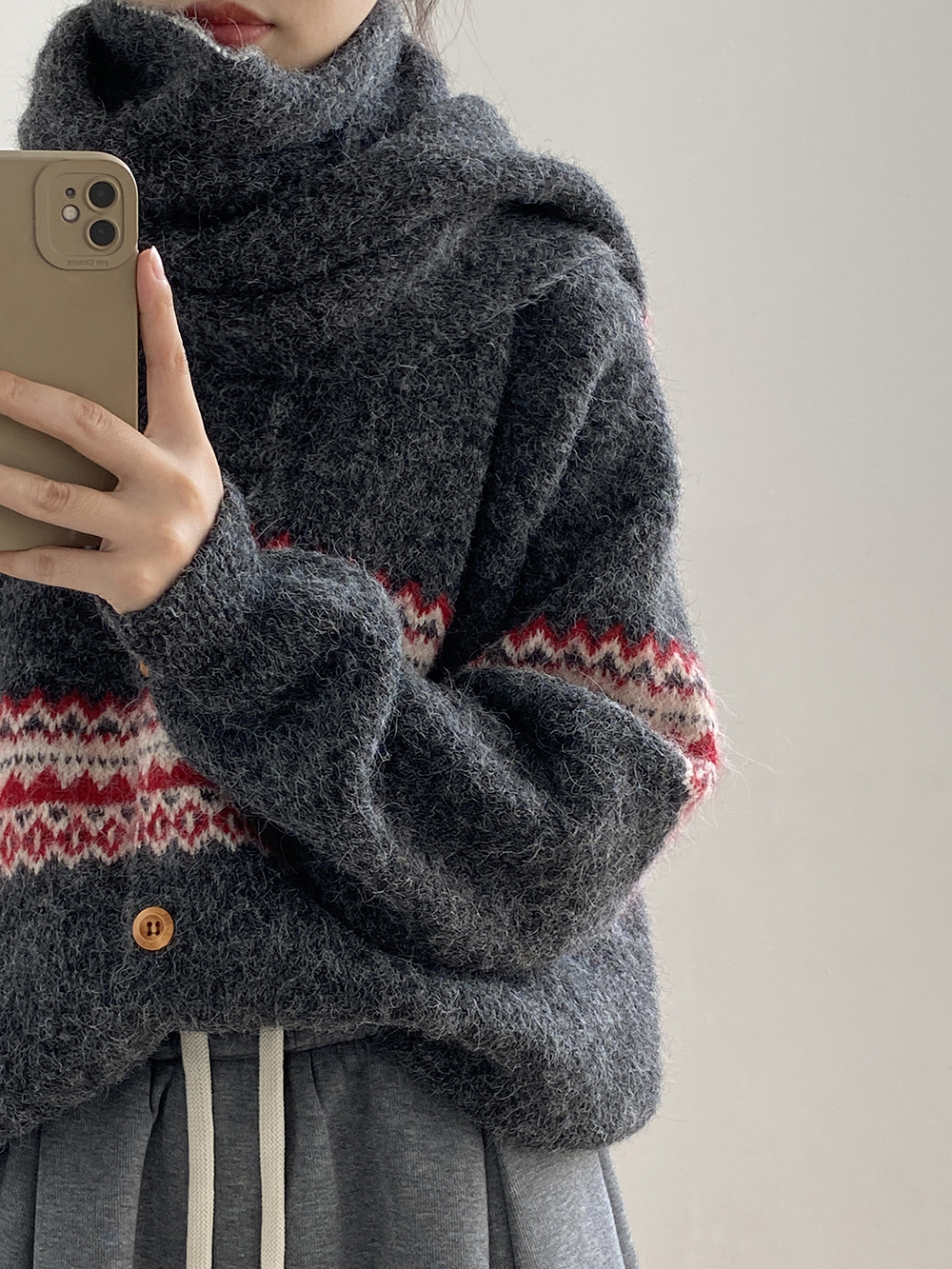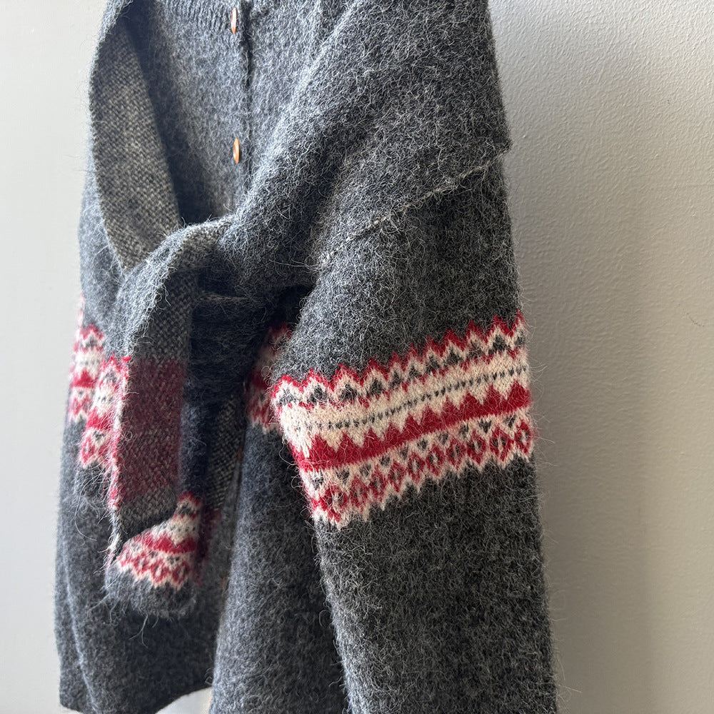 【YP6106】 實拍費爾島提花針織外套+圍巾(含羊毛3%) 251023
