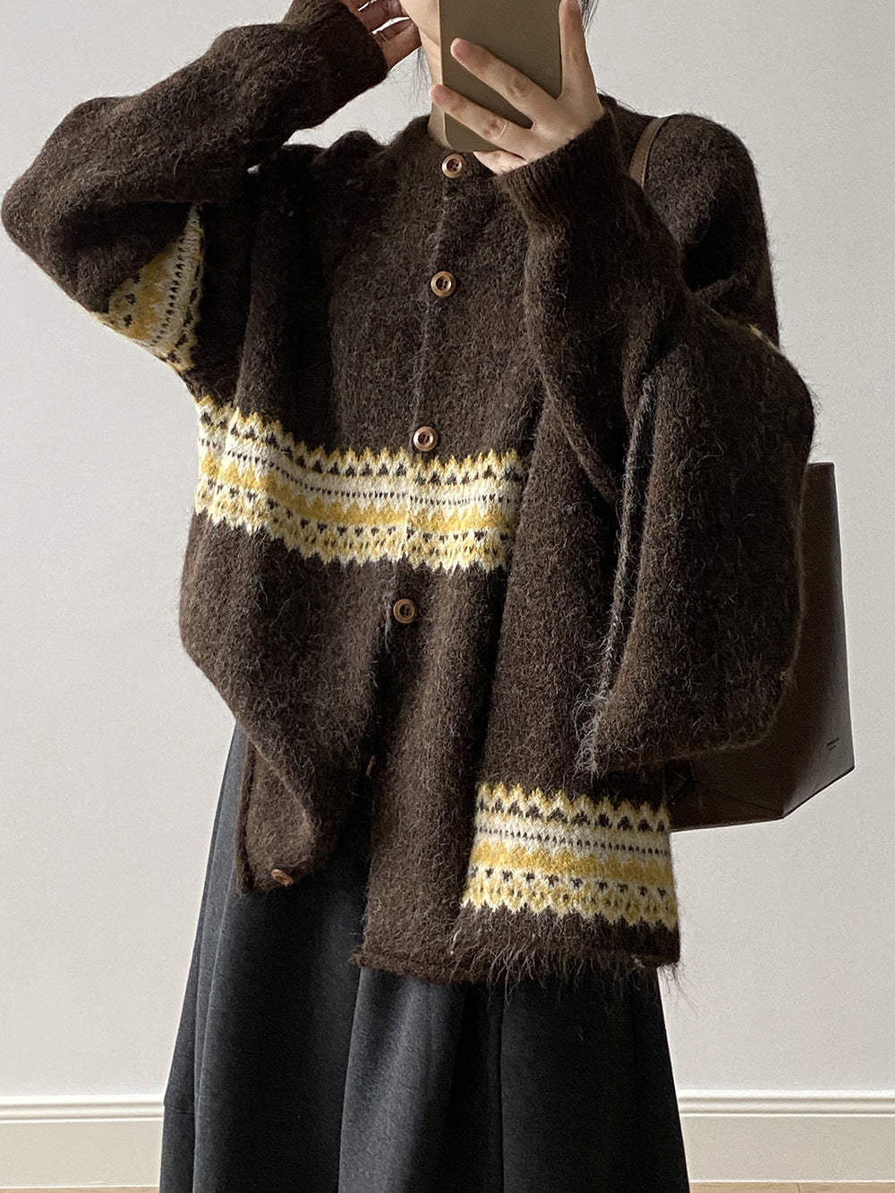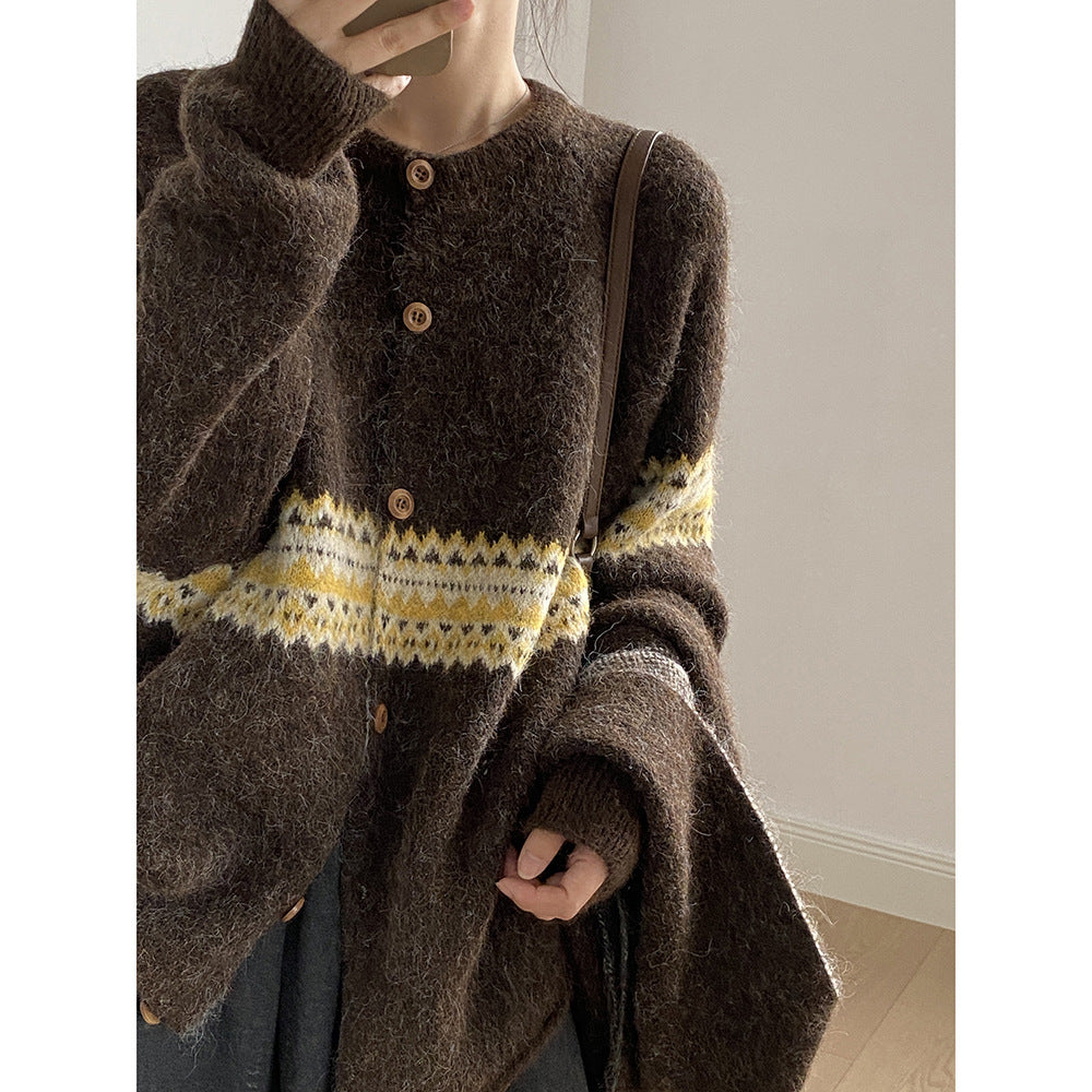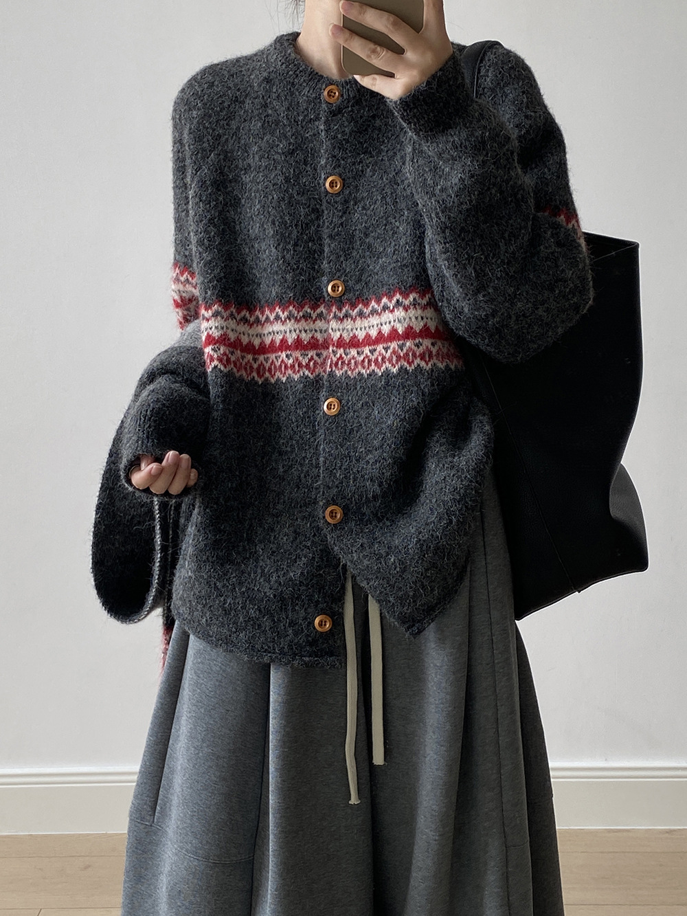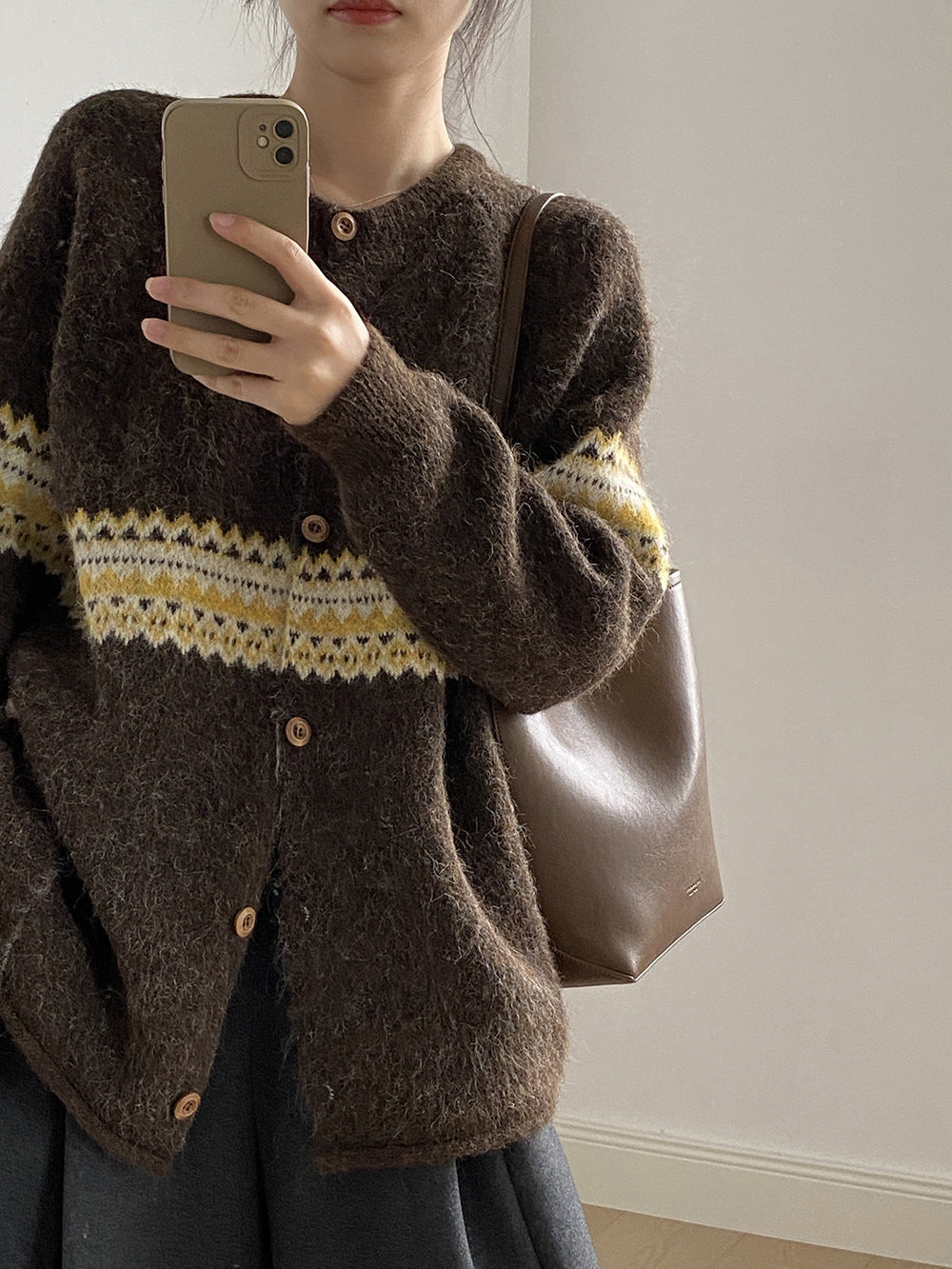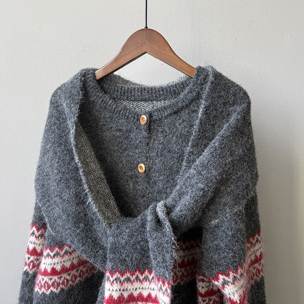 【YP6106】 實拍費爾島提花針織外套+圍巾(含羊毛3%) 251023