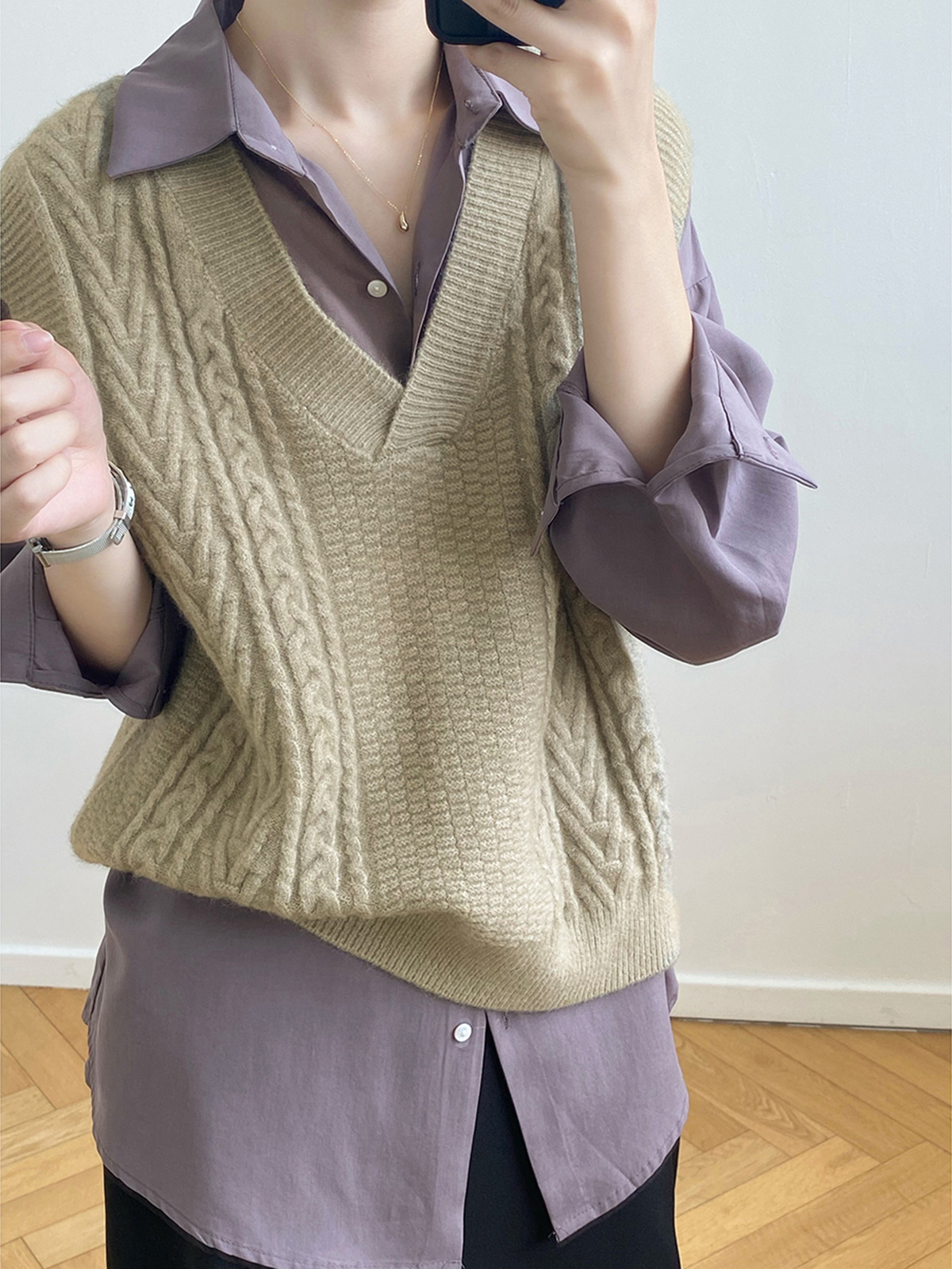 【YP6609】實拍韓國早春復古麻花針織背心YY25早春