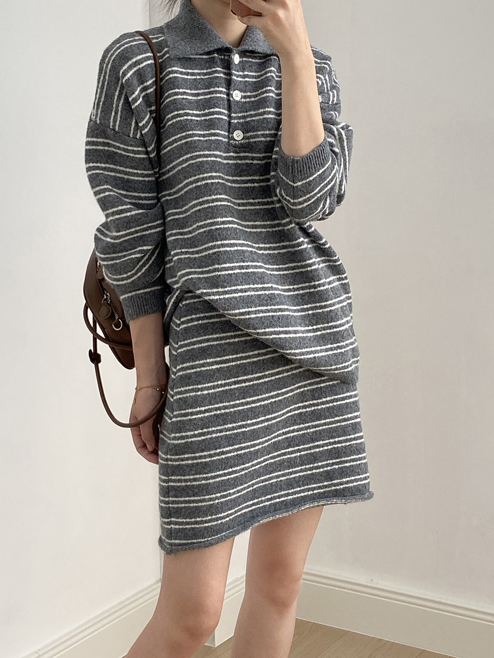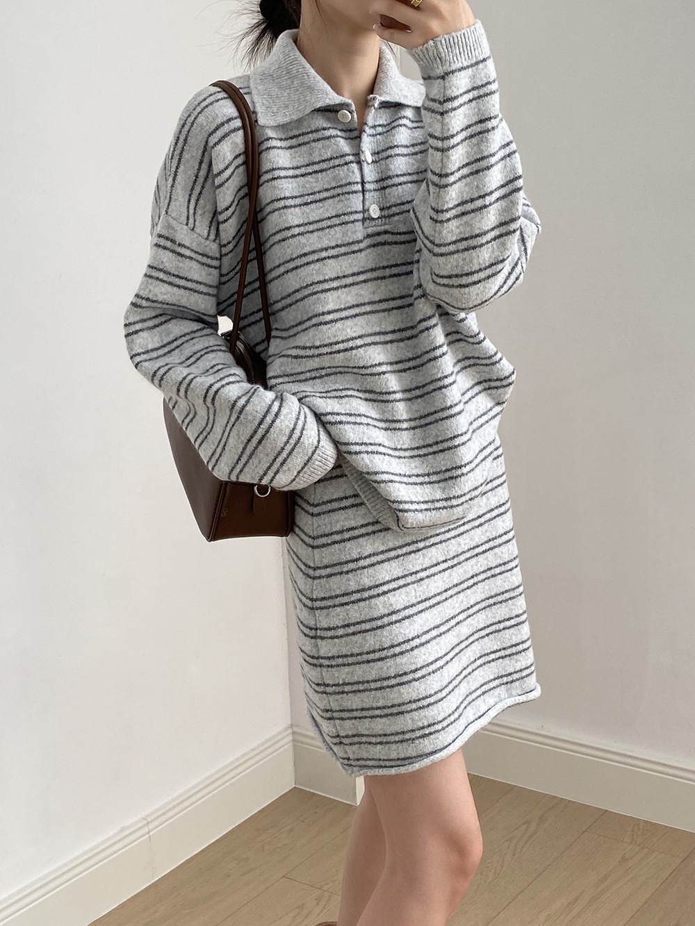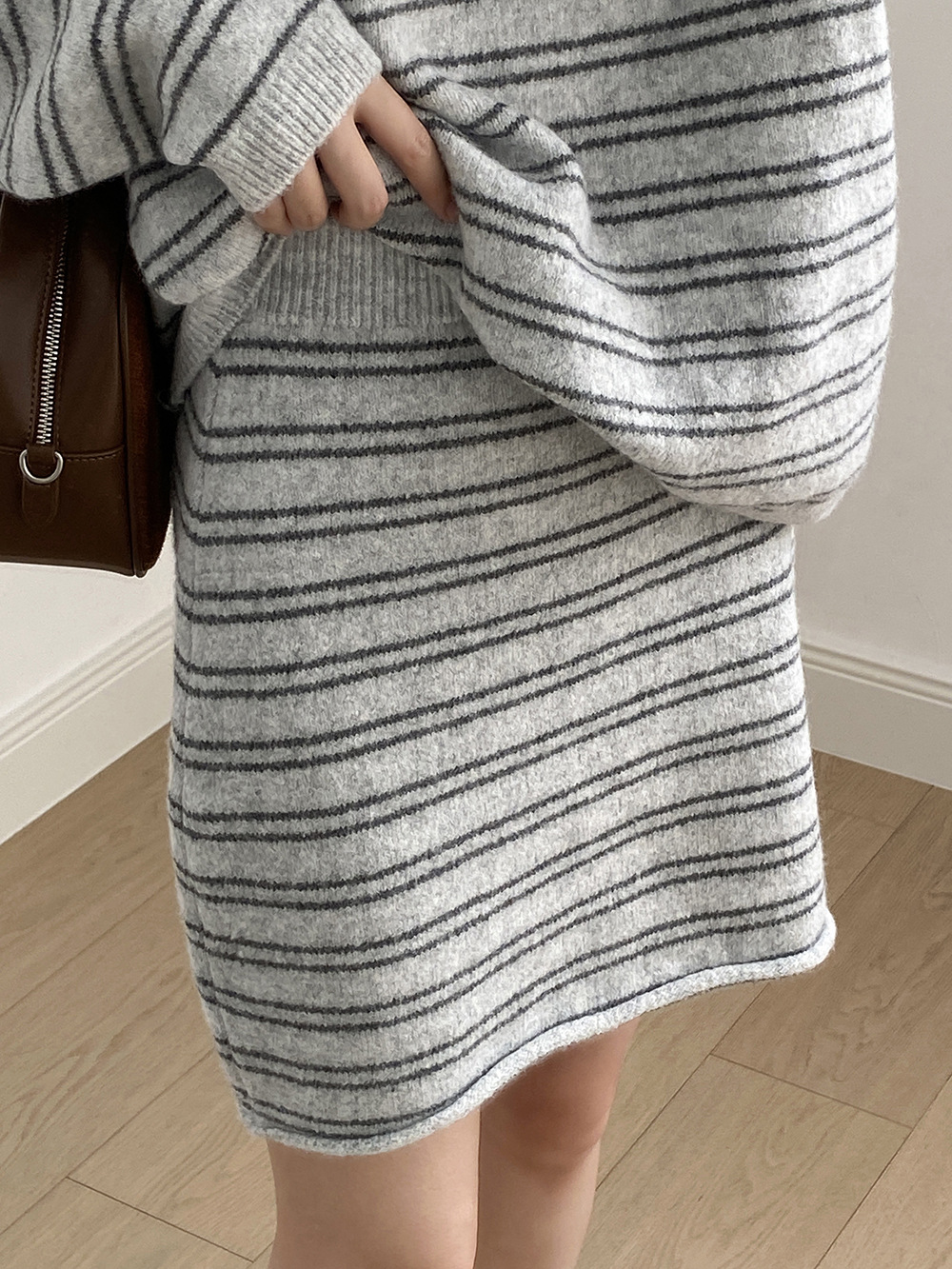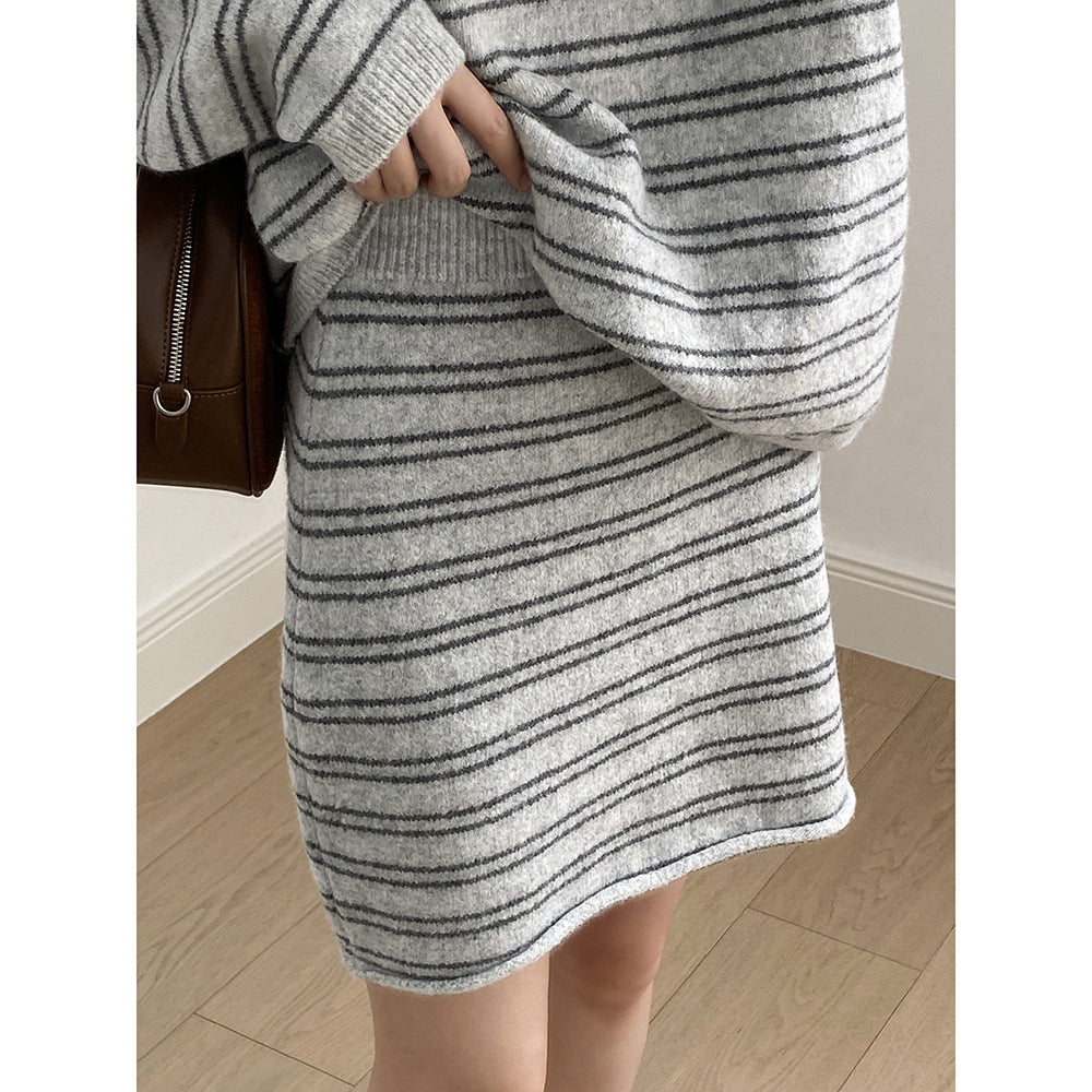 【YP6619】實拍復古條紋毛衣+針織短裙(含羊毛6%) 套裝251023