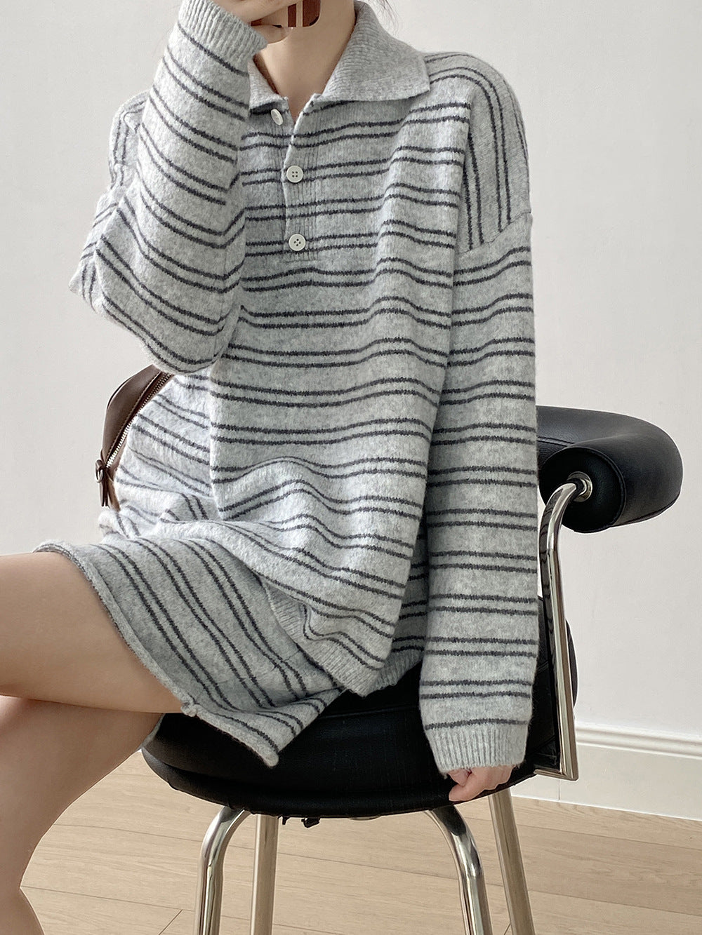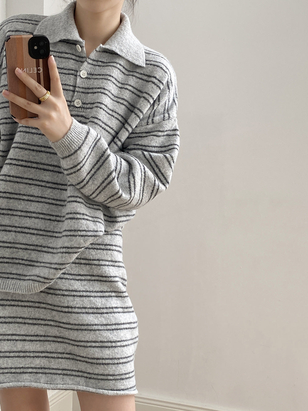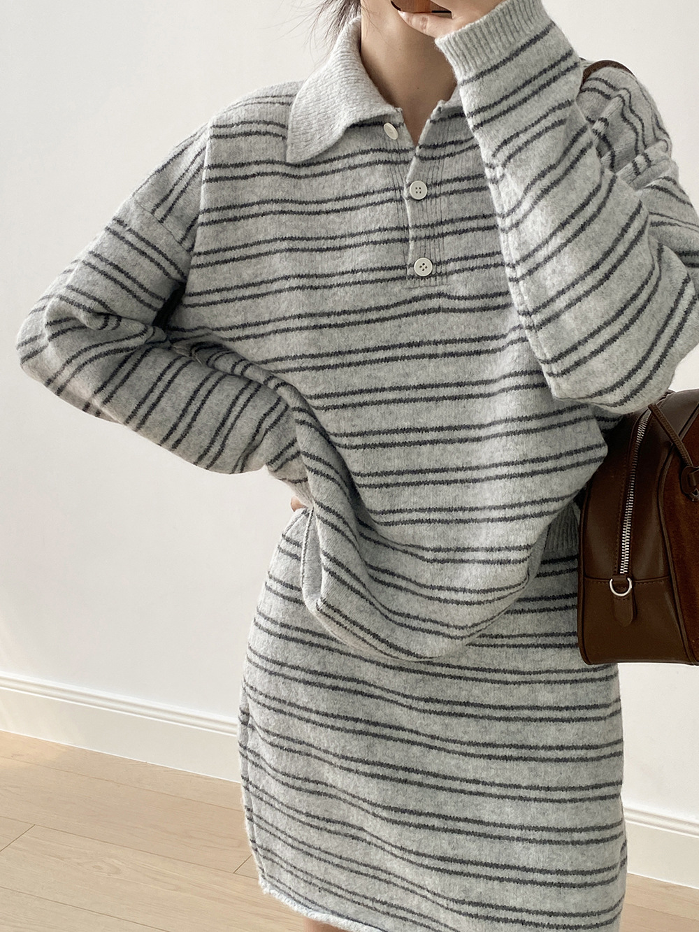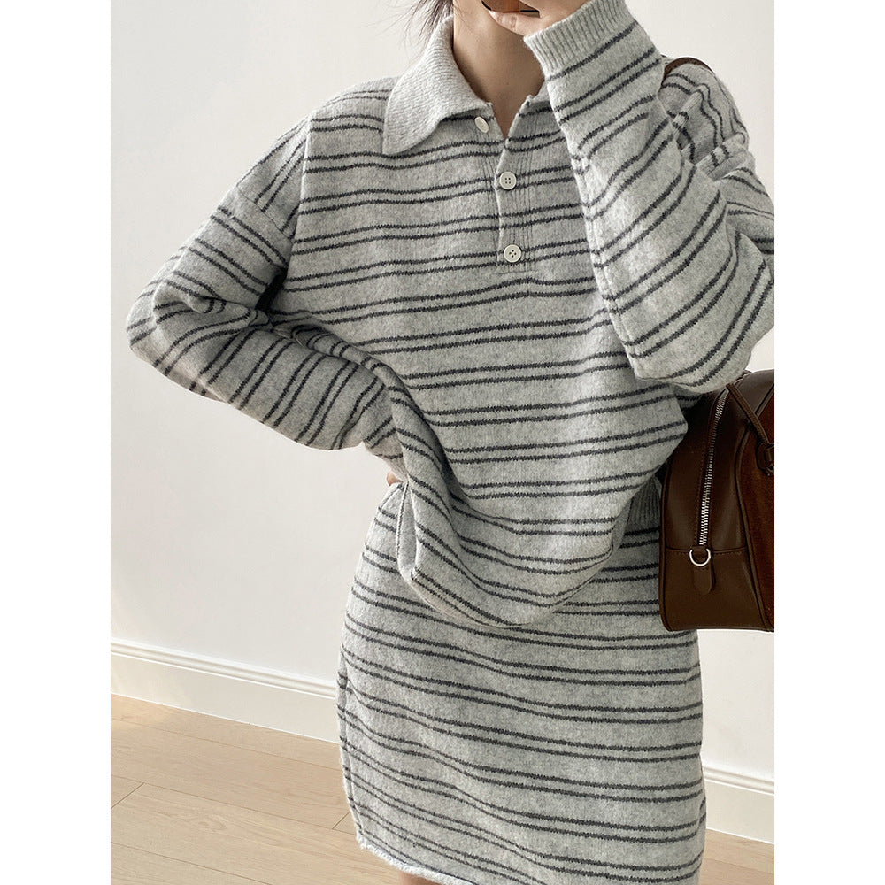 【YP6619】實拍復古條紋毛衣+針織短裙(含羊毛6%) 套裝251023