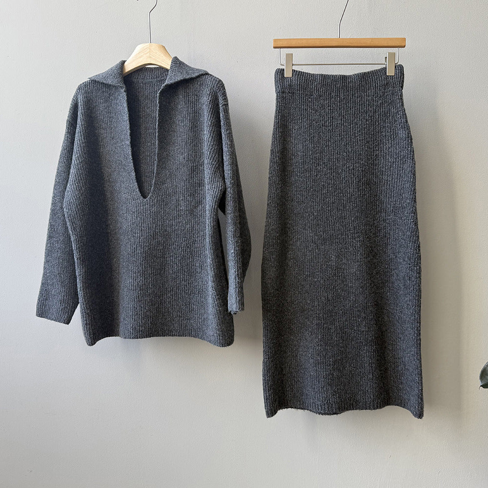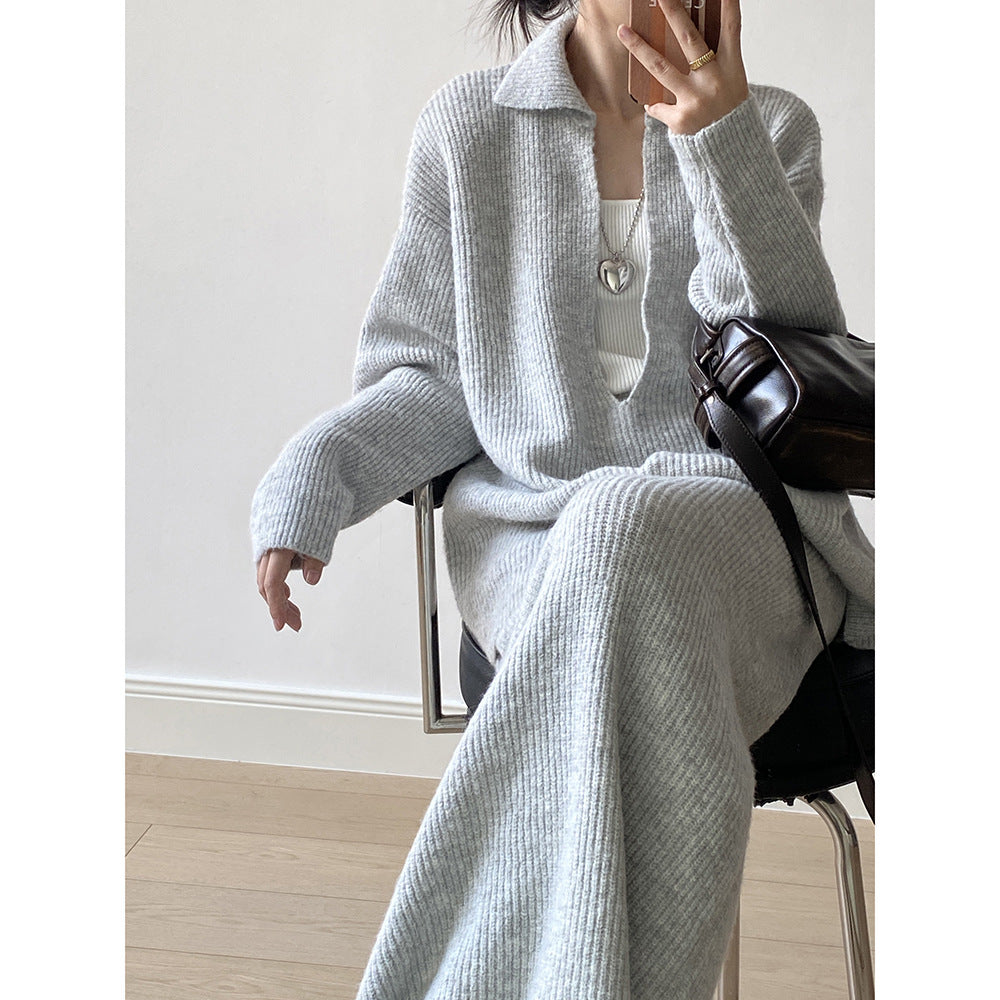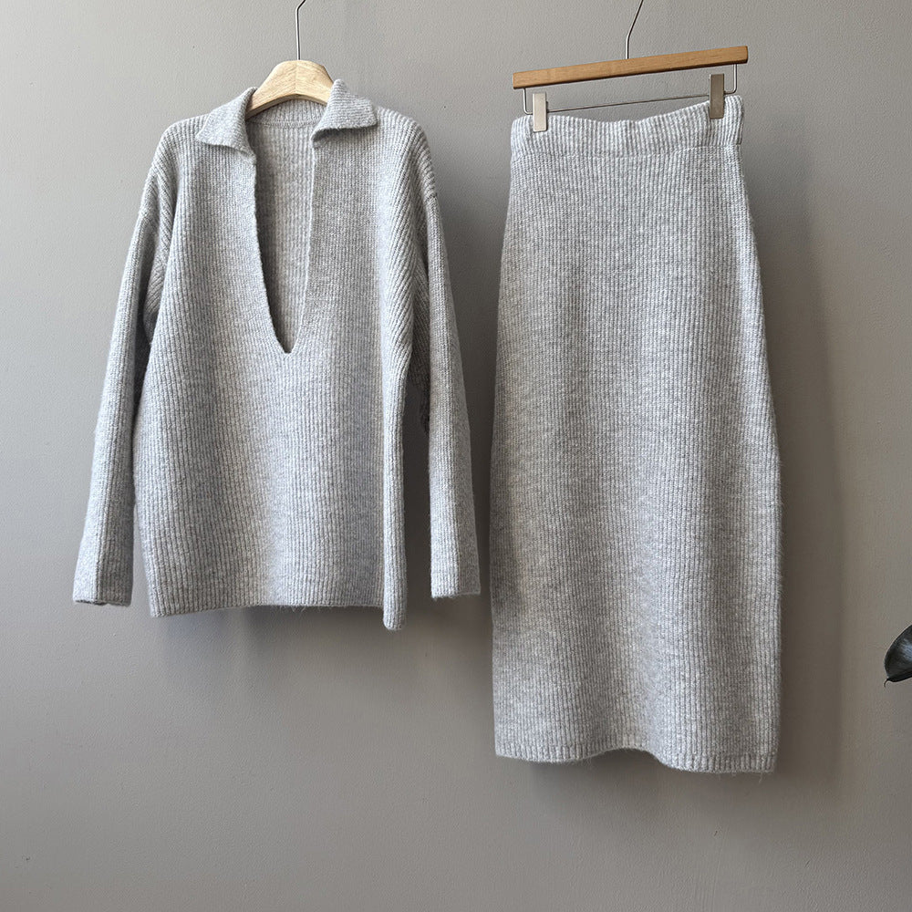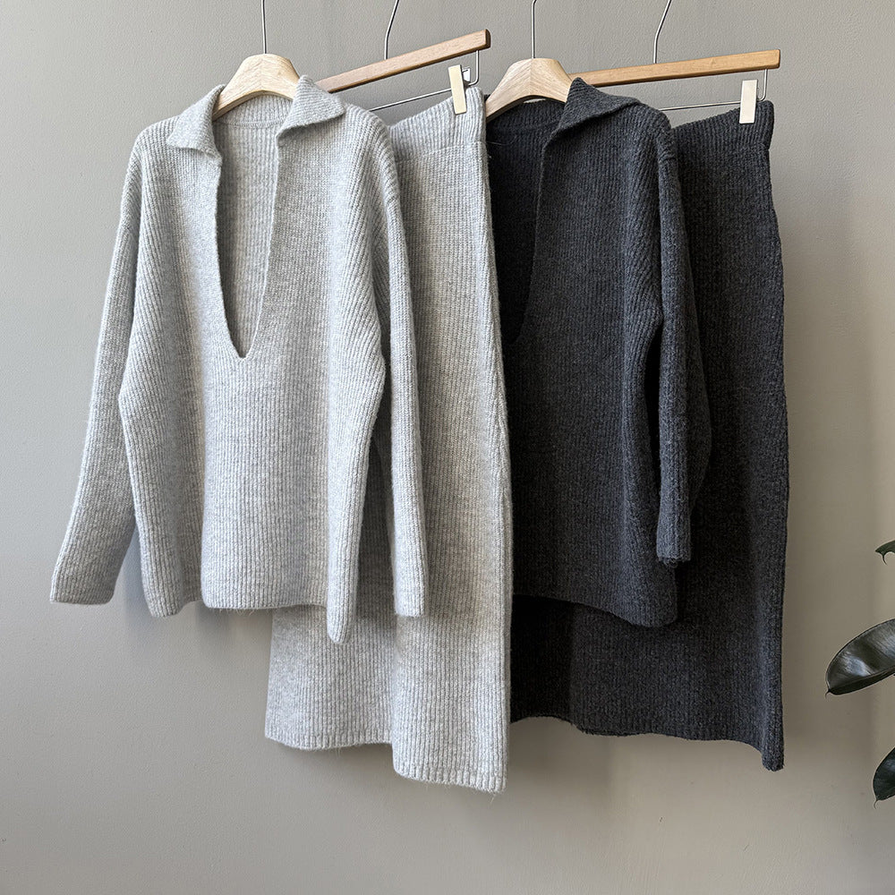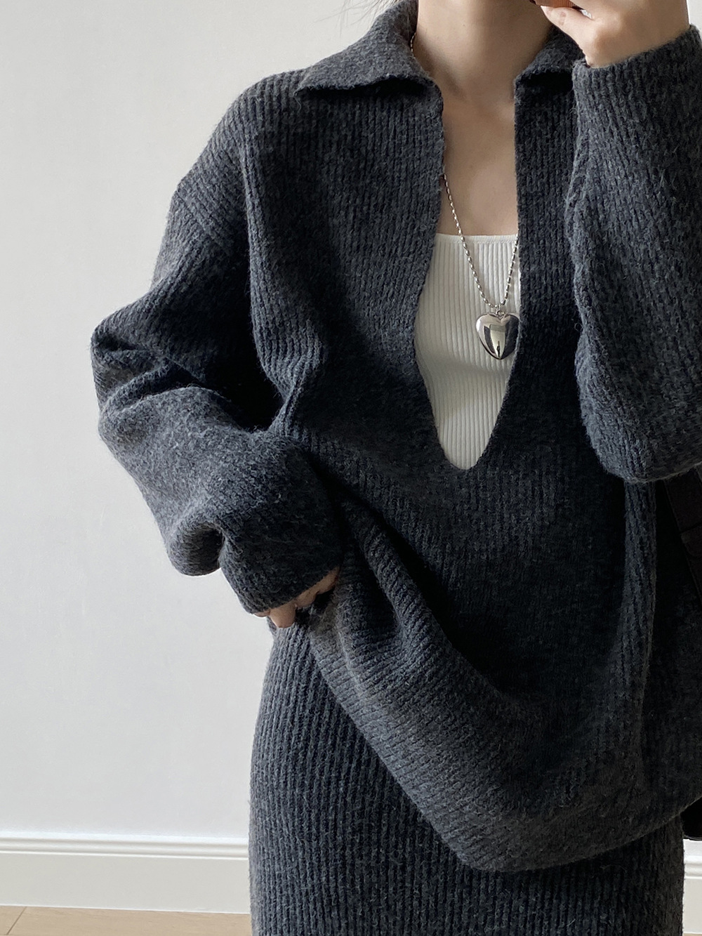 【YP680】 實拍深V慵懶毛衣+針織長裙(含羊6%) 套裝251023