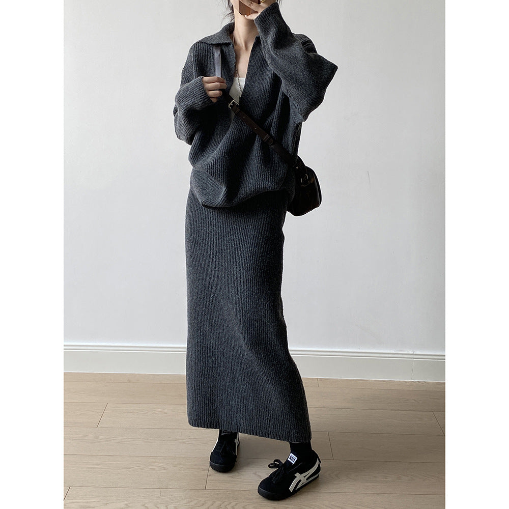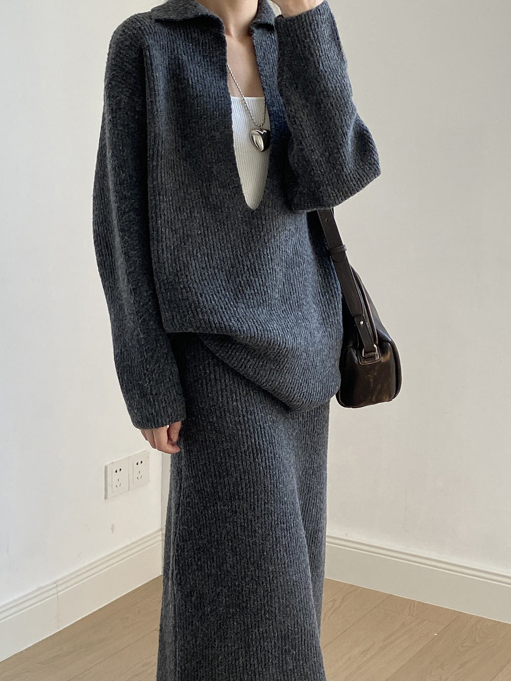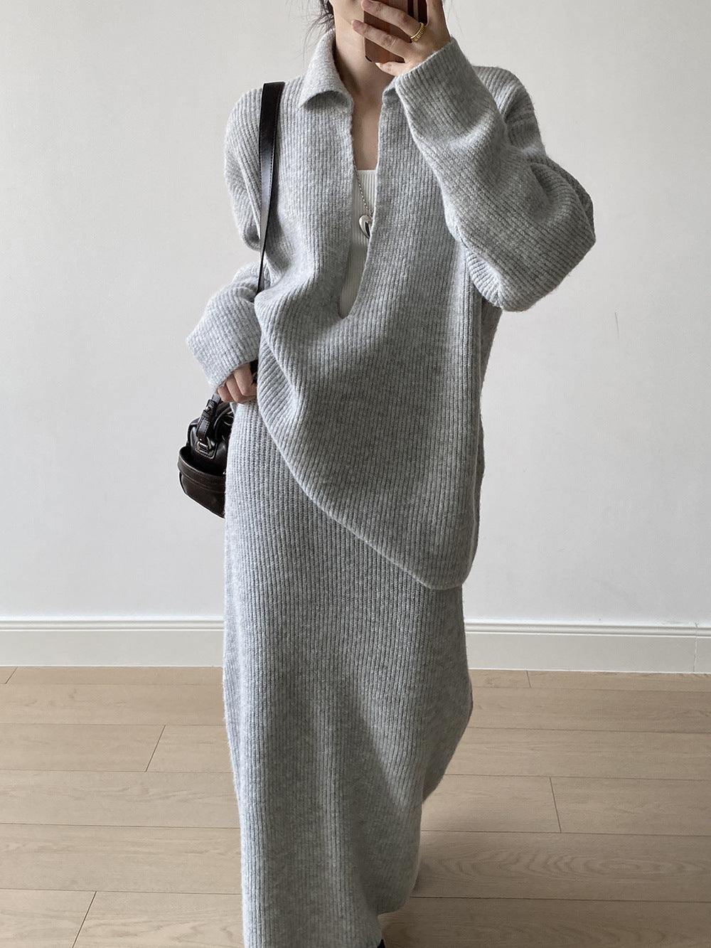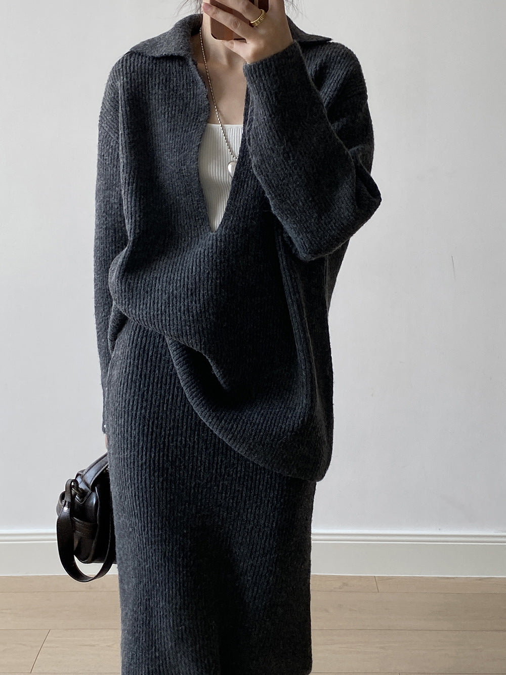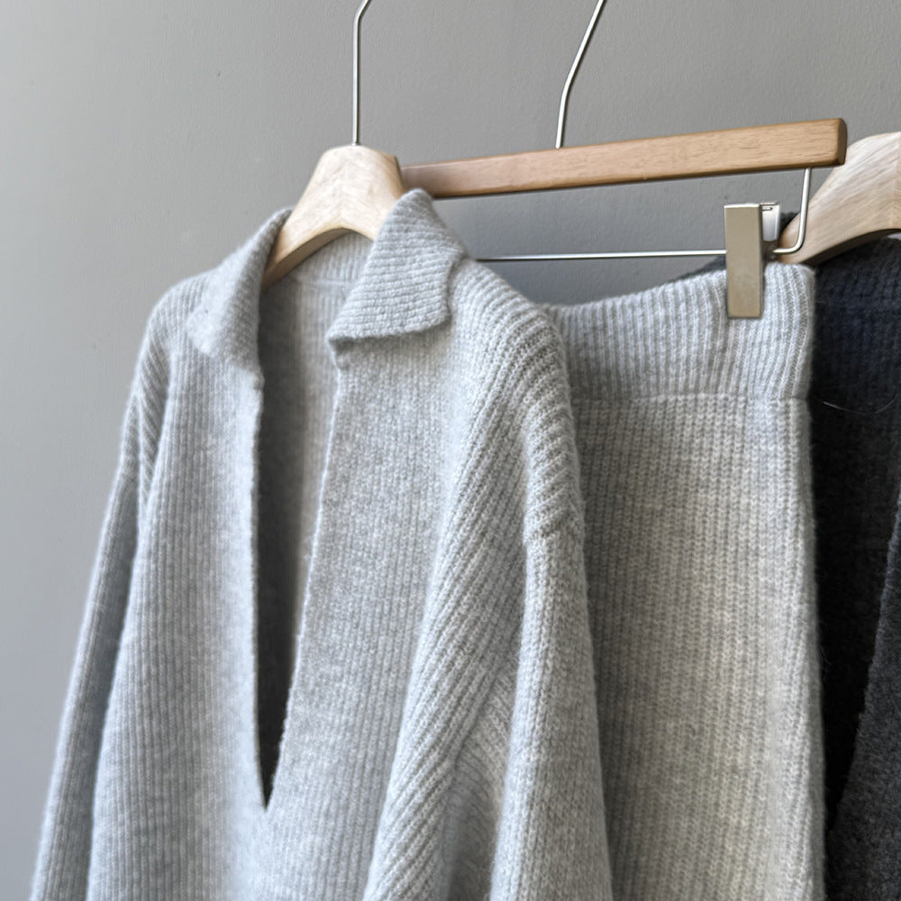 【YP680】 實拍深V慵懶毛衣+針織長裙(含羊6%) 套裝251023