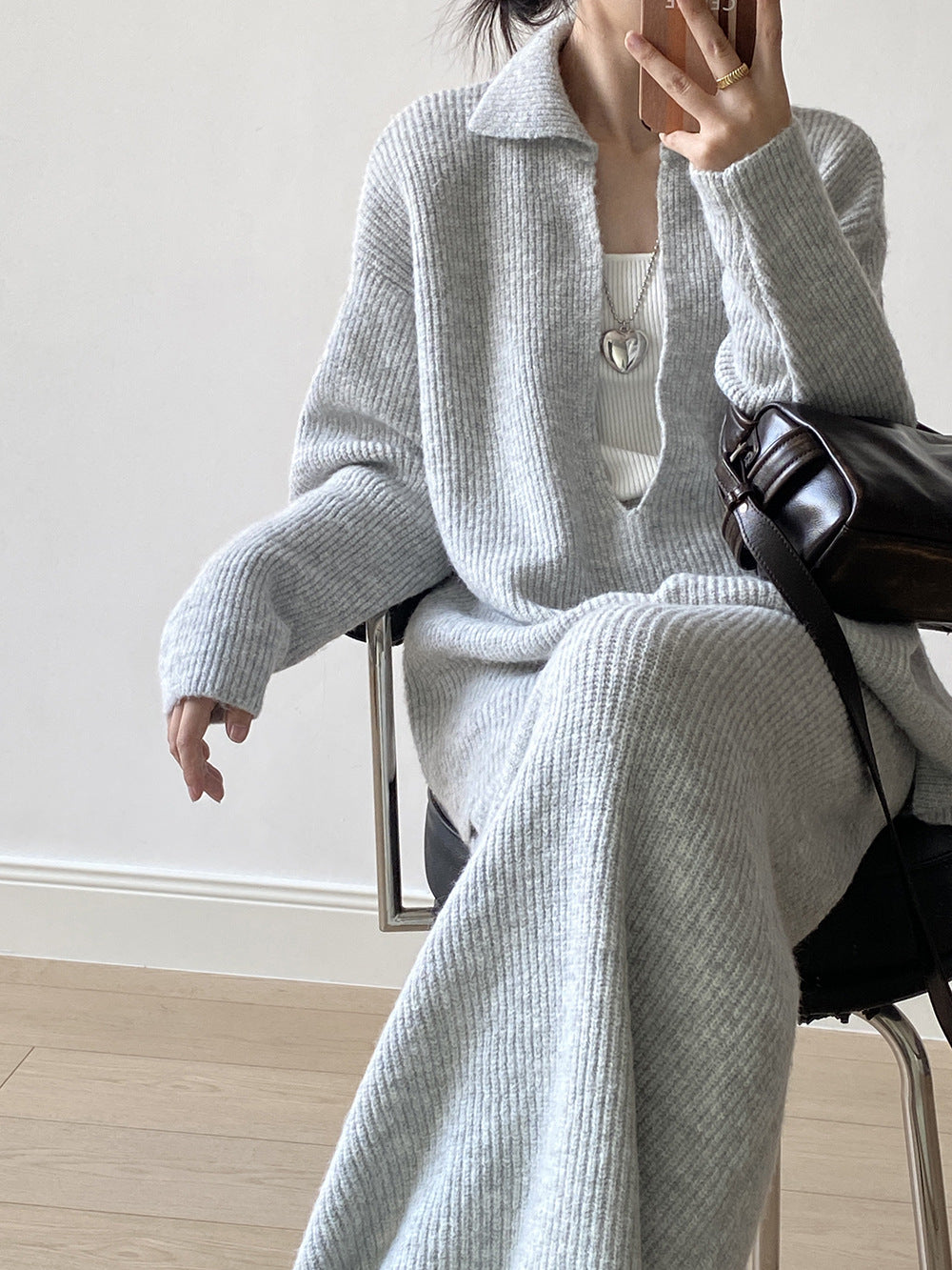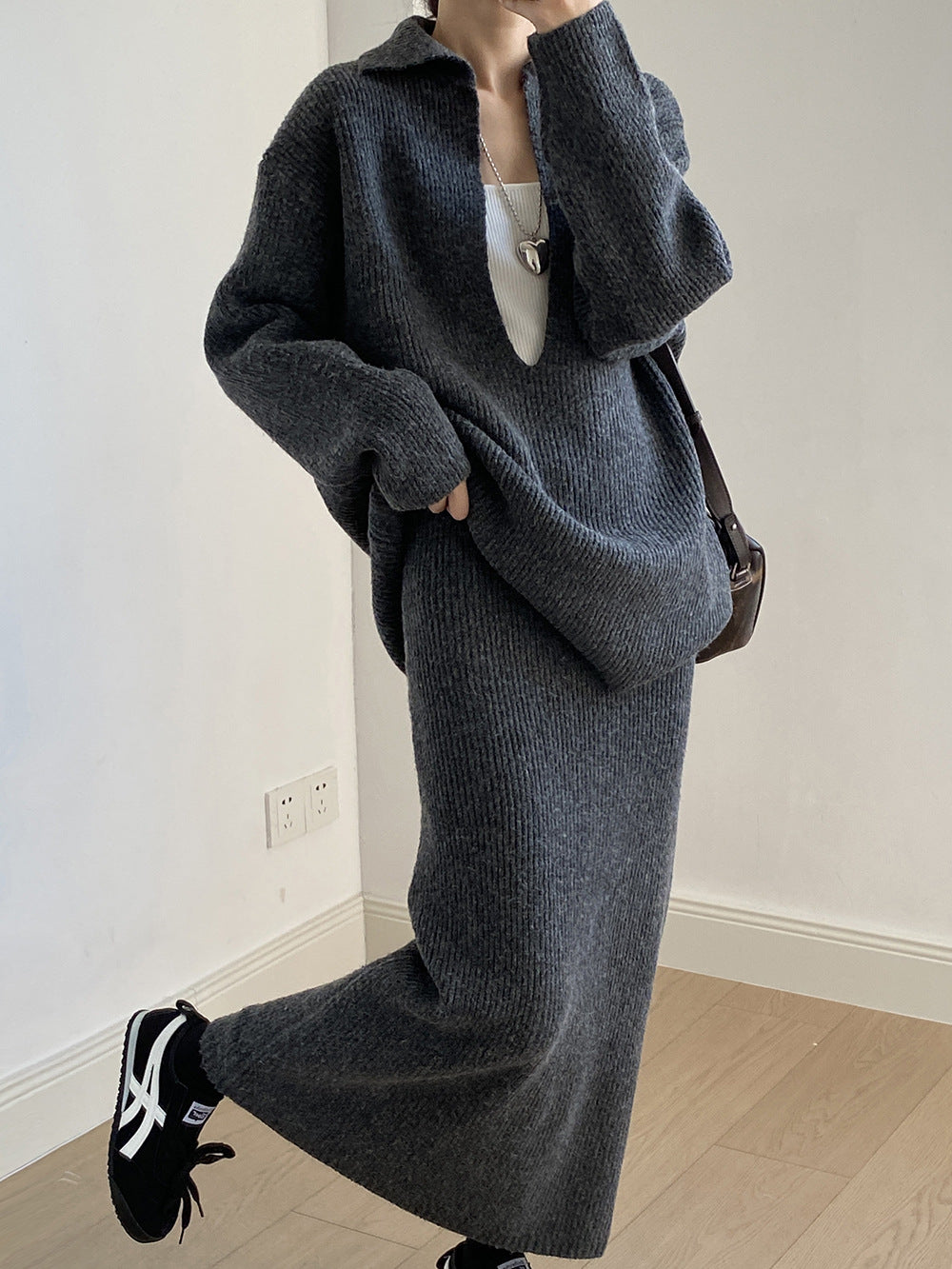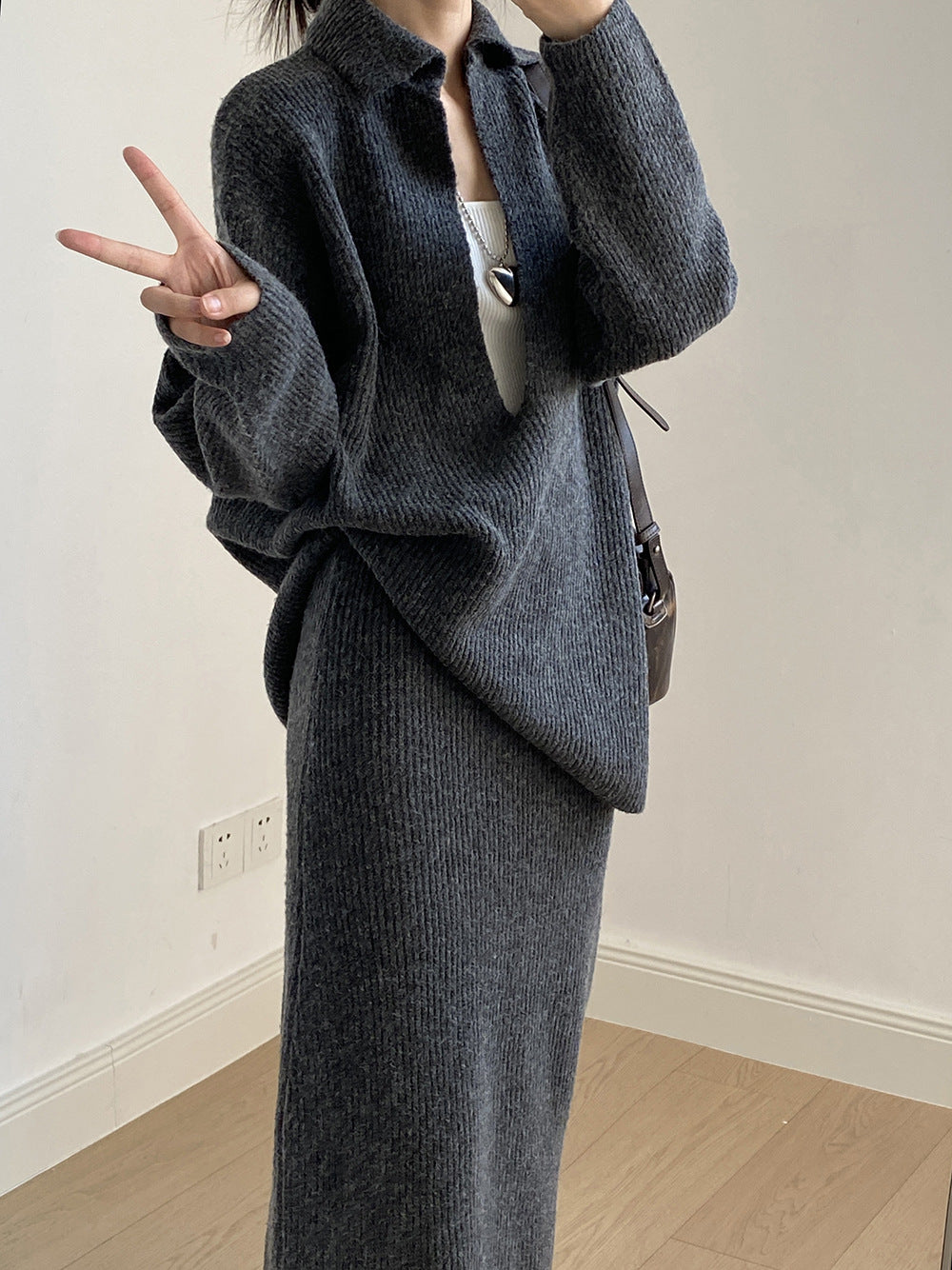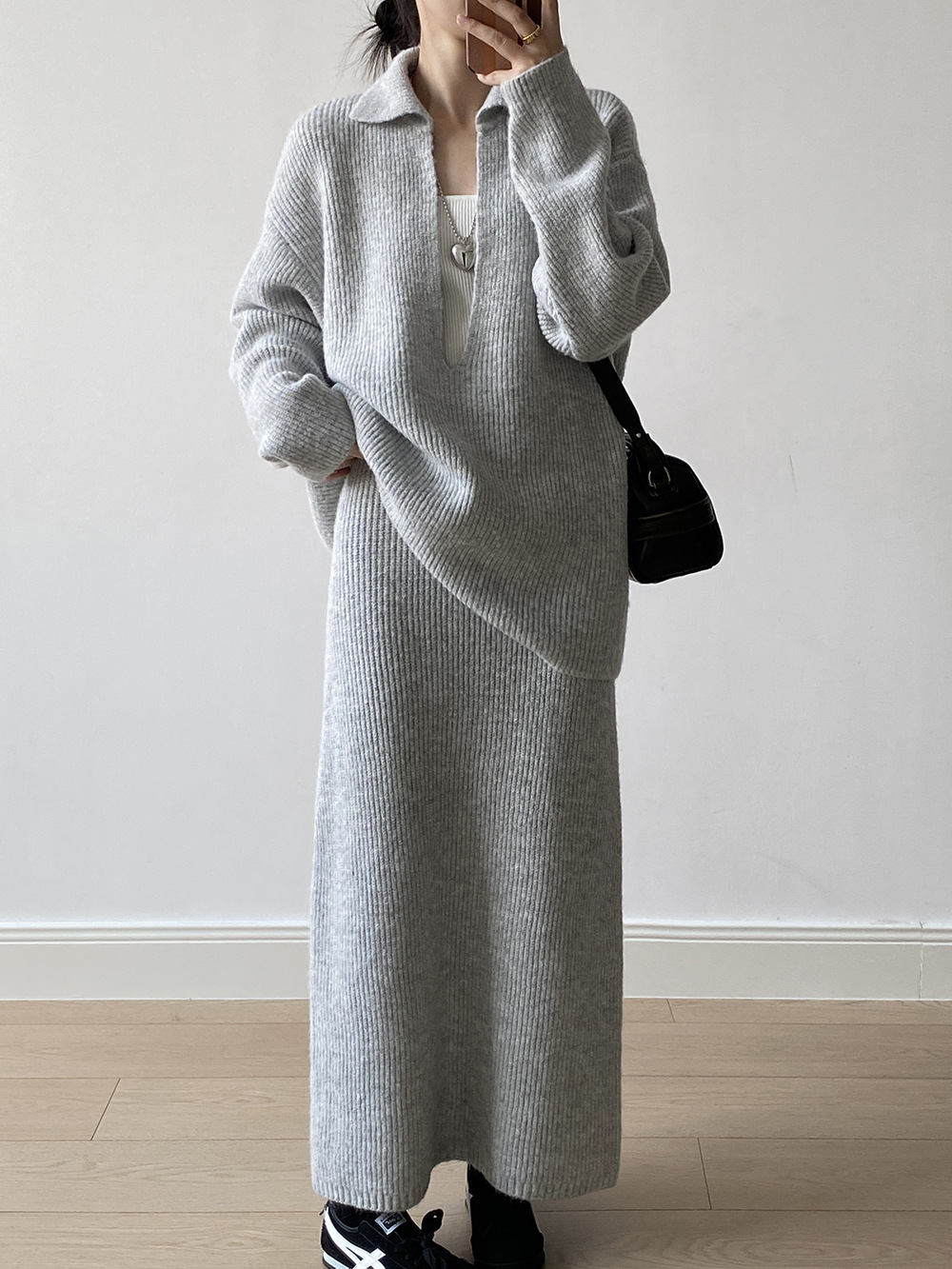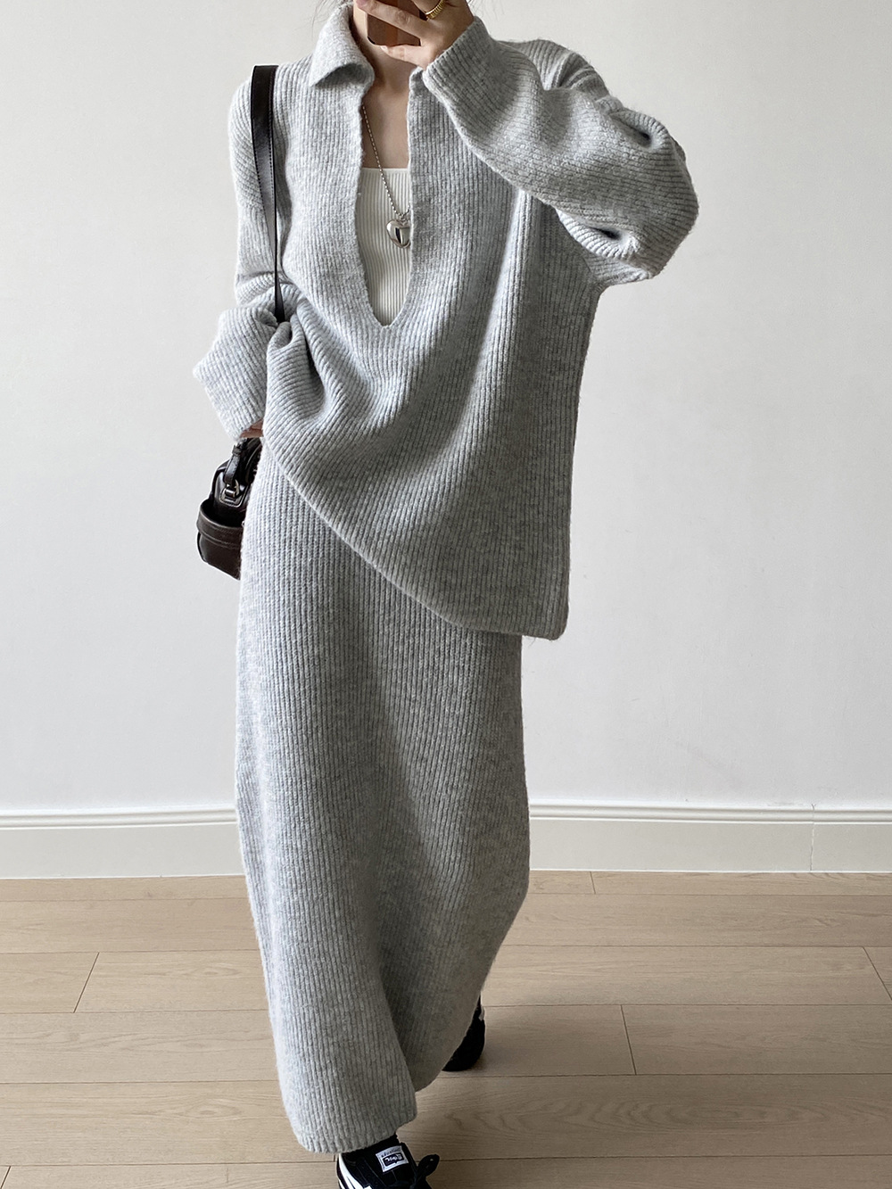 【YP680】 實拍深V慵懶毛衣+針織長裙(含羊6%) 套裝251023