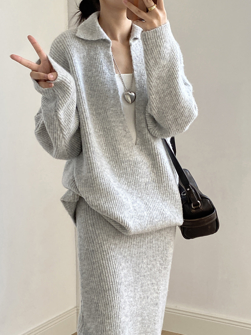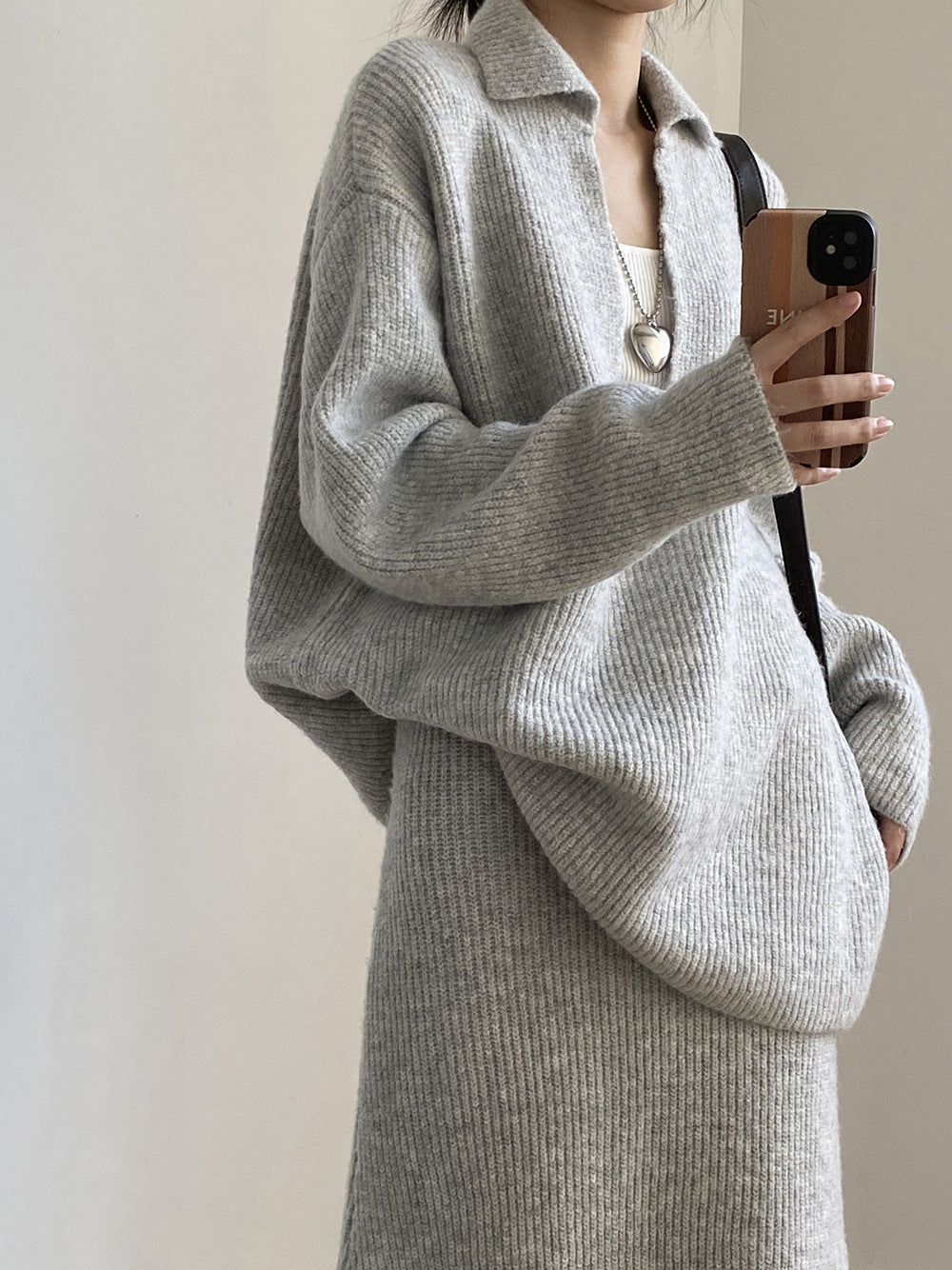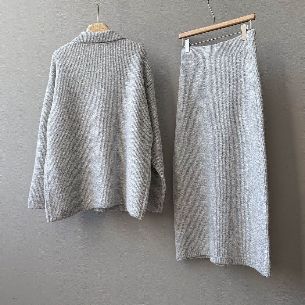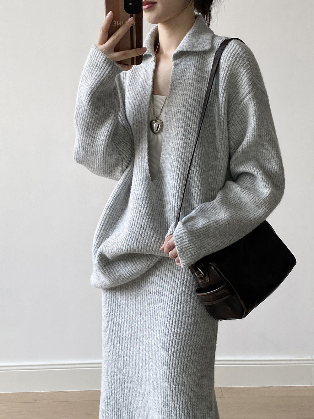 【YP680】 實拍深V慵懶毛衣+針織長裙(含羊6%) 套裝251023