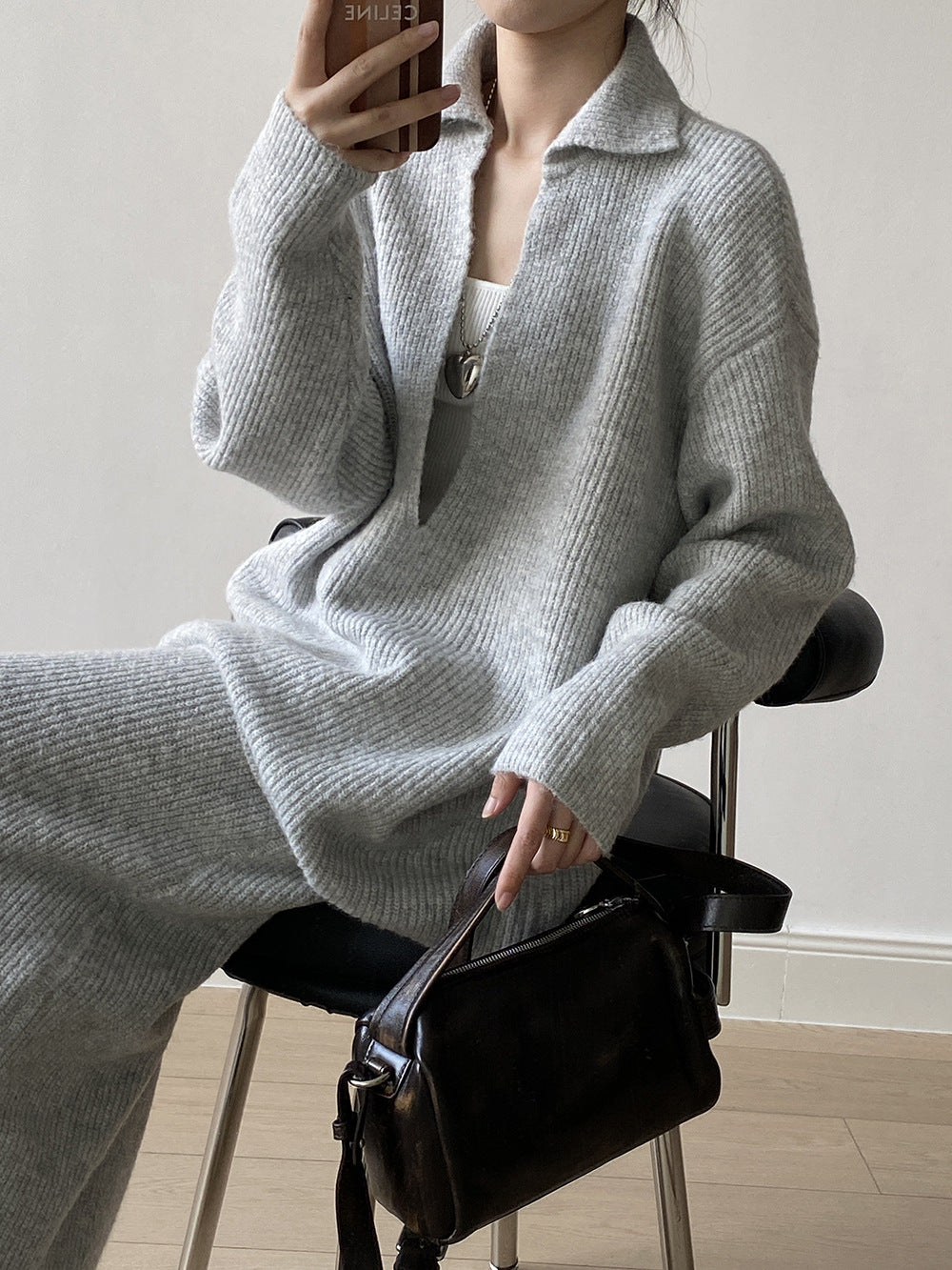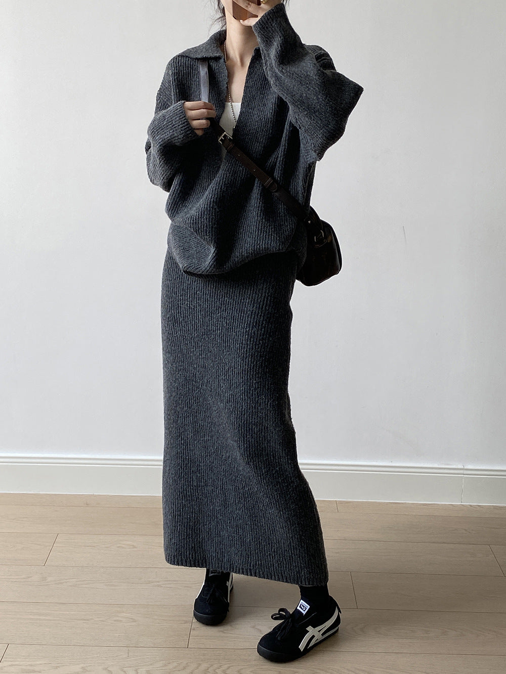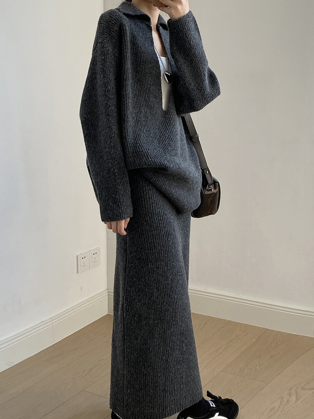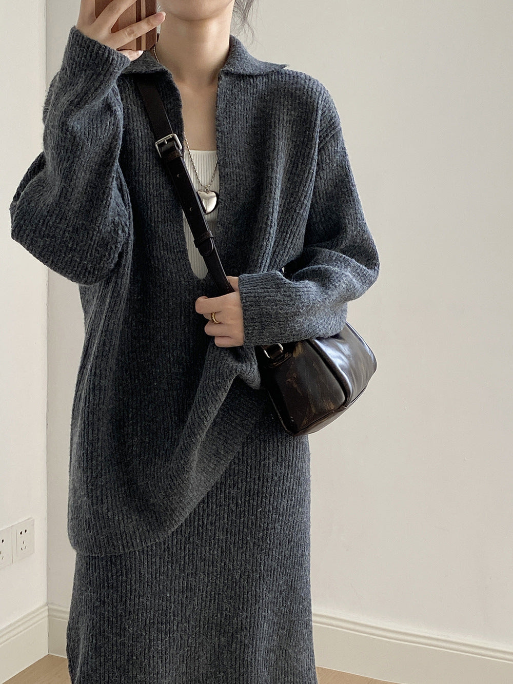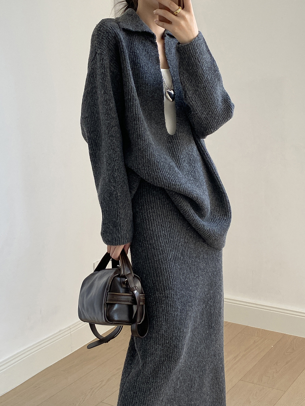 【YP680】 實拍深V慵懶毛衣+針織長裙(含羊6%) 套裝251023