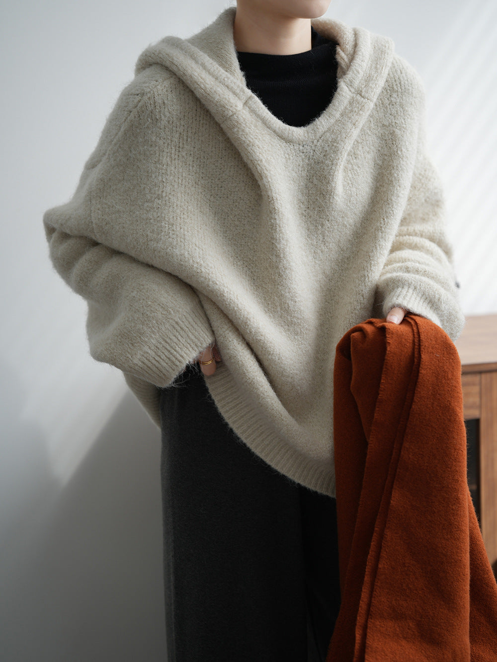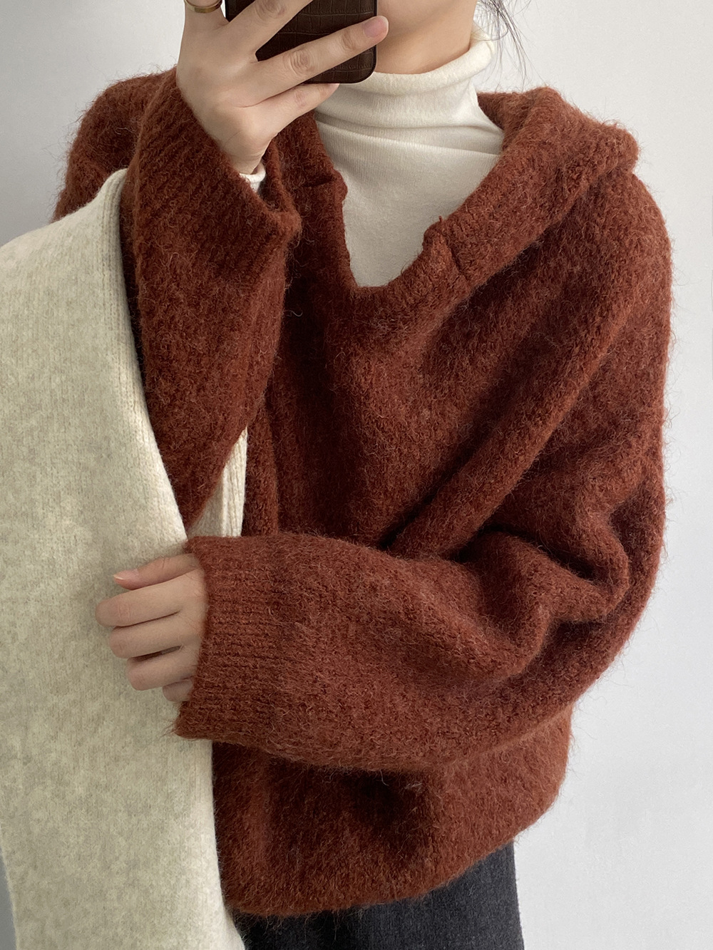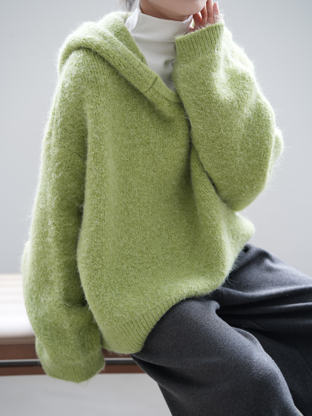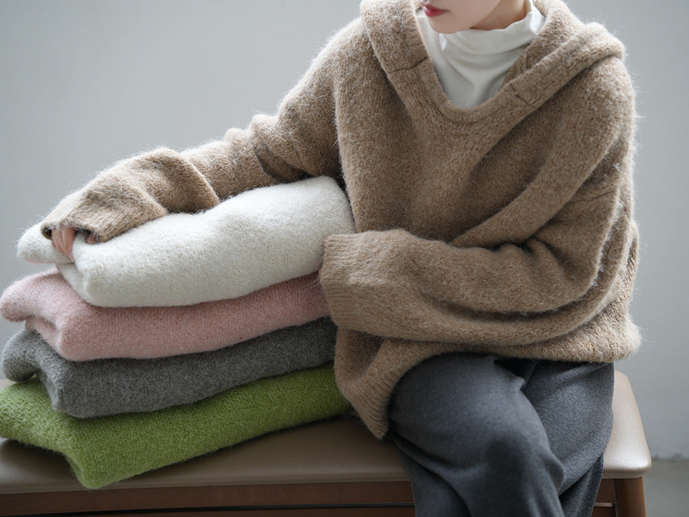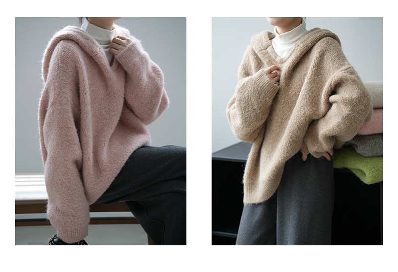 【YP967】實拍軟糯寬鬆加厚連帽針織毛衣(含羊毛6%)241211